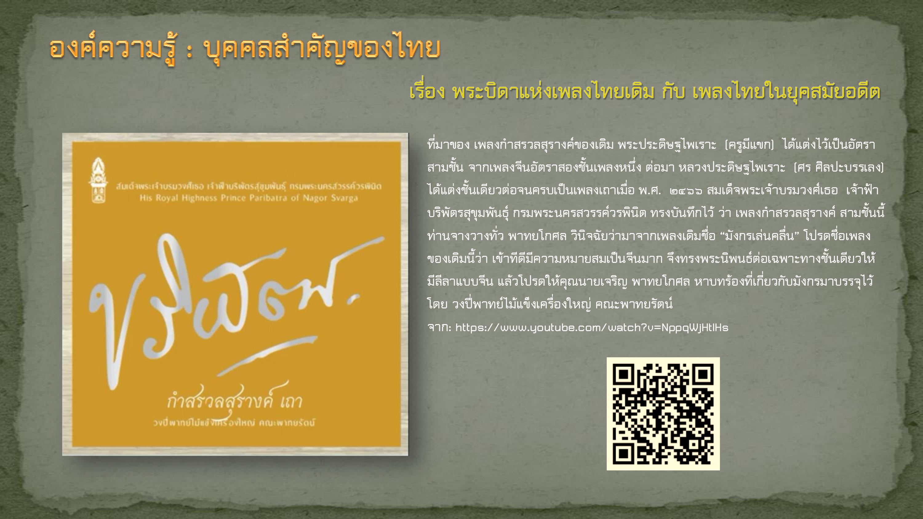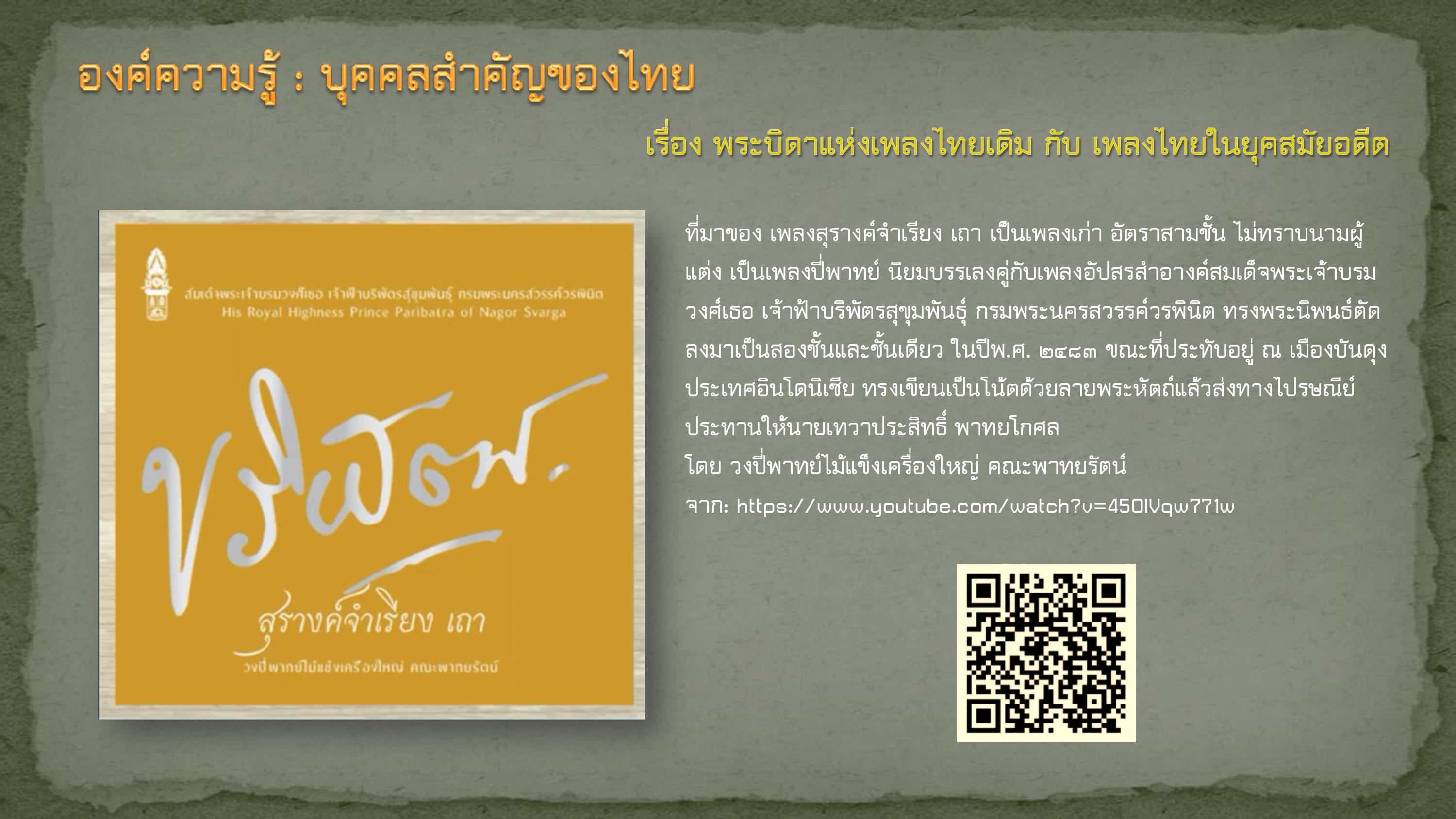 Music of Prince Paribatra. เพลงพระนิพนธ์ทูนกระหม่อมบริพัตร : กำสรวลสุรางค์ เถา. [ออนไลน์]. สืบค้นเมื่อ ๒๘ มิถุนายน ๒๕๖๗,