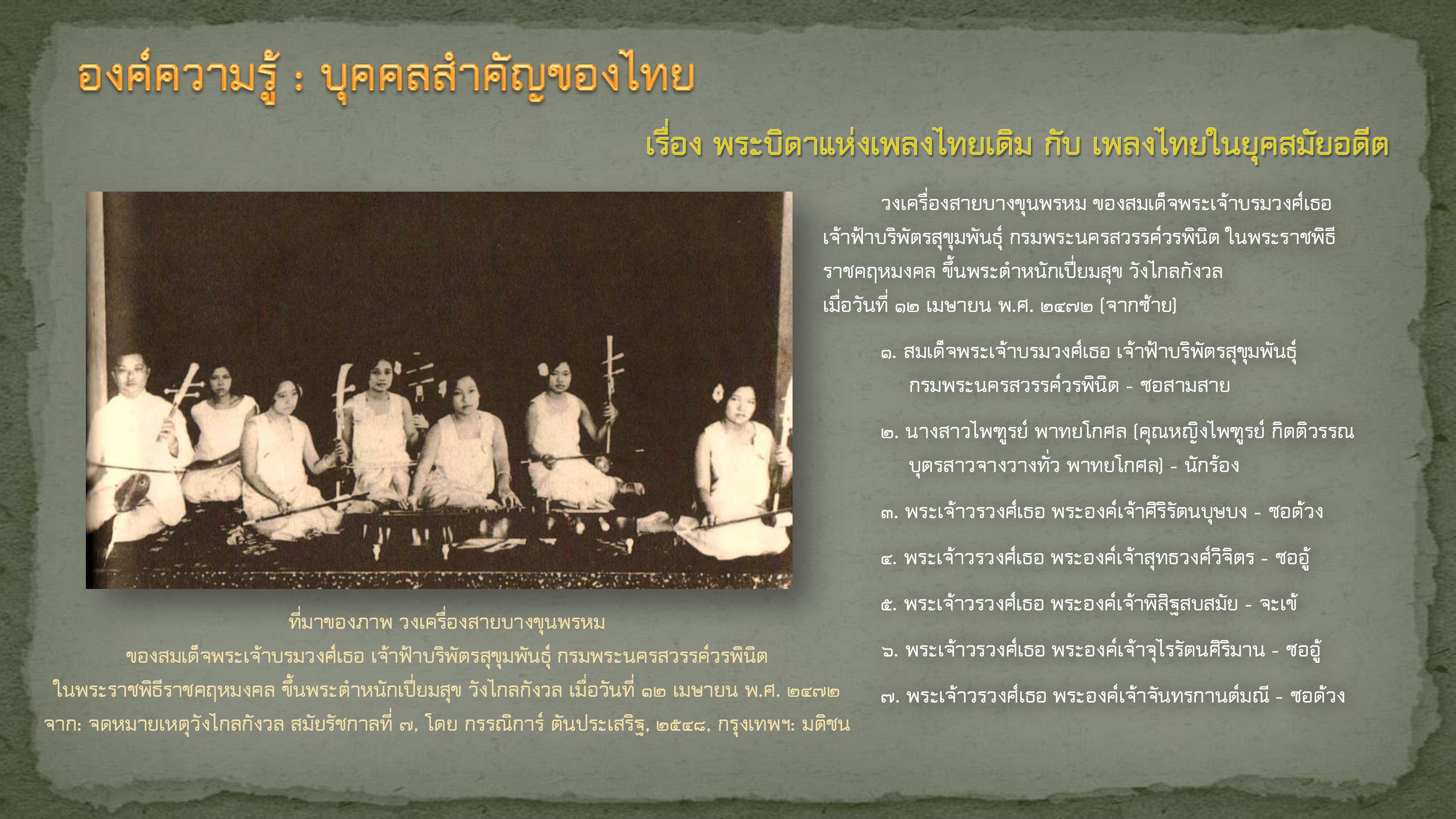 โบร่ำโบราณ. ภาพวงดนตรีวังบางขุนพรหม. [ออนไลน์]. สืบค้นเมื่อ ๒๘ มิถุนายน ๒๕๖๗,