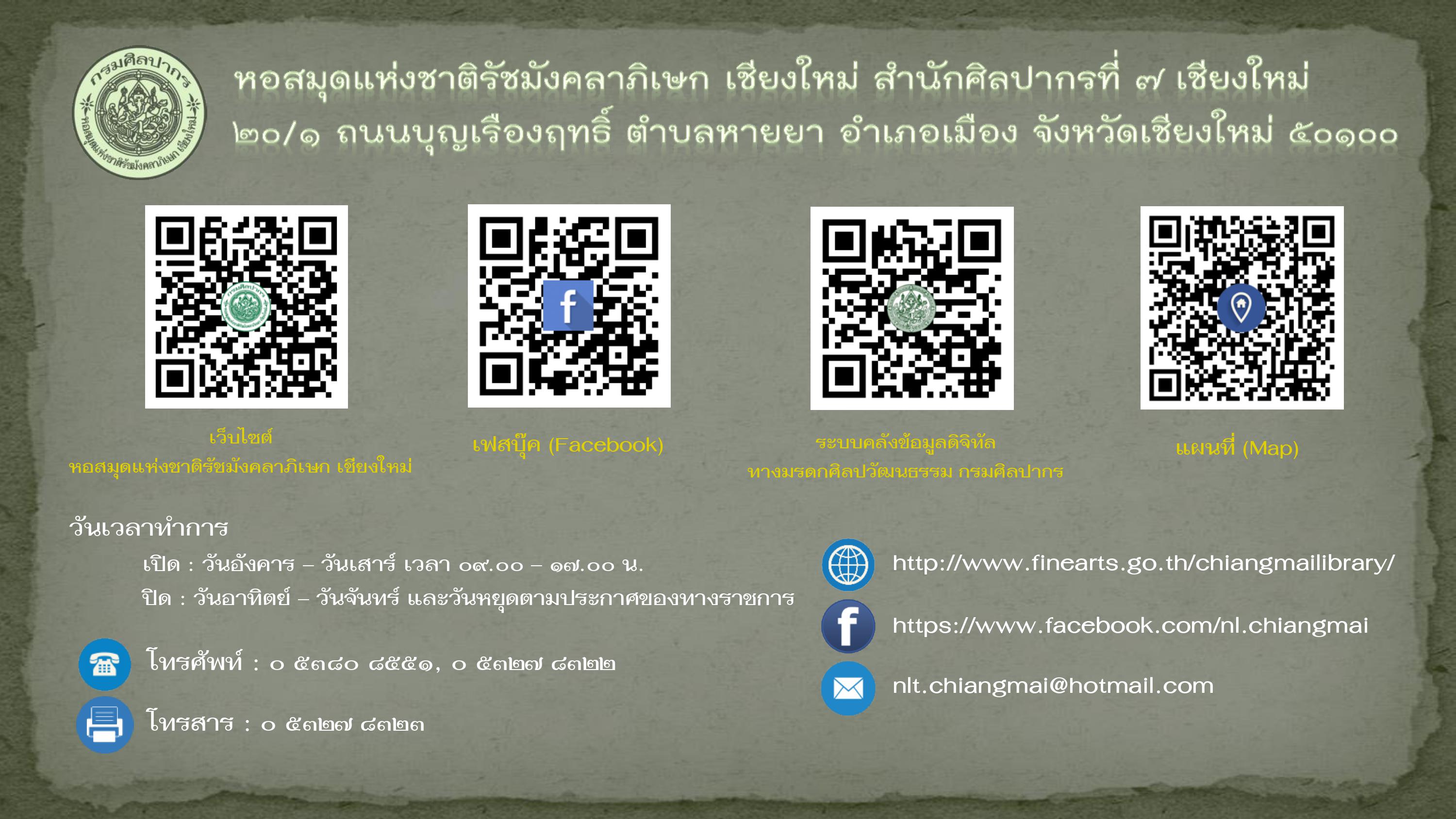หอสมุดแห่งชาติรัชมังคลาภิเษก เชียงใหม่ สำนักศิลปากรที่ ๗ เชียงใหม่ กรมศิลปากร กระทรวงวัฒนธรรม