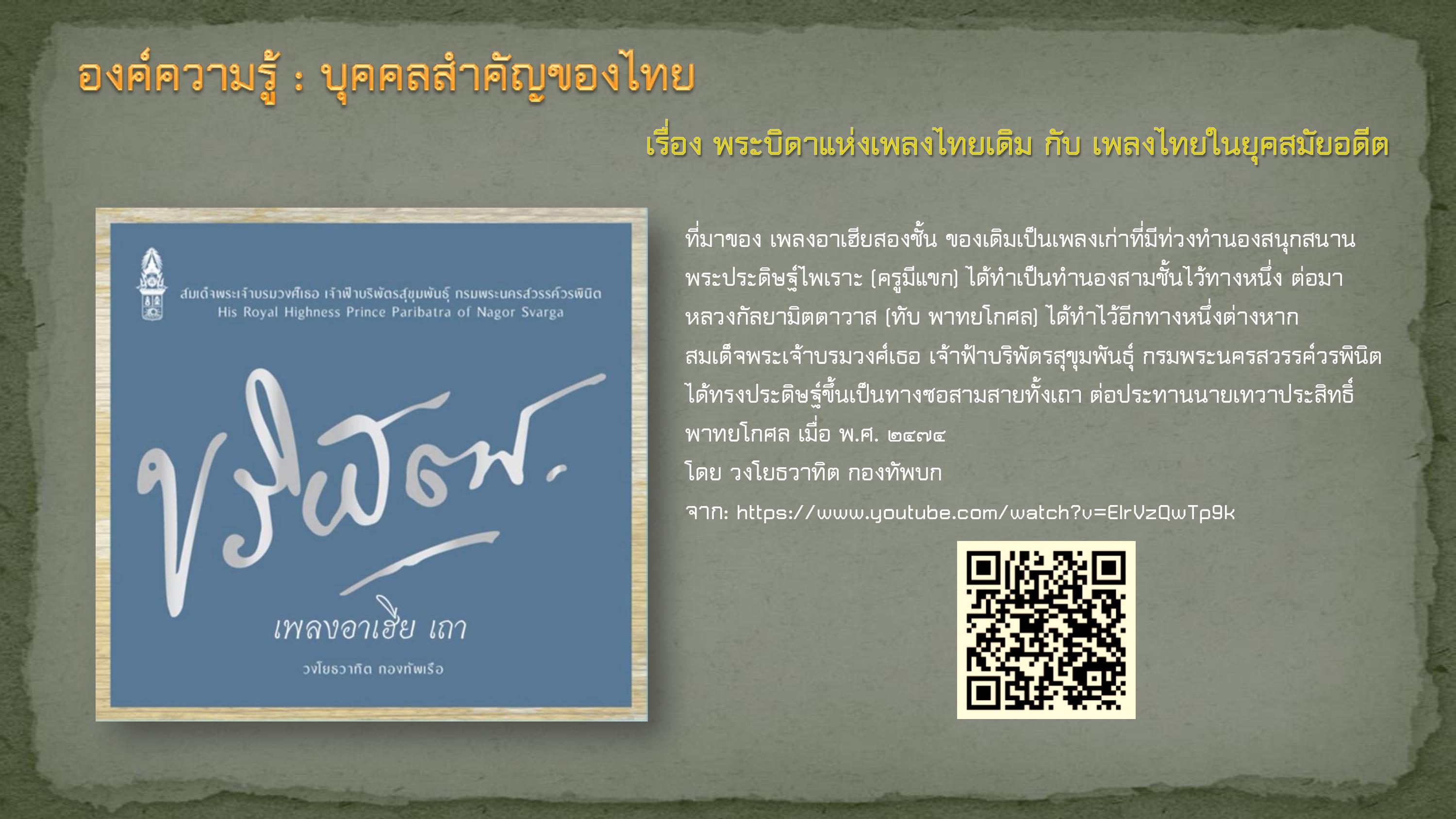 Music of Prince Paribatra. เพลงพระนิพนธ์ทูลกระหม่อมบริพัตร : เพลงอาเฮีย เถา. [ออนไลน์]. สืบค้นเมื่อ ๒๘ มิถุนายน ๒๕๖๗,