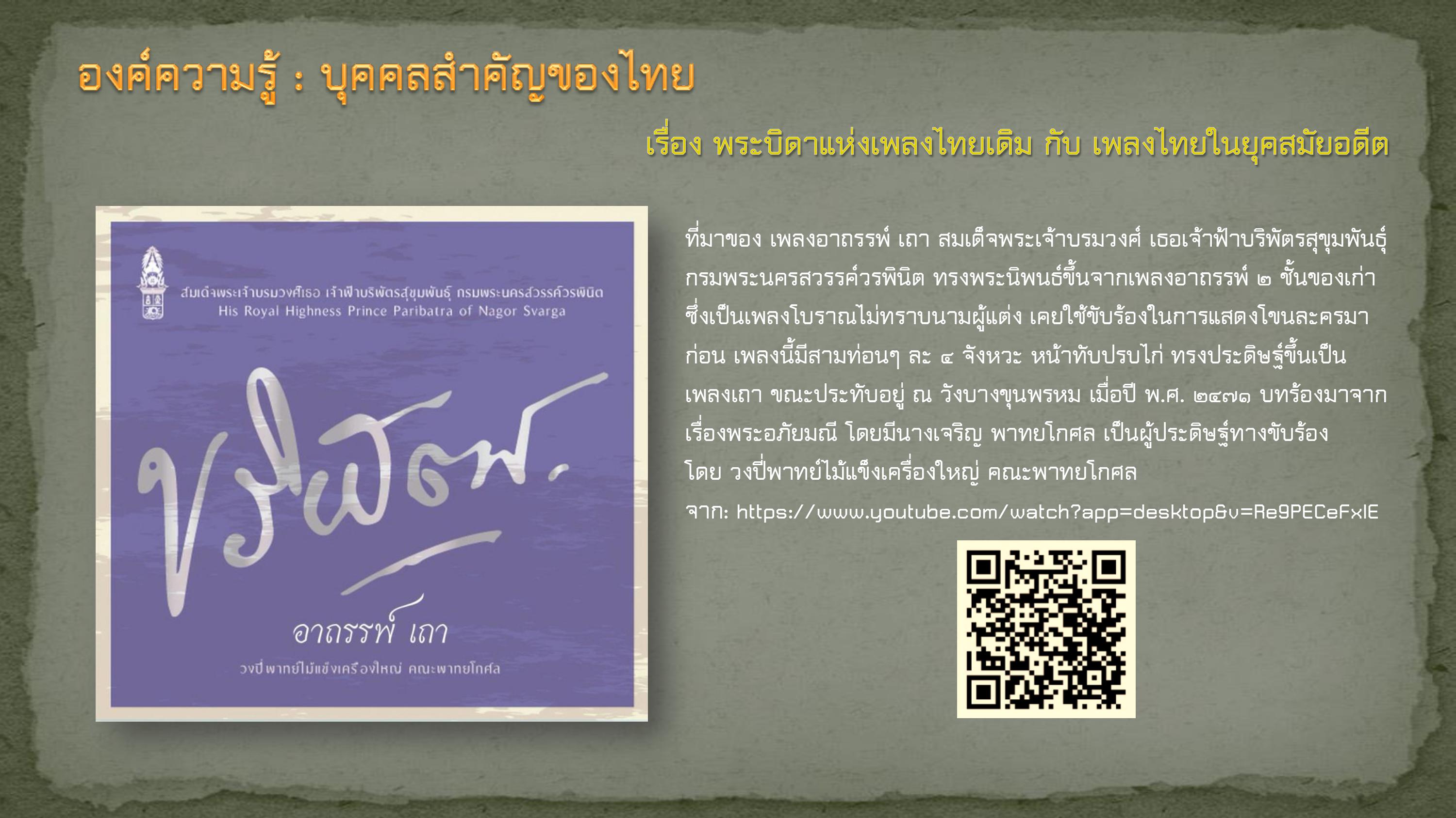 Music of Prince Paribatra. เพลงพระนิพนธ์ทูนกระหม่อมบริพัตร : อาถรรพ์ เถา. [ออนไลน์]. สืบค้นเมื่อ ๒๘ มิถุนายน ๒๕๖๗,