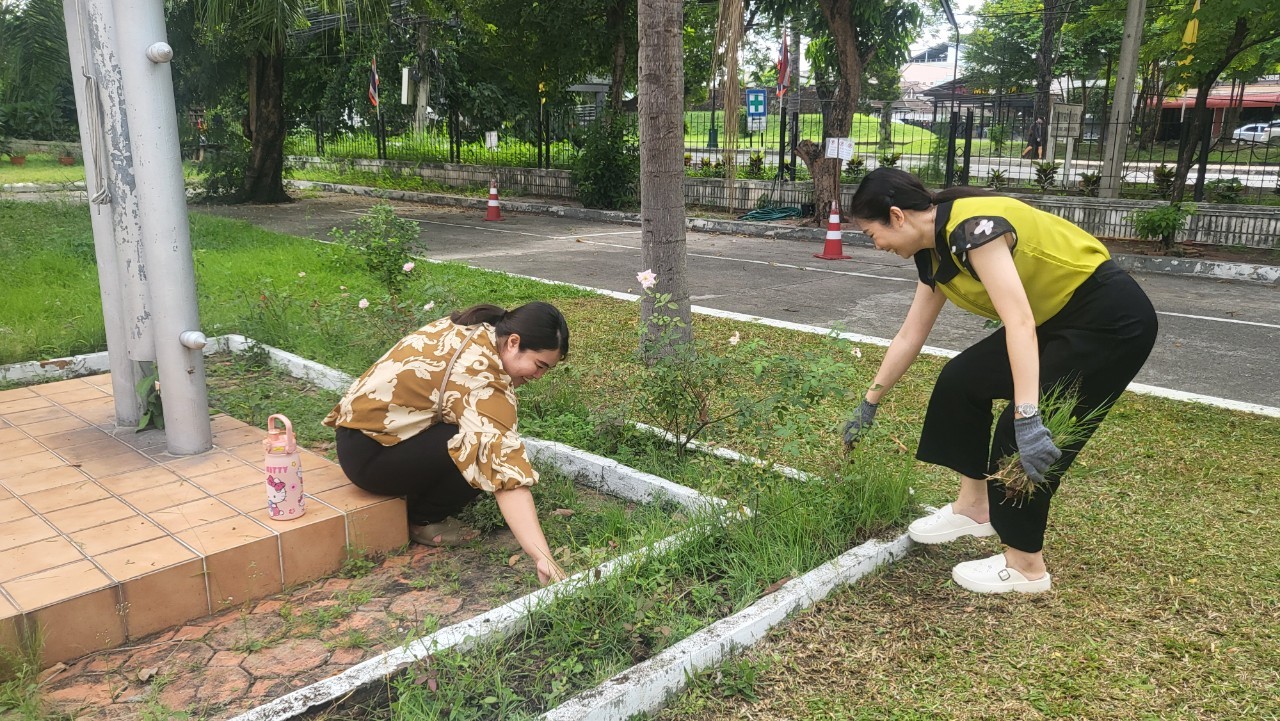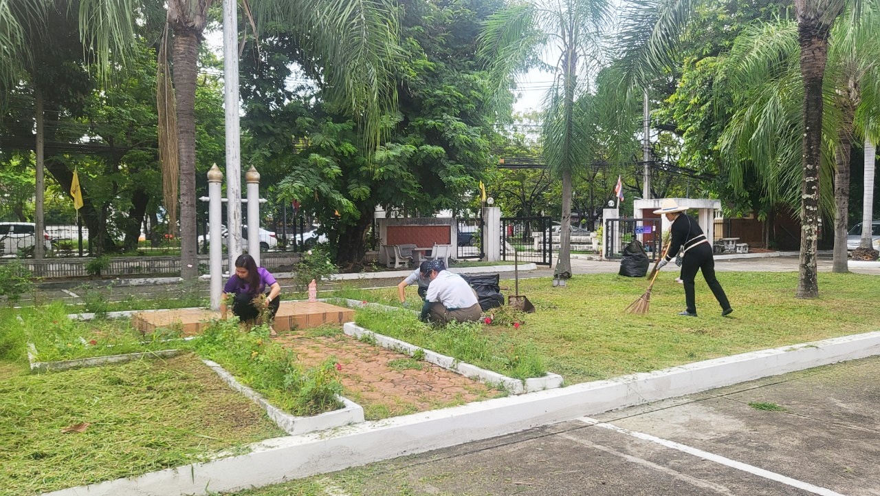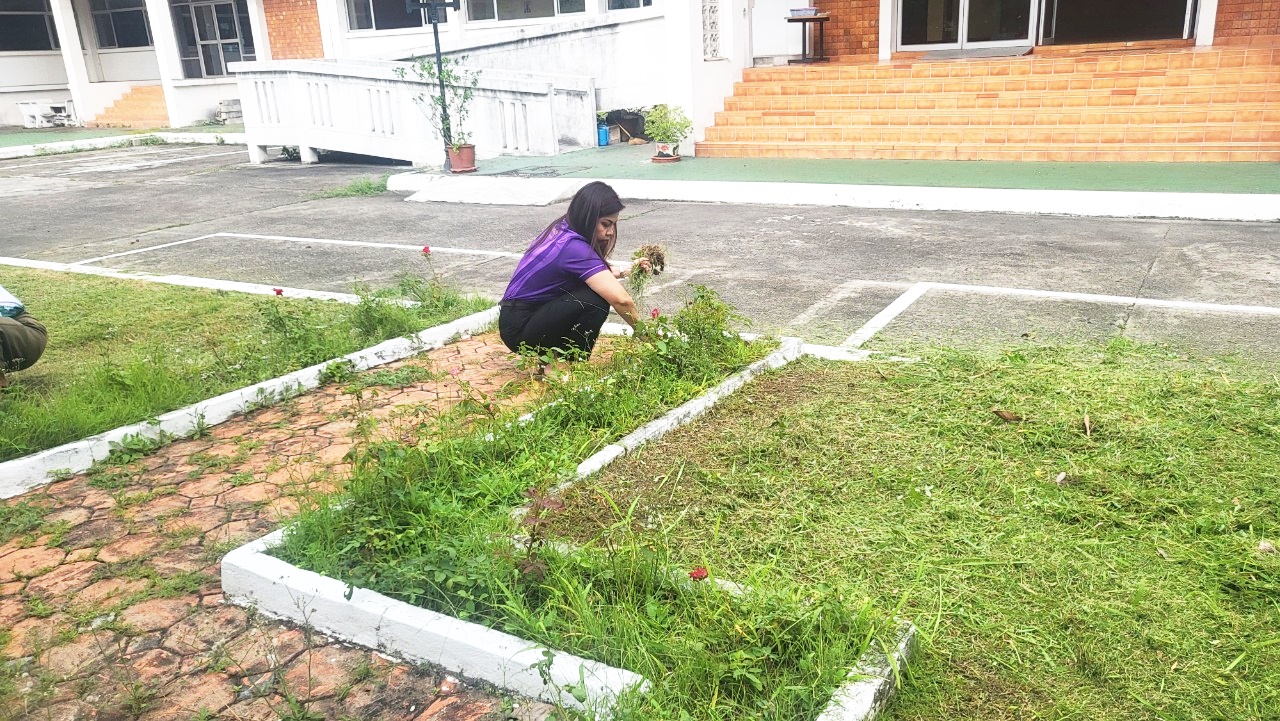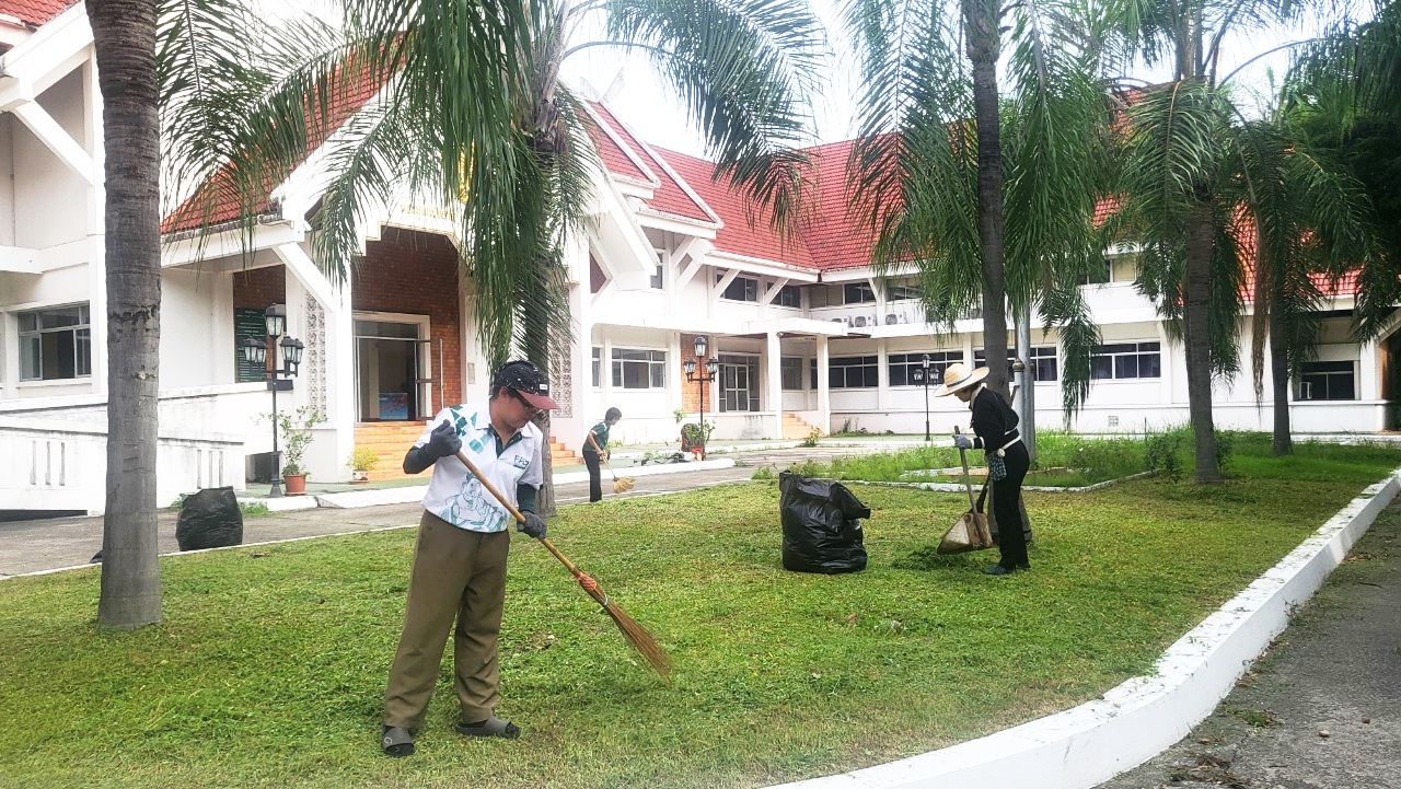 ผู้อำนวยการหอสมุดแห่งชาติรัชมังคลาภิเษก เชียงใหม่ พร้อมด้วยบุคลากรร่วมกันทำความสะอาด กำจัดวัชพืช บริเวณสวนด้านหน้าหอสมุดแห่งชาติรัชมังคลาภิเษก เชียงใหม่