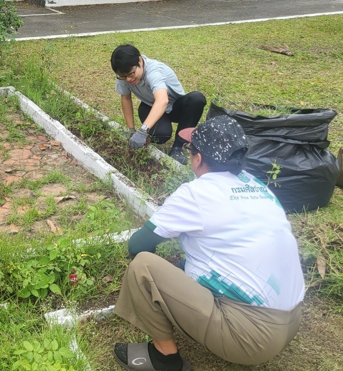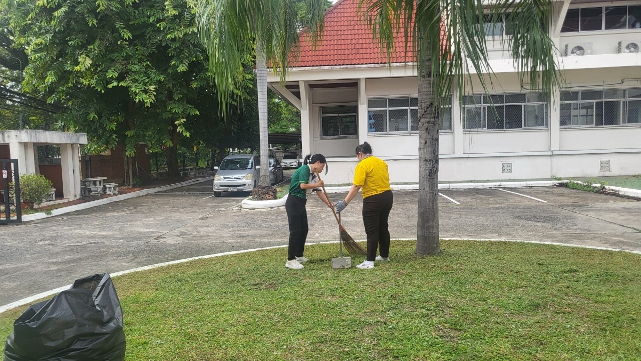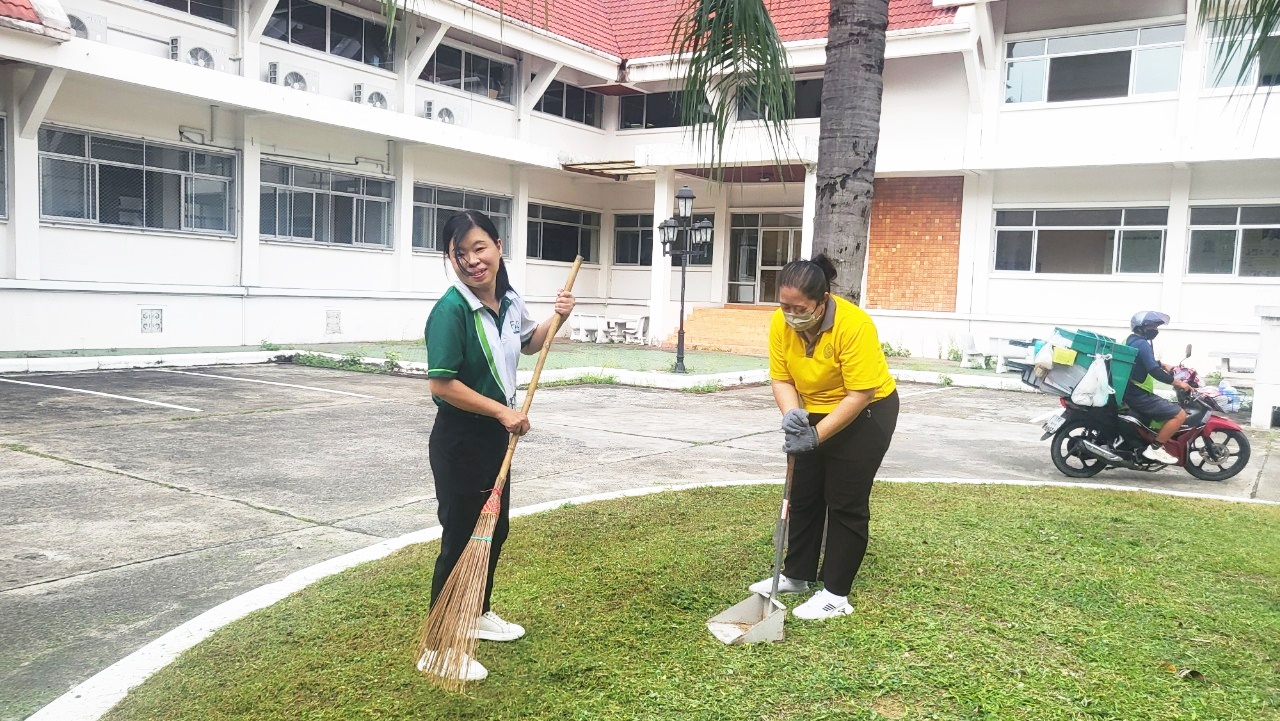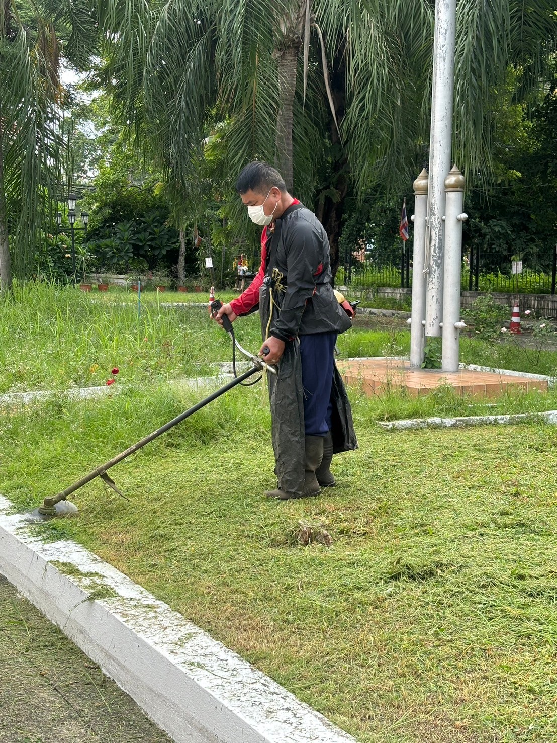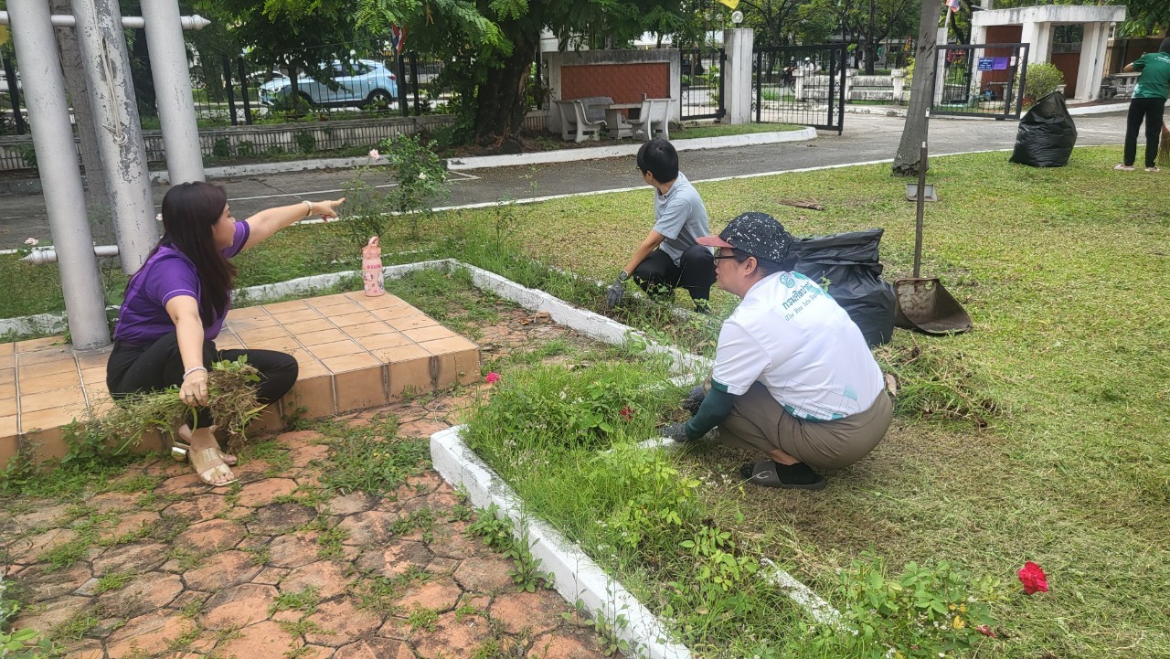ผู้อำนวยการหอสมุดแห่งชาติรัชมังคลาภิเษก เชียงใหม่ พร้อมด้วยบุคลากรร่วมกันทำความสะอาด กำจัดวัชพืช บริเวณสวนด้านหน้าหอสมุดแห่งชาติรัชมังคลาภิเษก เชียงใหม่