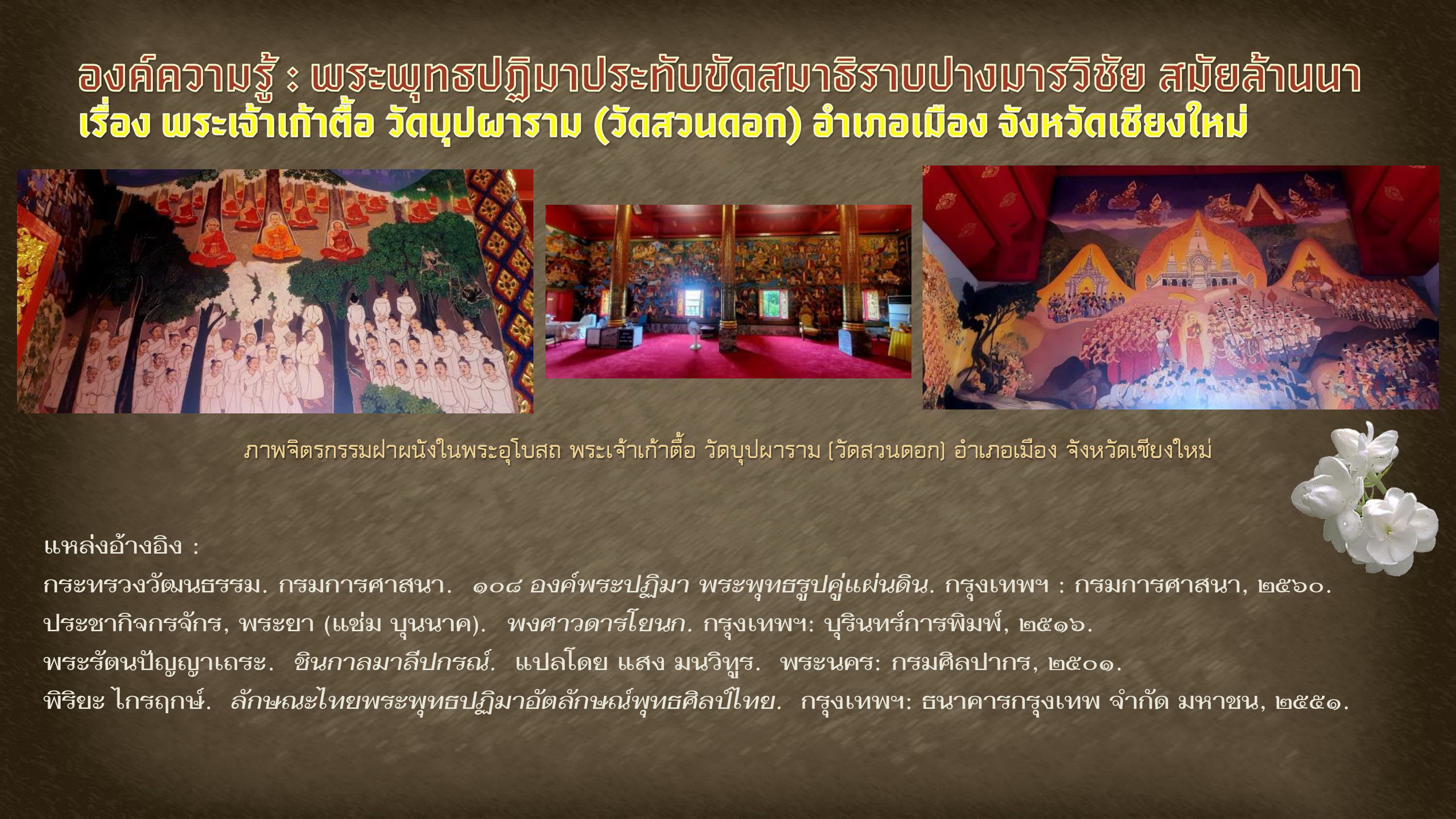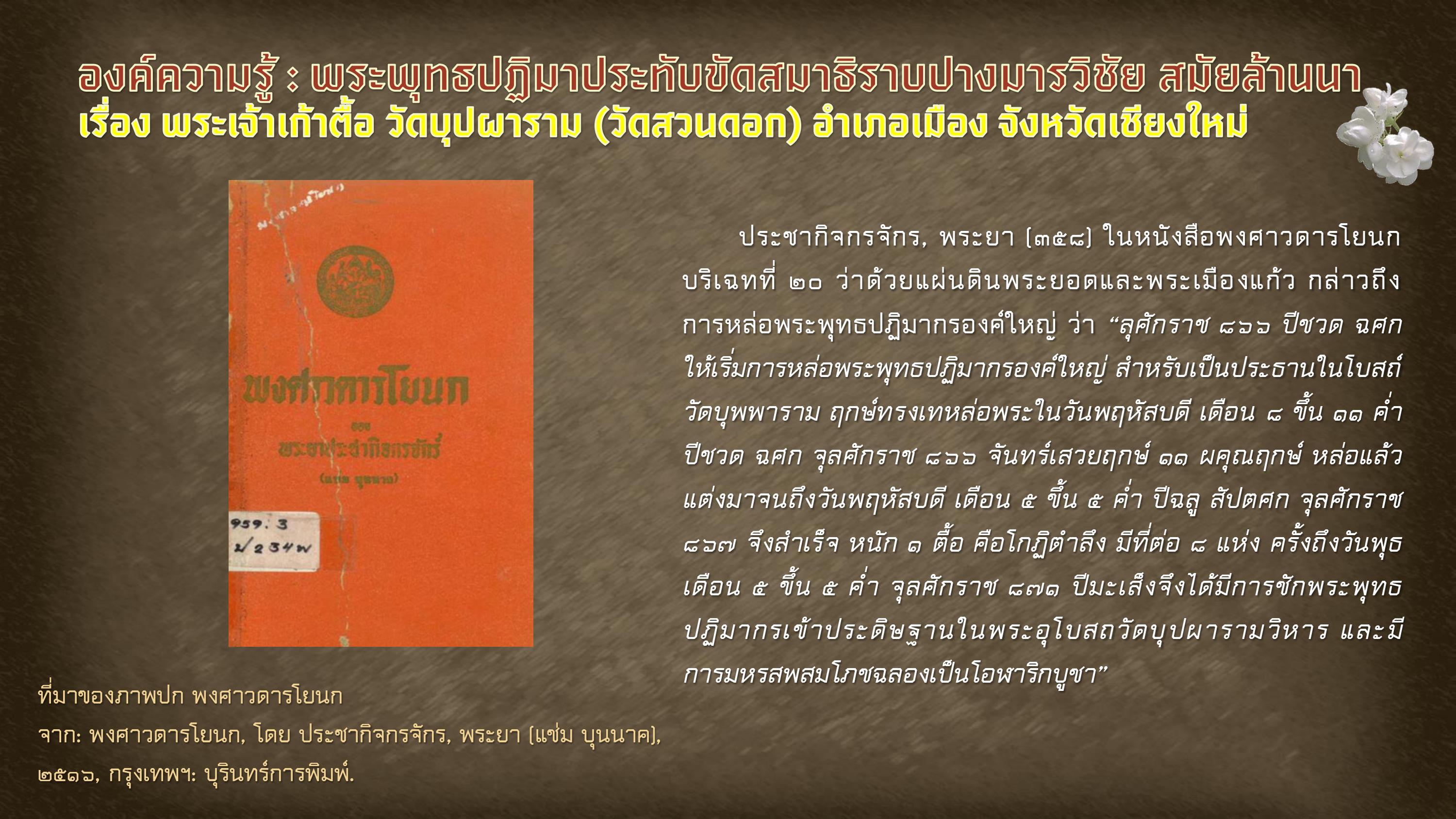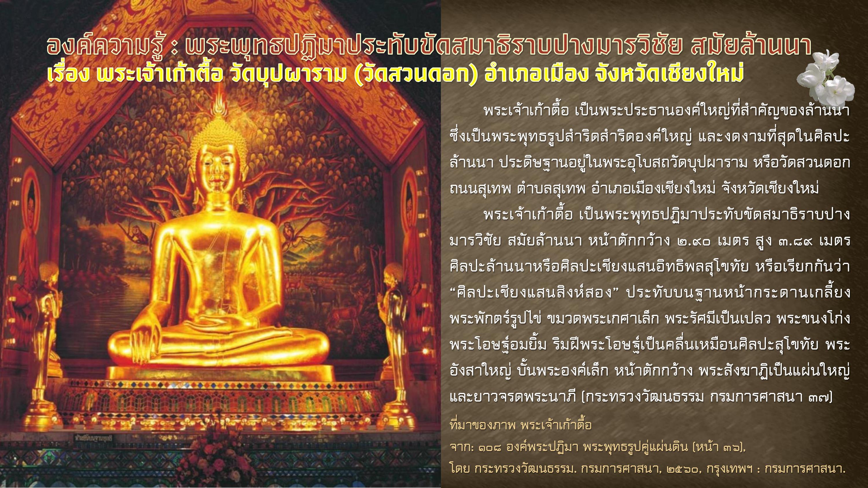 กระทรวงวัฒนธรรม. กรมการศาสนา. ๑๐๘ องค์พระปฏิมา พระพุทธรูปคู่แผ่นดิน. กรุงเทพฯ : กรมการศาสนา, ๒๕๖๐.