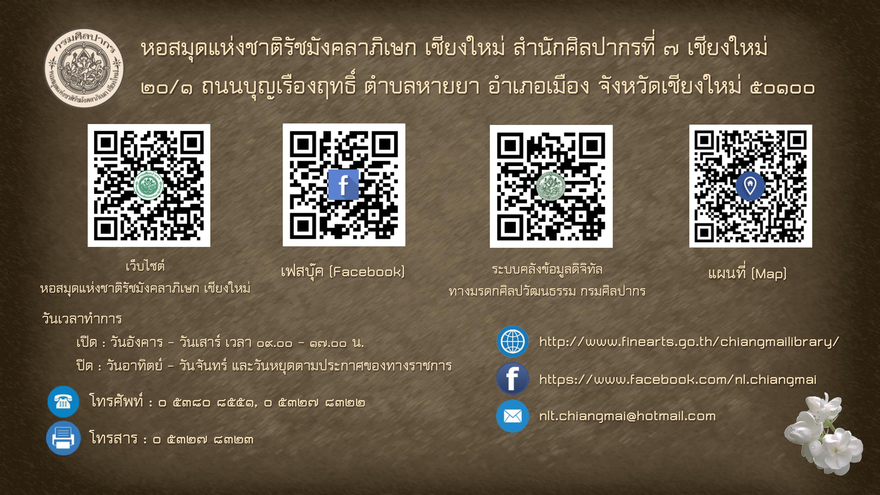 หอสมุดแห่งชาติรัชมังคลาภิเษก เชียงใหม่ สำนักศิลปากรที่ ๗ เชียงใหม่ กรมศิลปากร กระทรวงวัฒนธรรม