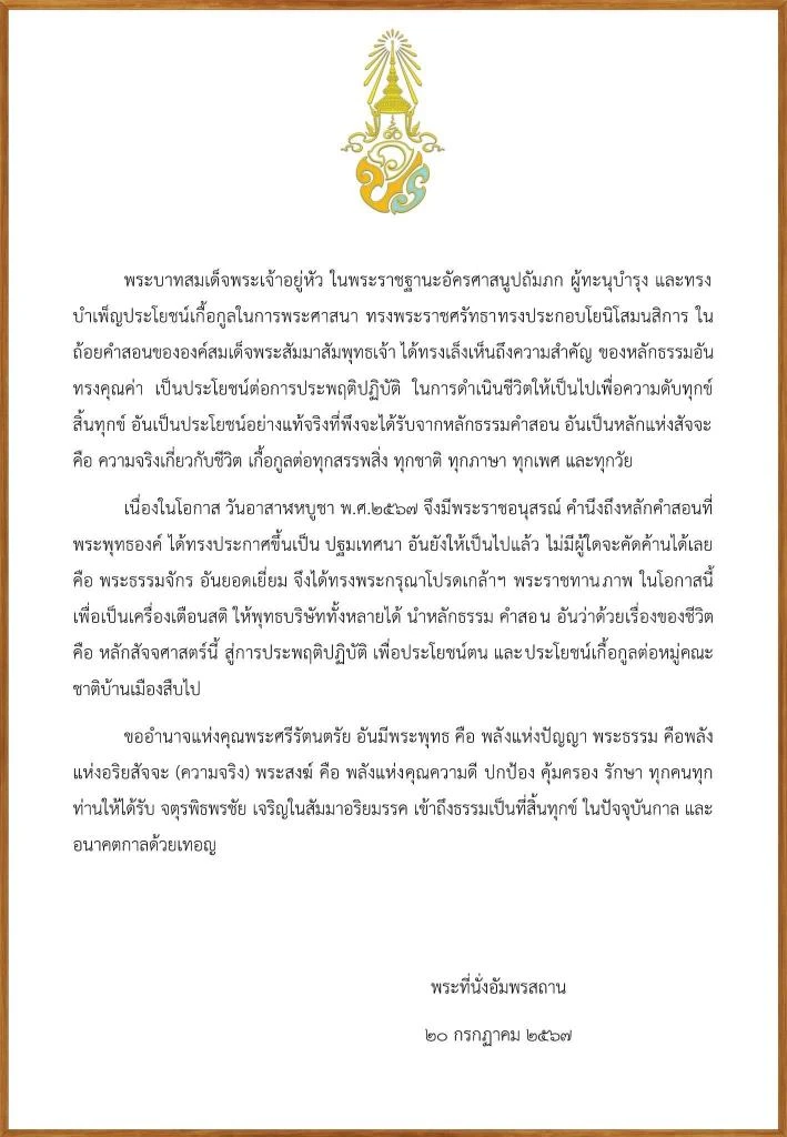 พระบาทสมเด็จพระเจ้าอยู่หัว พระราชทานภาพประกอบคติธรรม เนื่องในโอกาสวันอาสาฬหบูชา พุทธศักราช ๒๕๖๗