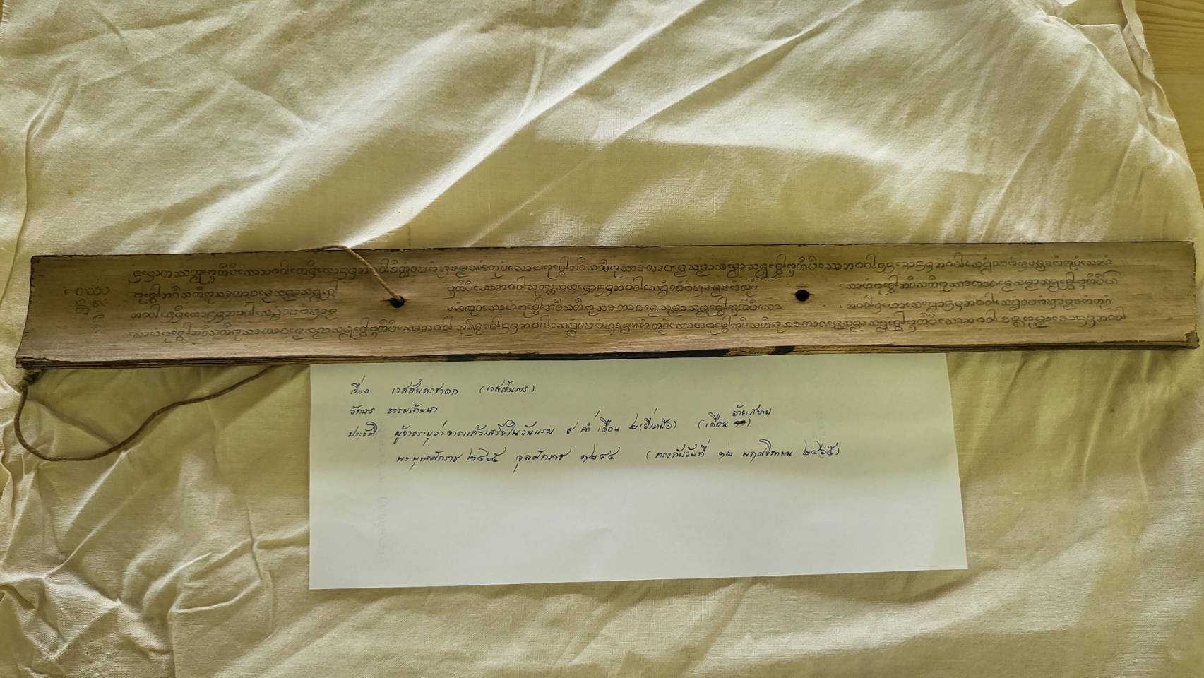 นายธนกร การิสุข นักศึกษาสาขาวิชาประวัติศาสตร์ คณะมนุษยศาสตร์ มหาวิทยาลัยเชียงใหม่ มอบเอกสารโบราณ (คัมภีร์ใบลาน) จำนวน ๑ ผูก