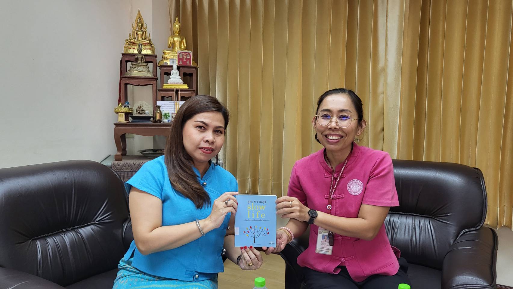 นางสาวรมย์ชลี คำดวง นักทัณฑสถานวิทยาชำนาญการ เข้าพบนางสาวปุณณภา สุขสาคร ผู้อำนวยการหอสมุดแห่งชาติรัชมังคลาภิเษก เชียงใหม่ เพื่อส่งมอบทรัพยากรสารสนเทศของหอสมุดแห่งชาติฯ เชียงใหม่