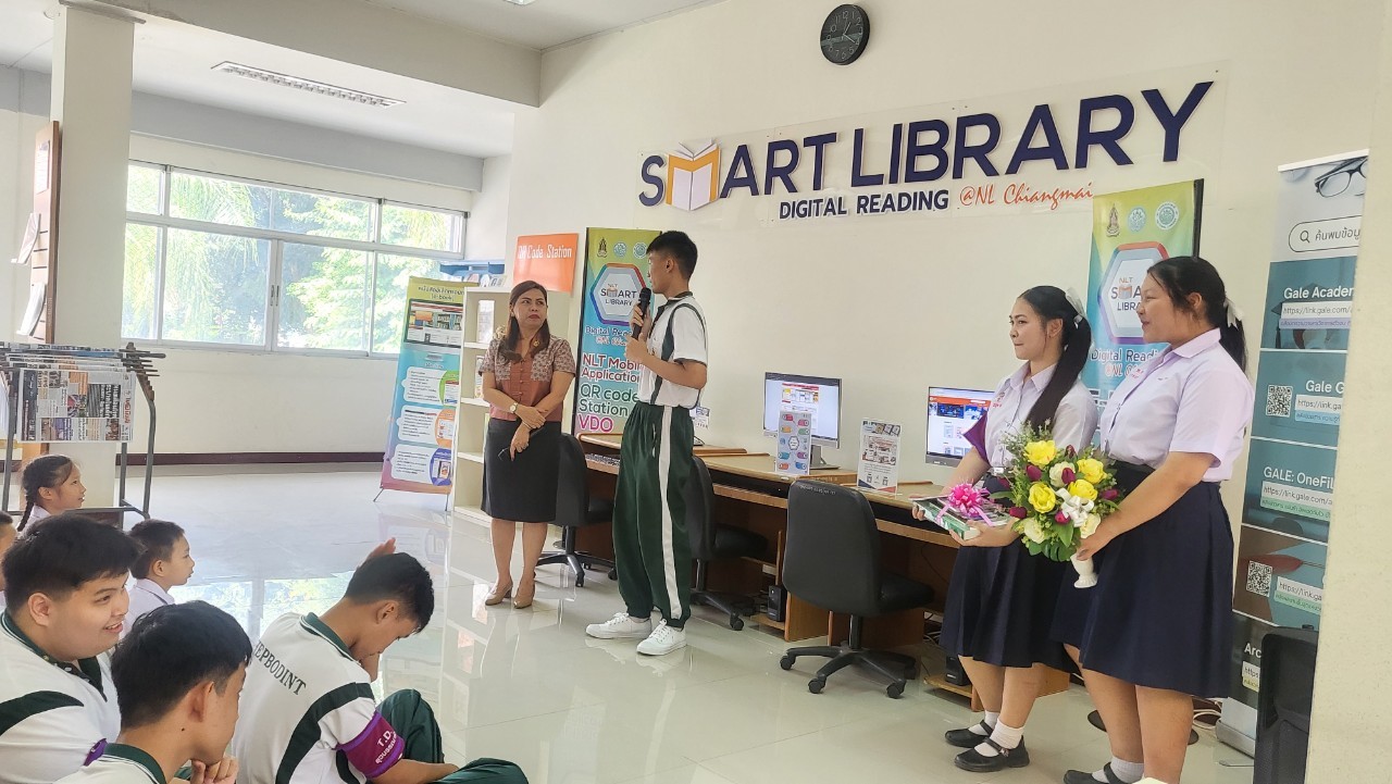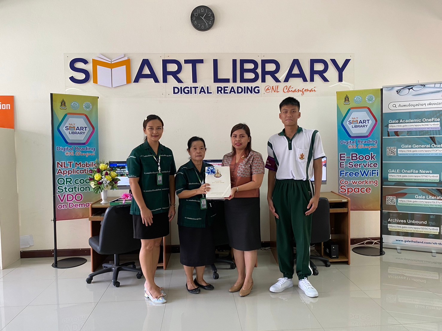 วันพฤหัสบดีที่ ๑๒ กันยายน ๒๕๖๗ เวลา ๑๓.๐๐ - ๑๕.๓๐ น. ครูและนักเรียน ชมรมยุวบรรณารักษ์ จำนวน ๖๒ คน จากโรงเรียนเทพบดินทร์วิทยา เชียงใหม่ เข้ามาศึกษาแหล่งเรียนรู้ หอสมุดแห่งชาติรัชมังคลาภิเษก เชียงใหม่ โดยมีนางสาวปุณณภา สุขสาคร ผู้อำนวยการหอสมุดแห่งชาติรัชมังคลาภิเษก เชียงใหม่ พร้อมด้วยบุคลากร ให้การต้อนรับและแนะนำห้องบริการต่างๆ