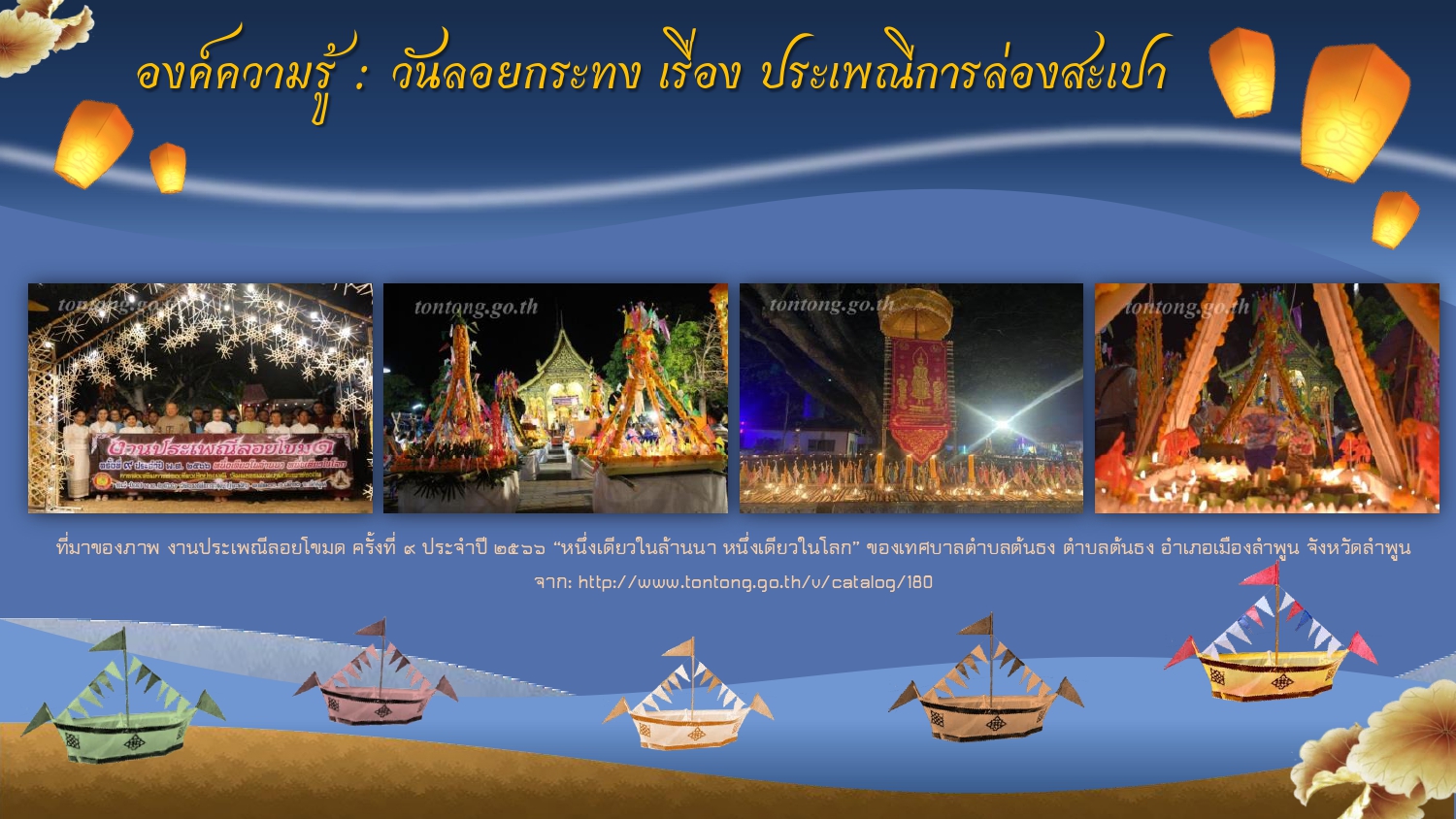 เทศบาลตำบลต้นธง . เทศบาลตำบลต้นธง ร่วมส่งเสริมประเพณีลอยโขมด ครั้งที่ ๙ ประจำปี ๒๕๖๖ หนึ่งเดียวในล้านนา หนึ่งเดียวในโลก”. [ออนไลน์].