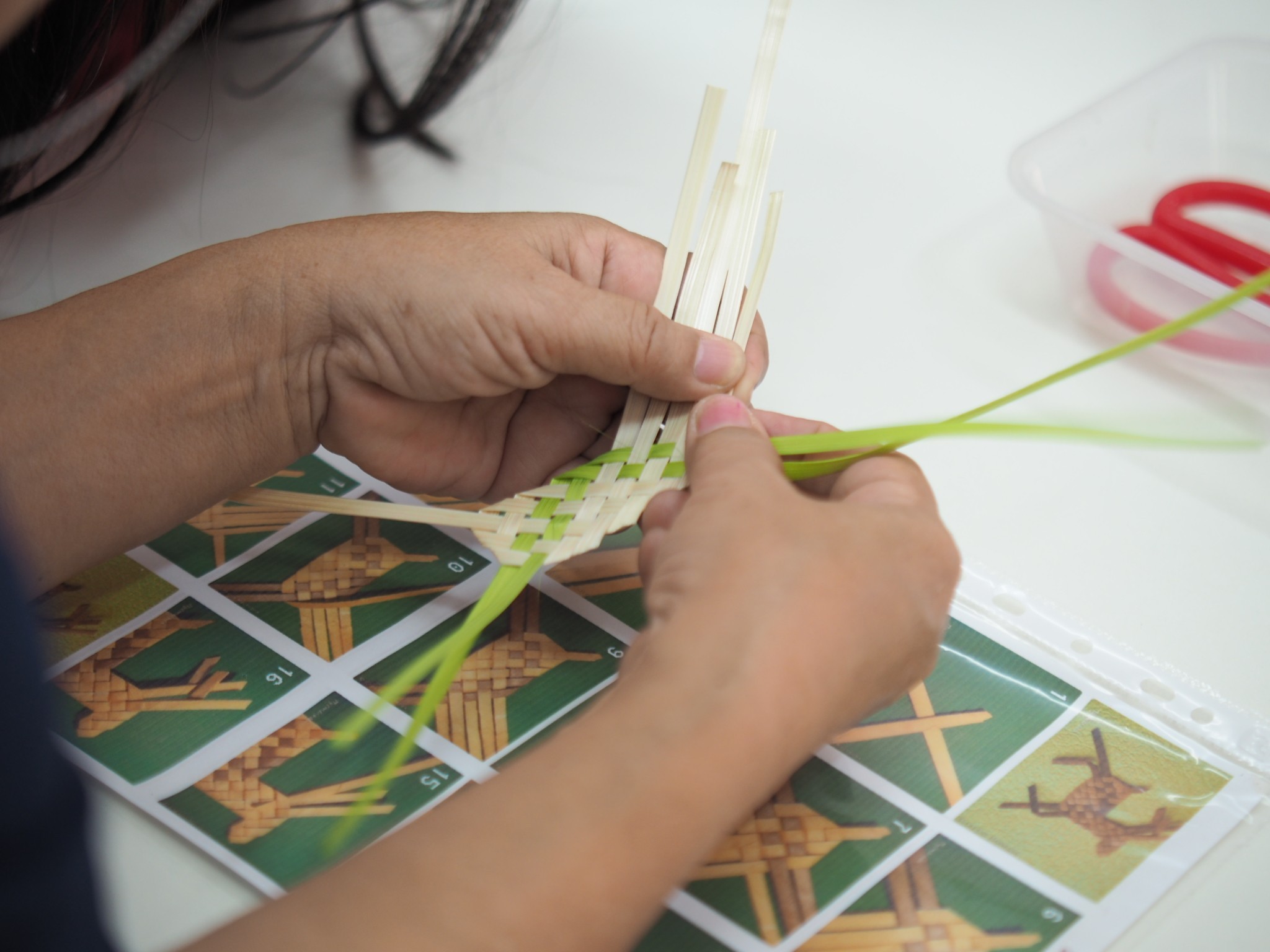 ฐานที่ ๒ ฐาน workshop เรียนรู้ภูมิปัญญาพื้นบ้าน จักสานม้าไม้ไผ่ วิทยากรโดยแม่ครูชุมชน
