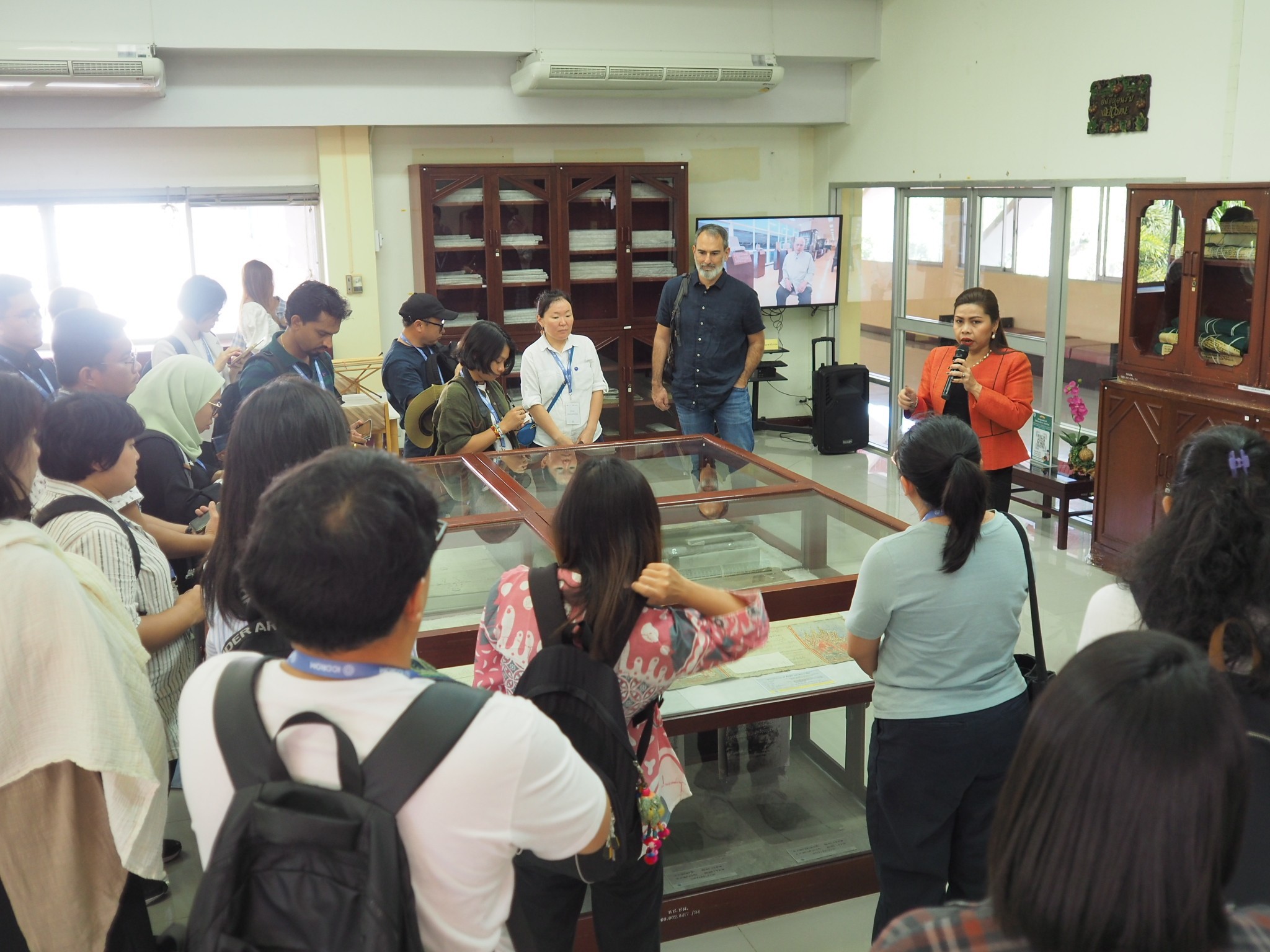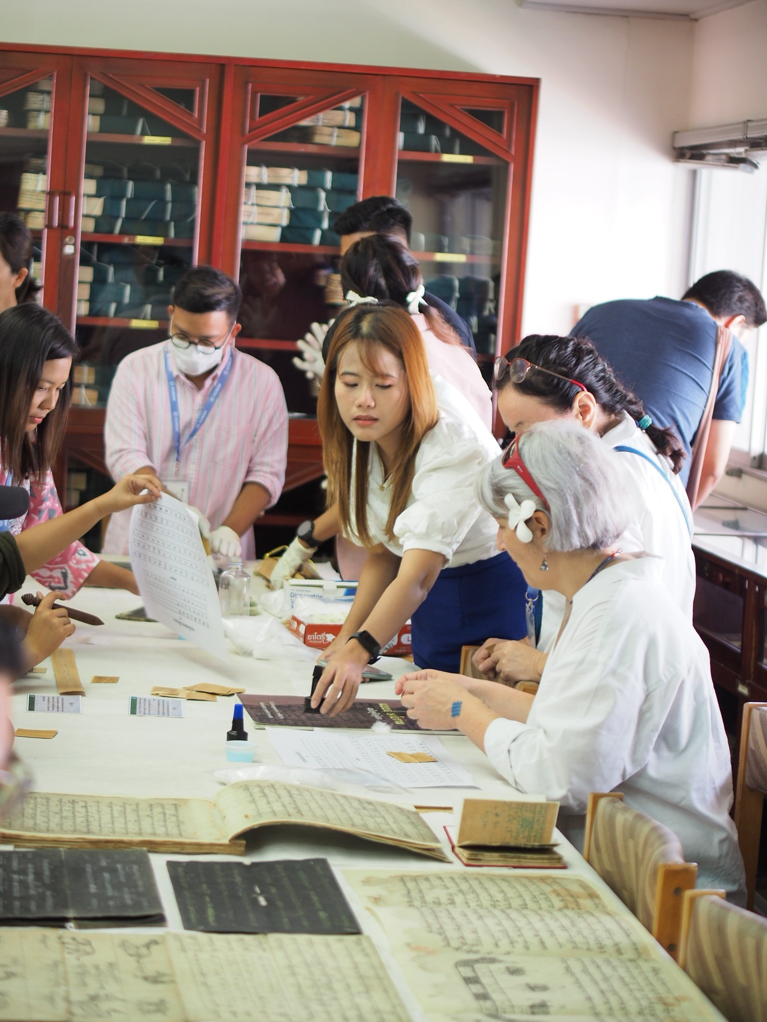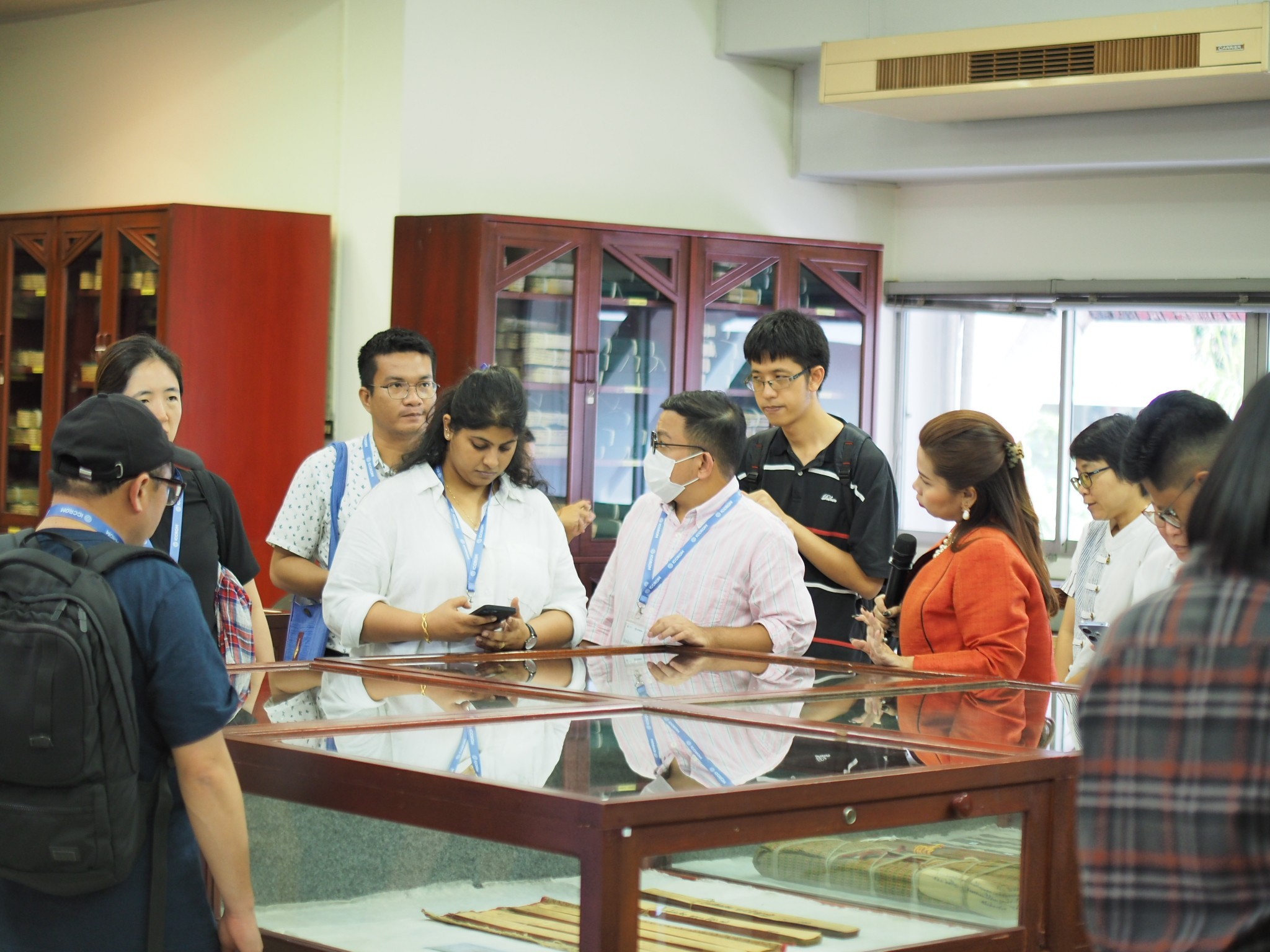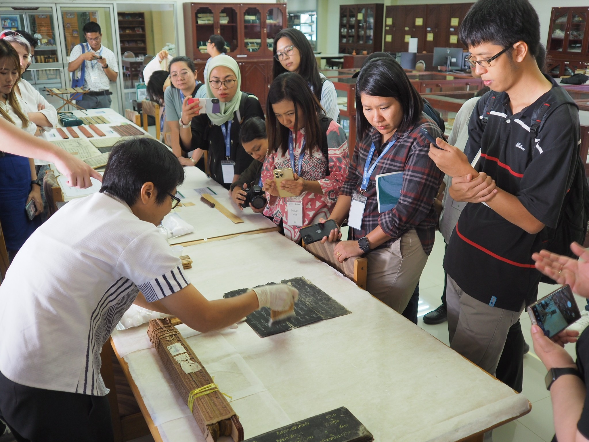 วันศุกร์ที่ ๒๒ พฤศจิกายน ๒๕๖๗ เวลา ๑๓.๓๐ น. นางสาวปุณณภา สุขสาคร ผู้อำนวยการหอสมุดแห่งชาติรัชมังคลาภิเษกเชียงใหม่ พร้อมด้วยบรรณารักษ์ ให้การต้อนรับคณะจาก The International Centre for the Study of the Preservation and Restoration of Cultural Property (ICCROM), National Research Institute of Cultural Heritage (NRICH), กรมศิลปากร กระทรวงวัฒนธรรม ที่มาเยี่ยมชมเอกสารโบราณ และกิจกรรมสาธิตการจารใบลาน และการทำความสะอาดเอกสารโบราณ ณ ห้องมรดกอักษรา หอสมุดแห่งชาติรัชมังคลาภิเษกเชียงใหม่