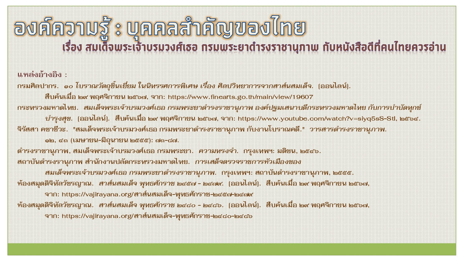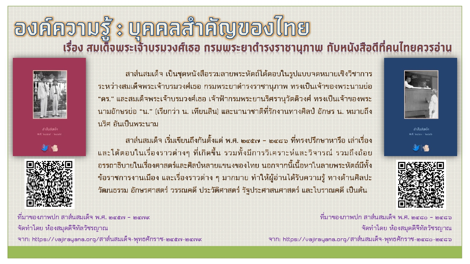 ห้องสมุดดิจิทัลวัชรญาณ. สาส์นสมเด็จ พุทธศักราช ๒๔๕๗ - ๒๔๗๙. [ออนไลน์]. สืบค้นเมื่อ ๒๙ พฤศจิกายน ๒๕๖๗, จาก: https://vajirayana.org/สาส์นสมเด็จ-พุทธศักราช-๒๔๕๗-๒๔๗๙