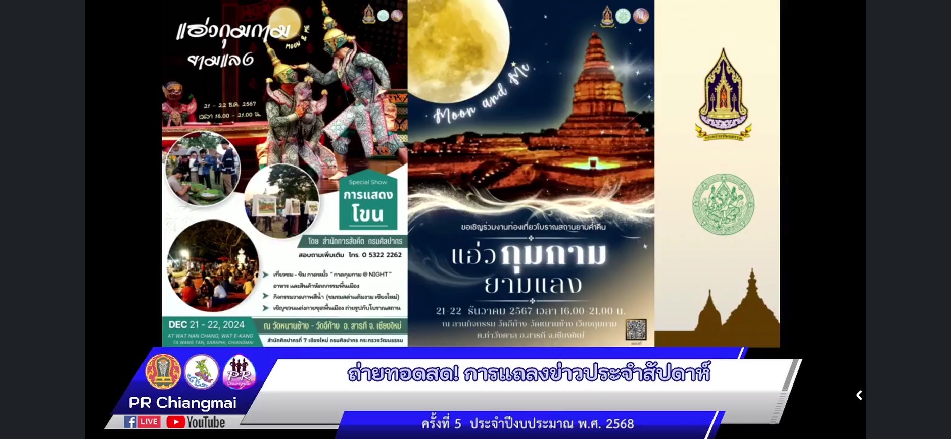การแถลงข่าวสื่อมวลชนจังหวัดเชียงใหม่ ครั้งที่ ๒๙/๒๕๖๗ วันอังคารที่ ๑๗ ธันวาคม ๒๕๖๗ ถ่ายทอดจาก ห้องประชุม ๓ ชั้น ๓ ศาลากลางจังหวัดเชียงใหม่ ประเด็นการแถลงข่าวที่น่าสนใจ มีดังนี้ สามารถรับชมได้ที่นี่ https://www.facebook.com/watch/?v=1323099592019135