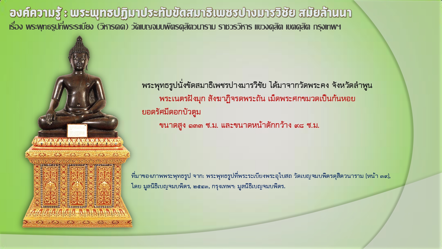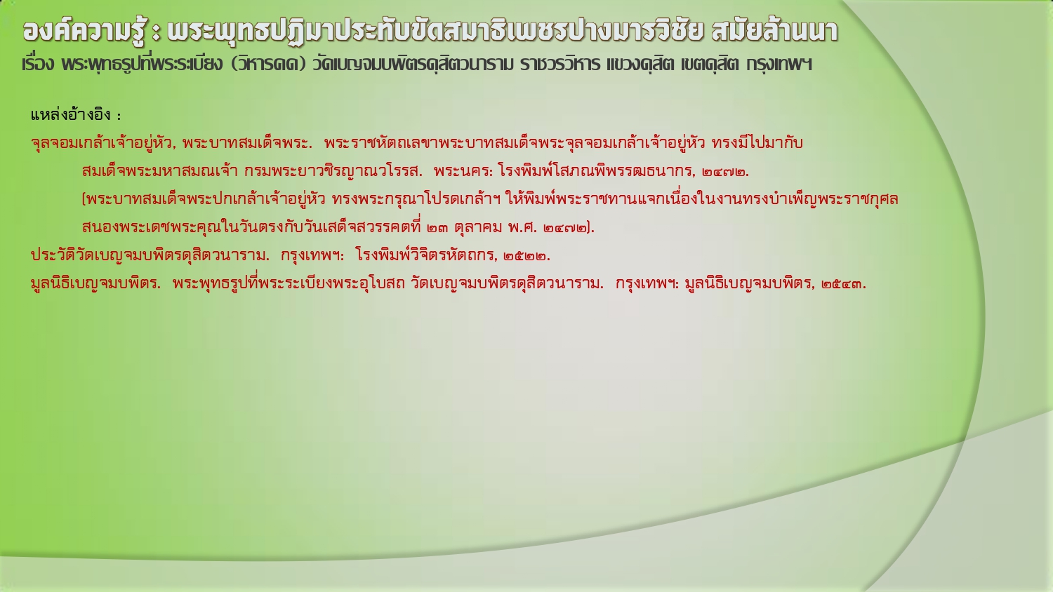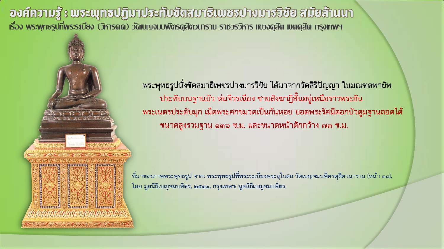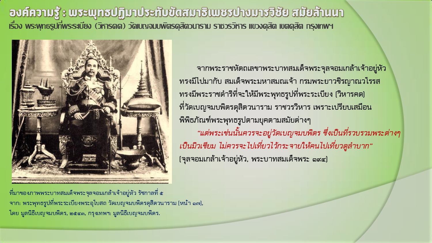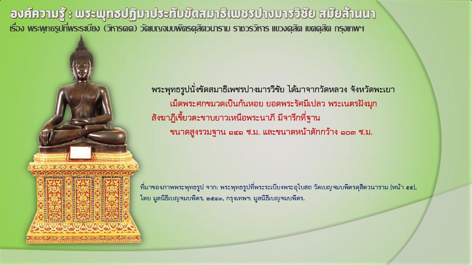 มูลนิธิเบญจมบพิตร. พระพุทธรูปที่พระระเบียงพระอุโบสถ วัดเบญจมบพิตรดุสิตวนาราม. กรุงเทพฯ: มูลนิธิเบญจมบพิตร, ๒๕๔๓.