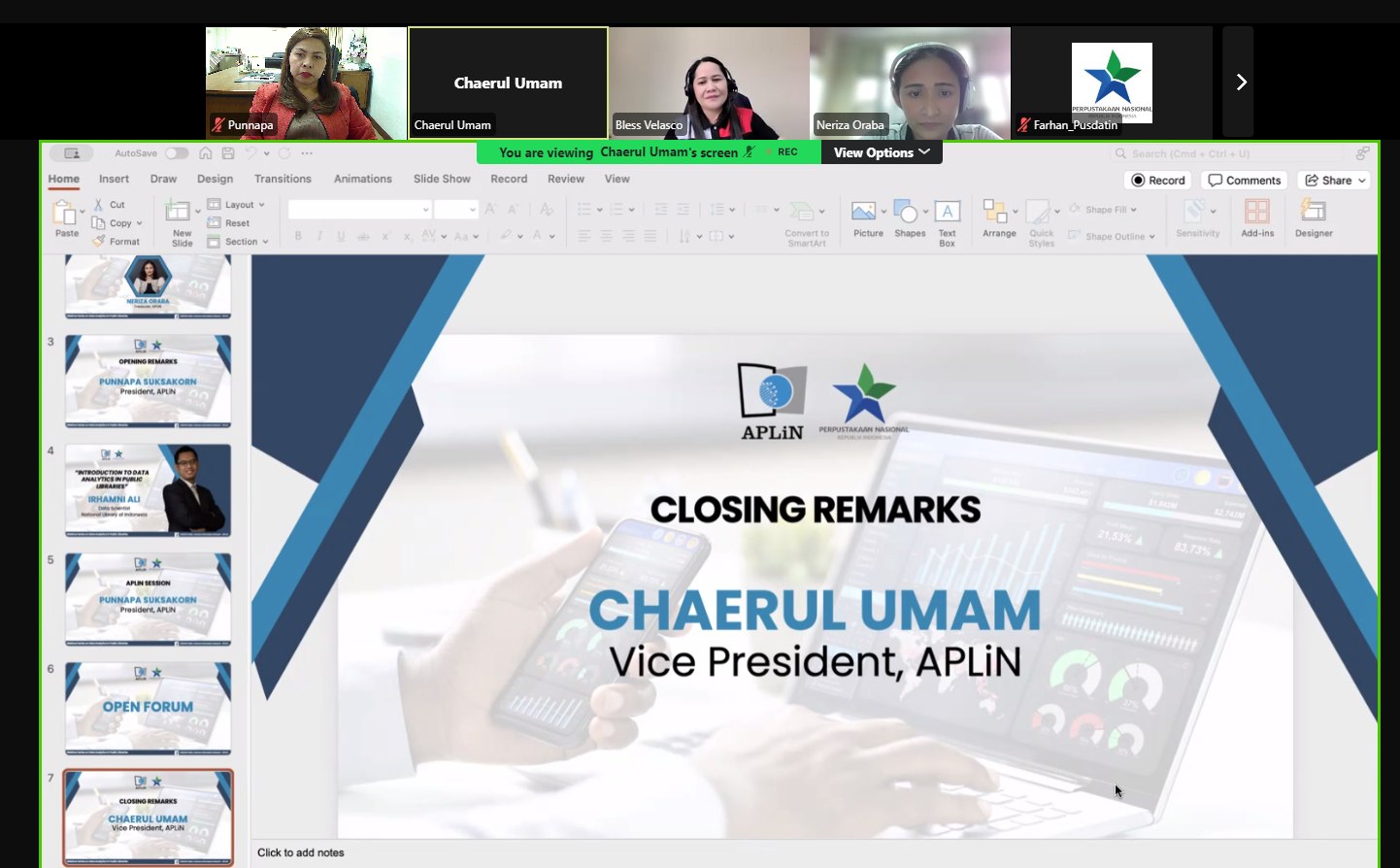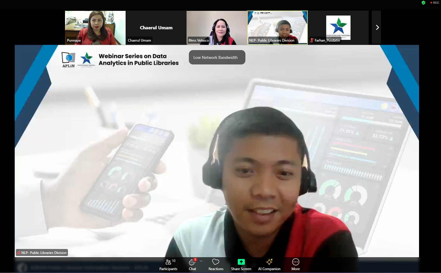 วันพฤหัสบดีที่ ๓๐ มกราคม ๒๕๖๘ เวลา ๑๓.๐๐ น. นางสาวปุณณภา สุขสาคร ผู้อำนวยการหอสมุดแห่งชาติรัชมังคลาภิเษก เชียงใหม่ ร่วมประชุมคณะกรรมการ เตรียมความพร้อมสำหรับการสัมมนาออนไลน์ หัวข้อ “การวิเคราะห์ข้อมูลห้องสมุดประชาชน” ที่จะมีขึ้นในวันที่ ๓๑ มกราคม ๒๕๖๘ เวลา ๐๙.๐๐ น. (เวลามะนิลา ประเทศฟิลิปฟินส์) ซึ่งเป็นความร่วมมือ Librarianship Collaboration ในระดับอาเซียน ระหว่างเครือข่ายสารสนเทศห้องสมุดประชาชนอาเซียน (APLiN) ร่วมกับหอสมุดแห่งชาติอินโดนีเซีย ผ่านระบบออนไลน์ Zoom Meeting
