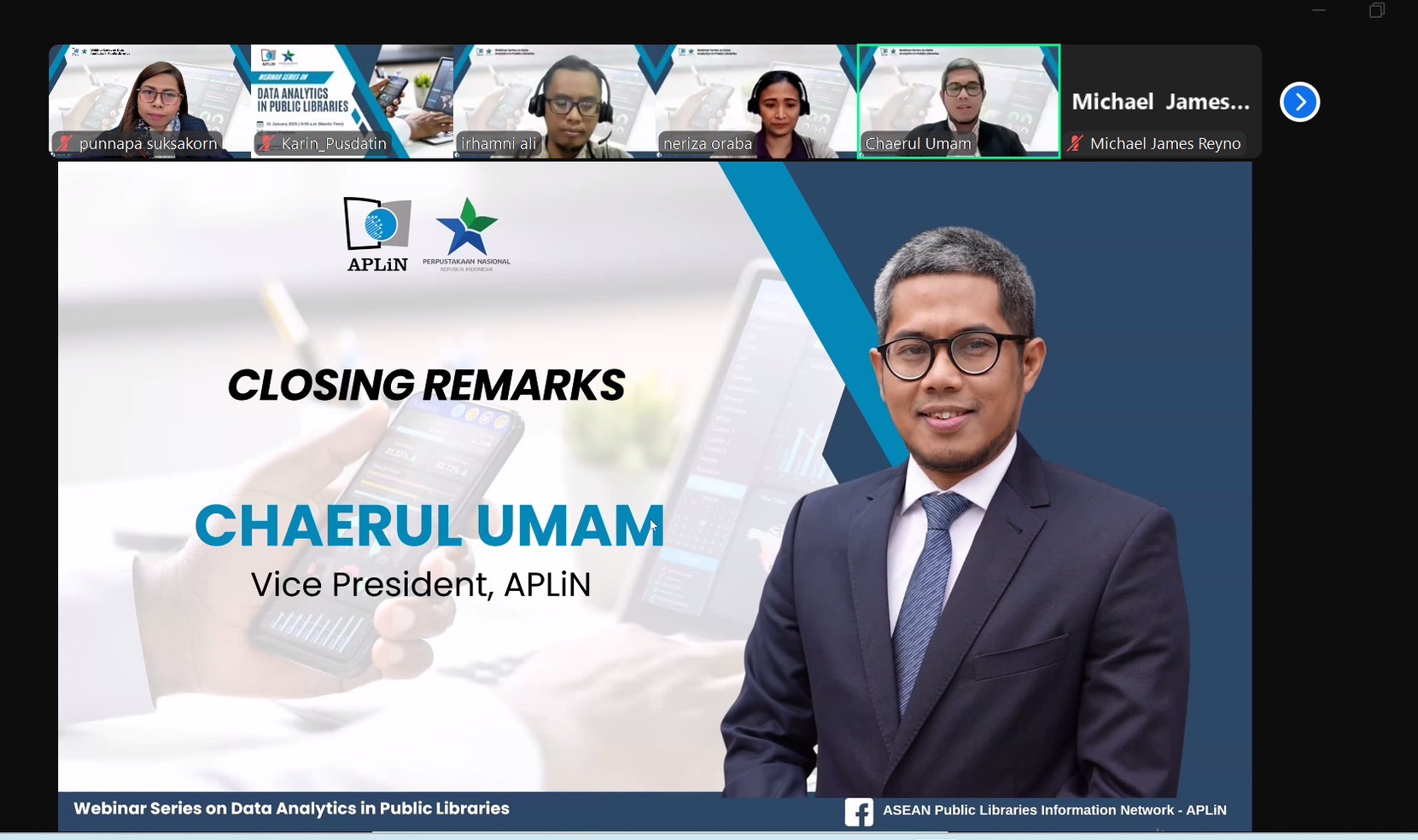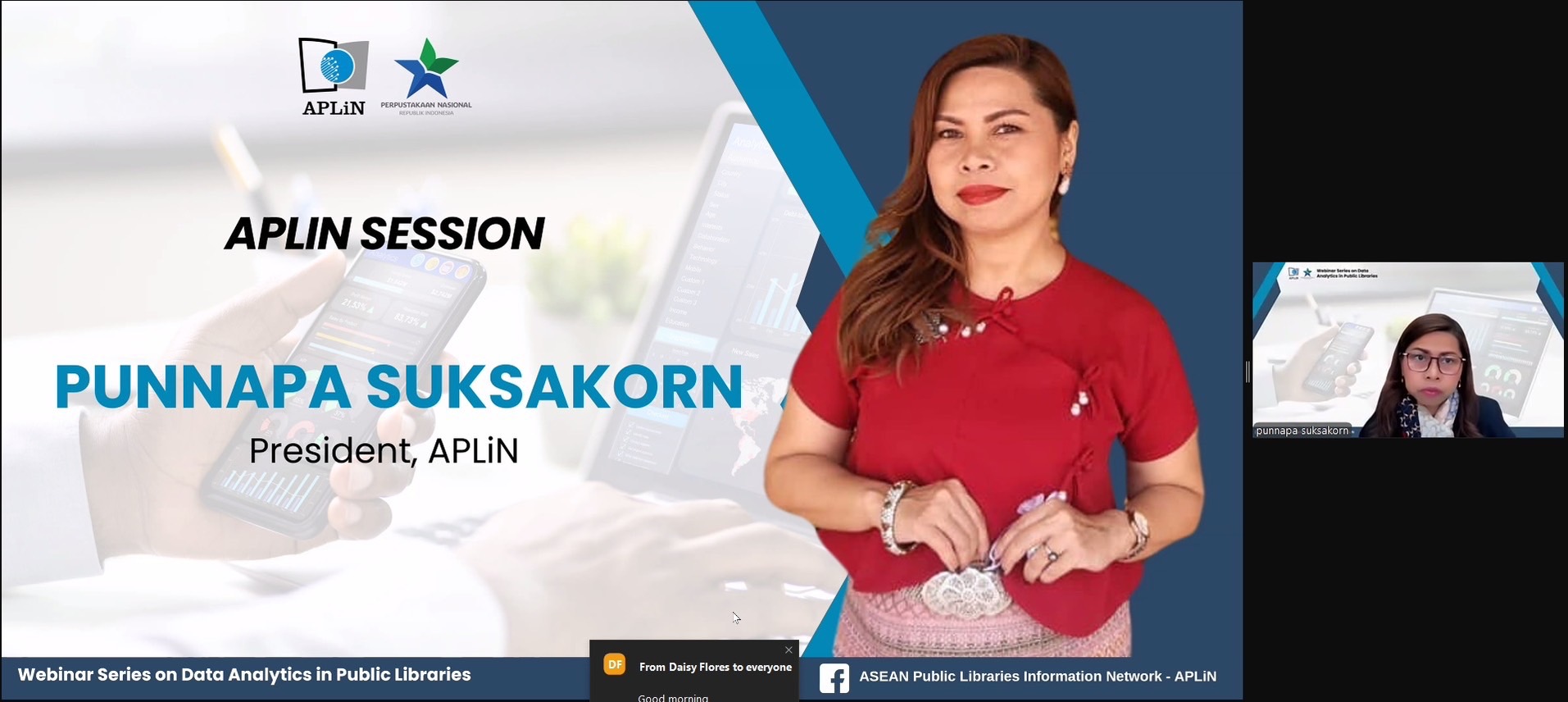 ผู้อำนวยการหอสมุดแห่งชาติรัชมังคลาภิเษก เชียงใหม่ เข้าร่วมสัมมนาออนไลน์ หัวข้อ “การวิเคราะห์ข้อมูลห้องสมุดประชาชน” จัดโดย เครือข่ายสารสนเทศห้องสมุดประชาชนอาเซียน (APLiN) ร่วมกับหอสมุดแห่งชาติอินโดนีเซีย