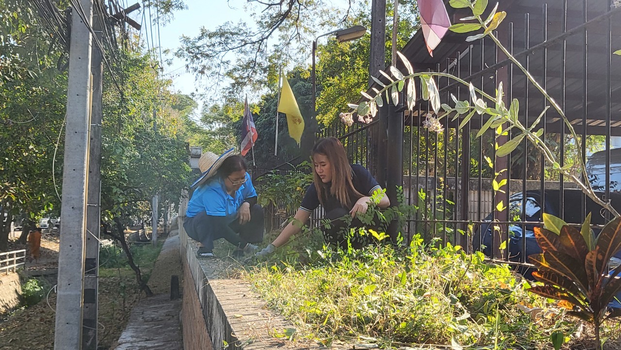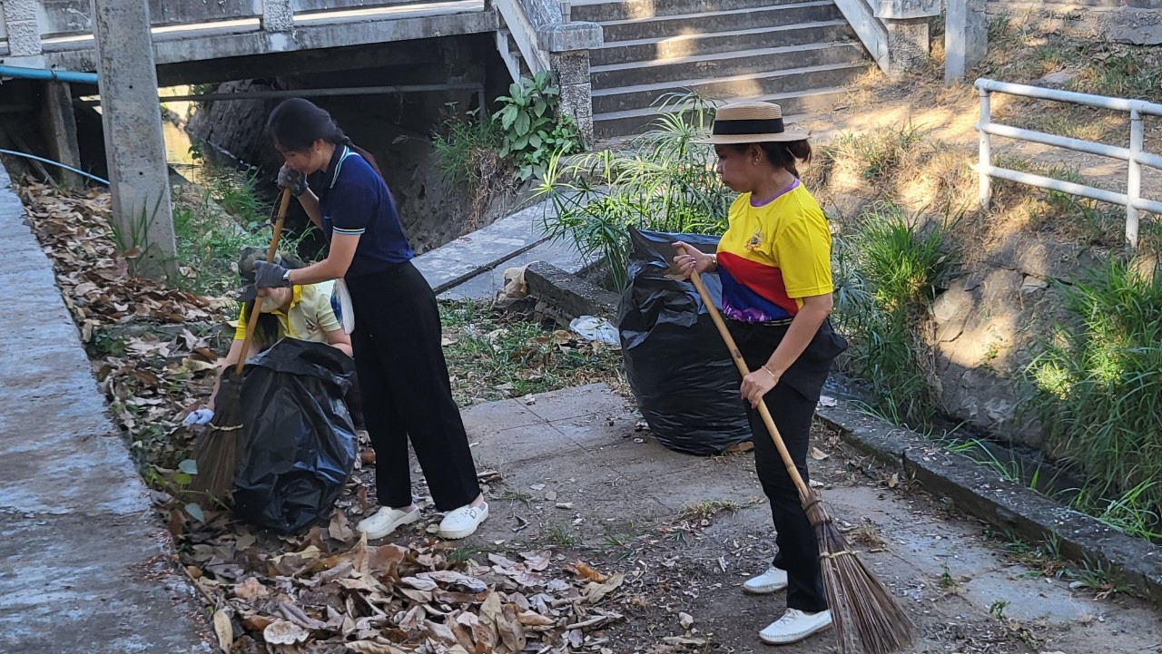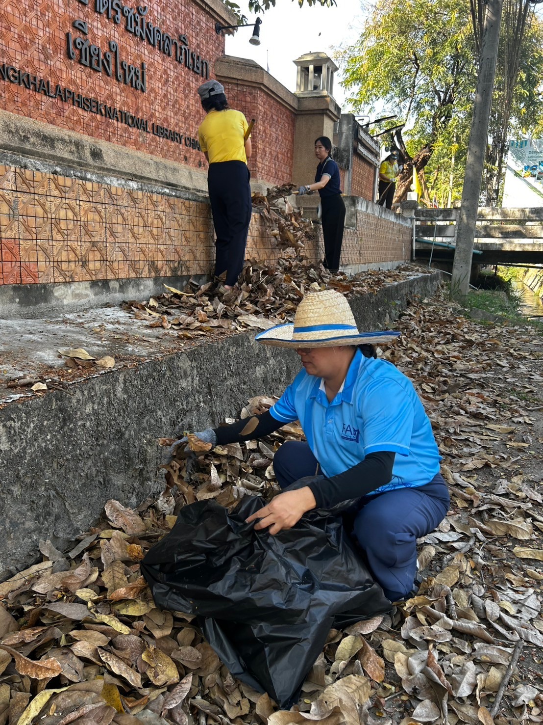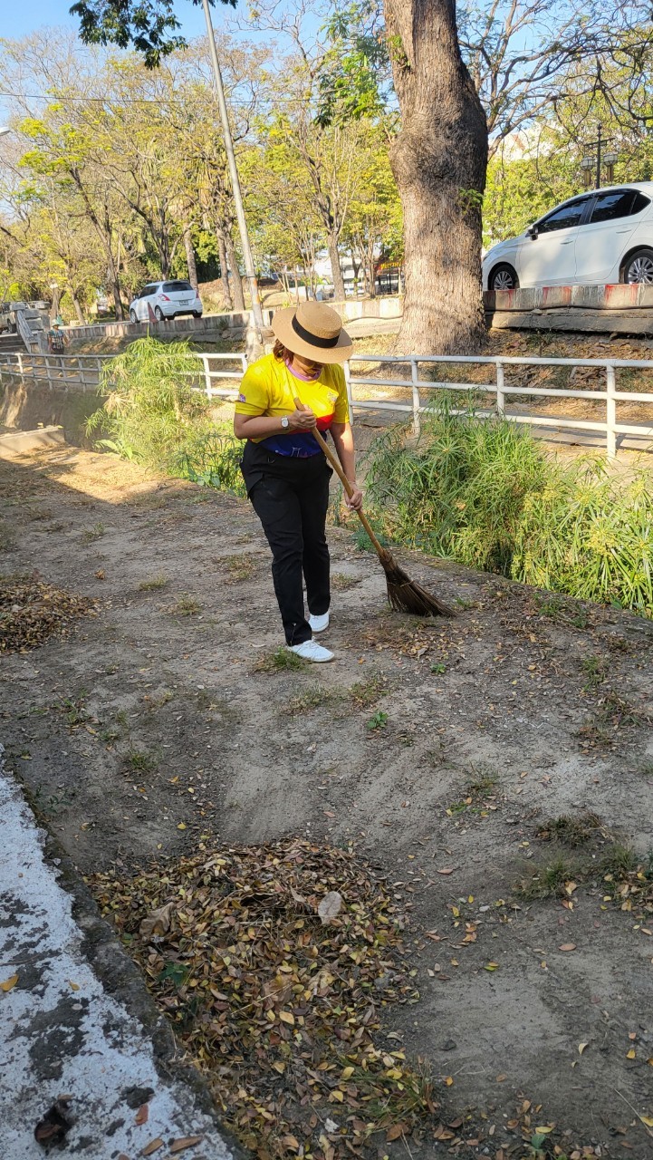 ผู้อำนวยการหอสมุดแห่งชาติรัชมังคลาภิเษก เชียงใหม่ พร้อมด้วยบุคลากรร่วมกันทำความสะอาด บริเวณด้านหน้าหอสมุดแห่งชาติรัชมังคลาภิเษก เชียงใหม่