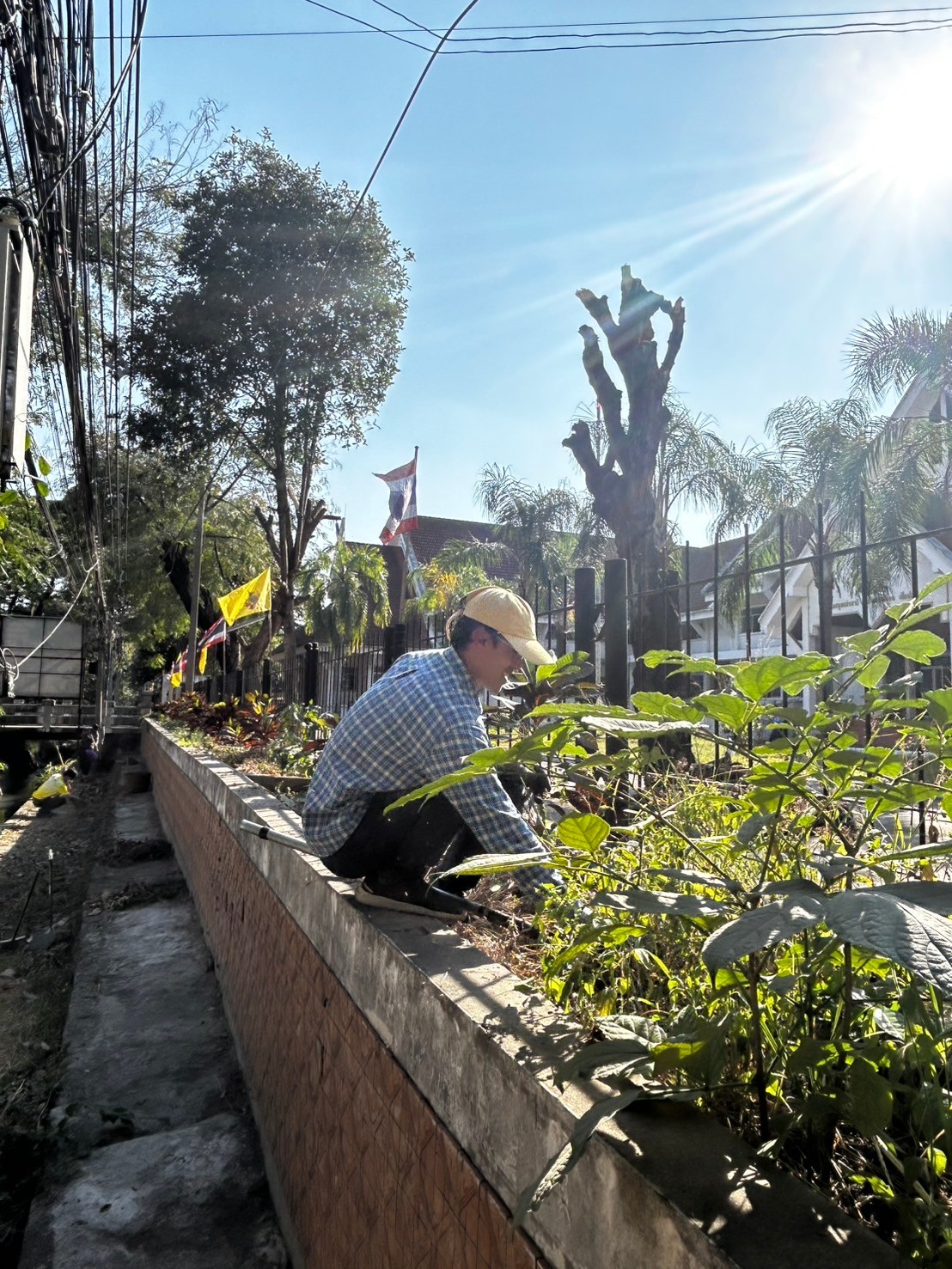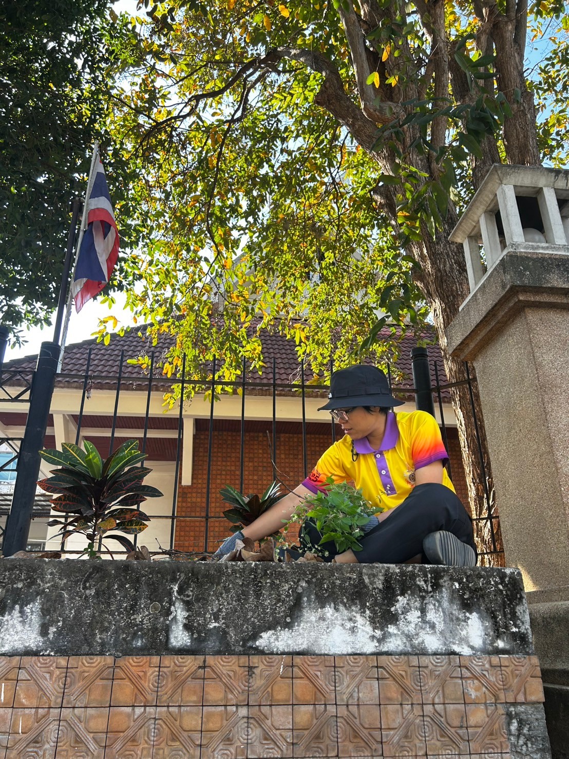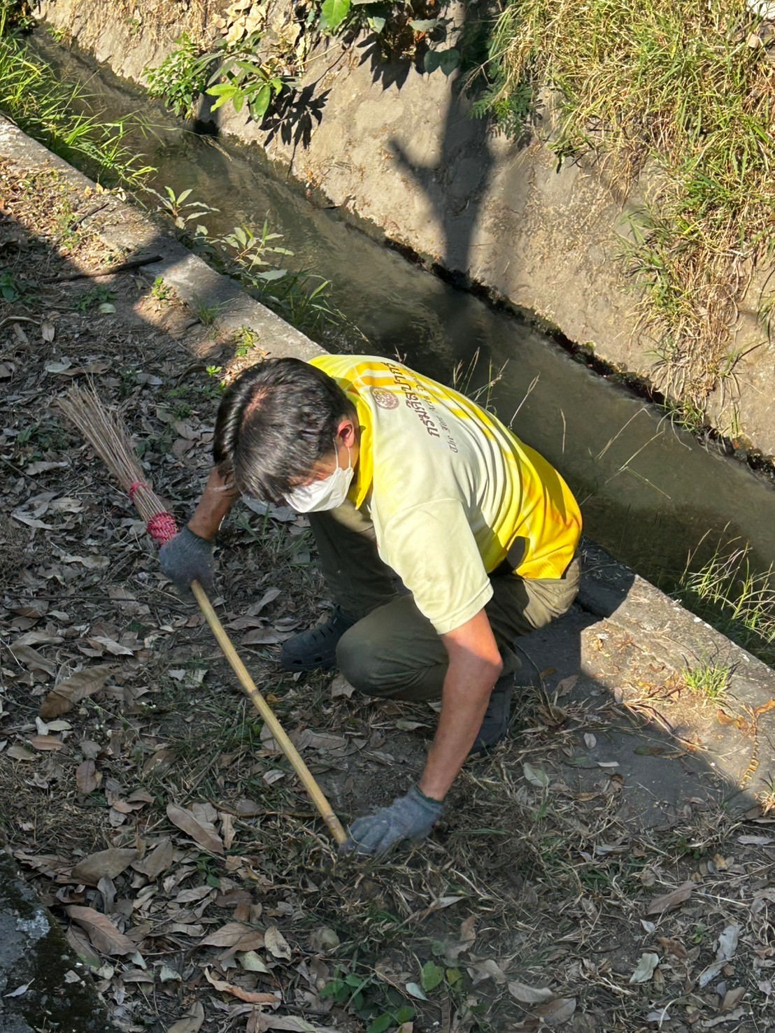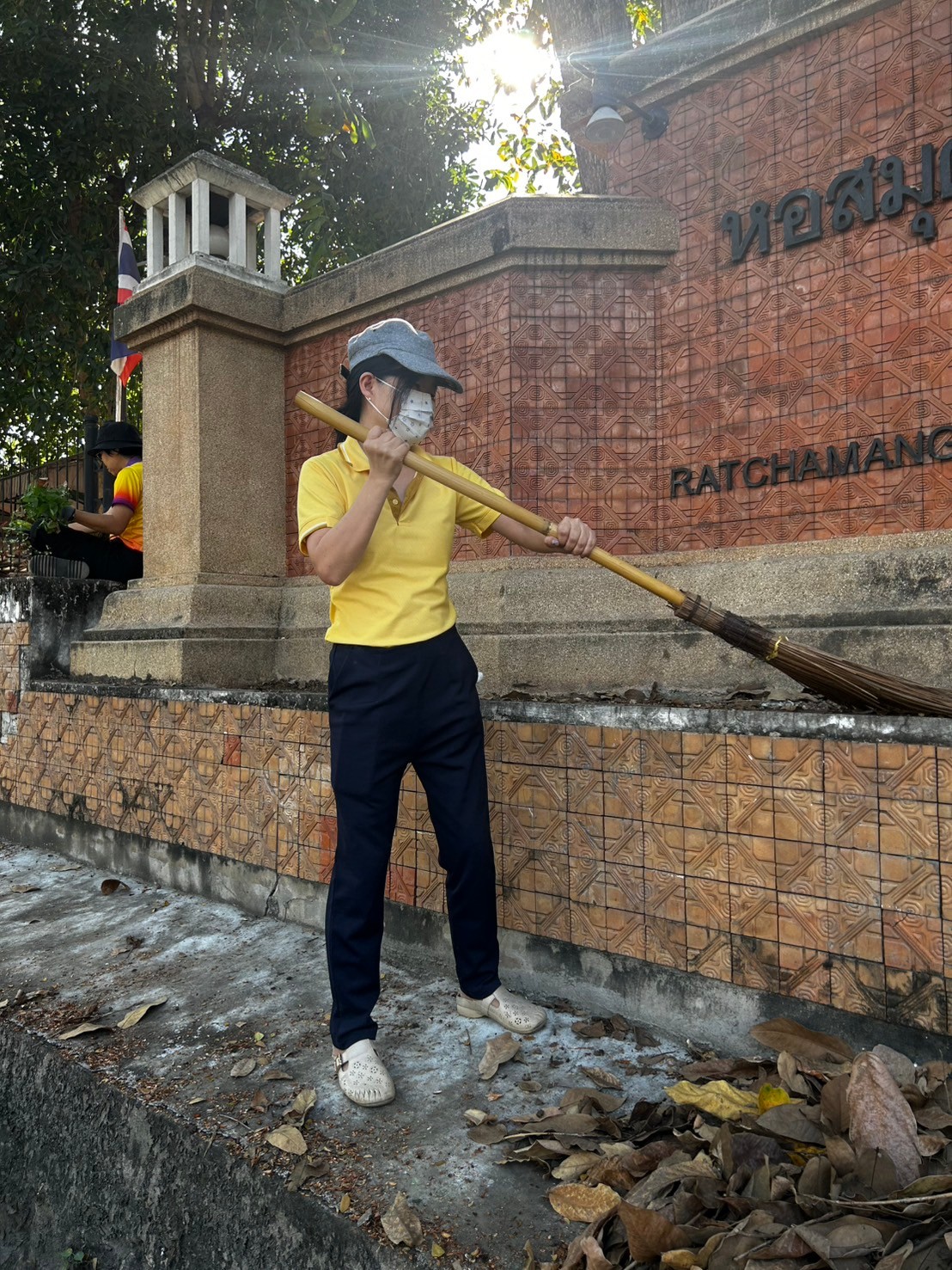 ผู้อำนวยการหอสมุดแห่งชาติรัชมังคลาภิเษก เชียงใหม่ พร้อมด้วยบุคลากรร่วมกันทำความสะอาด บริเวณด้านหน้าหอสมุดแห่งชาติรัชมังคลาภิเษก เชียงใหม่