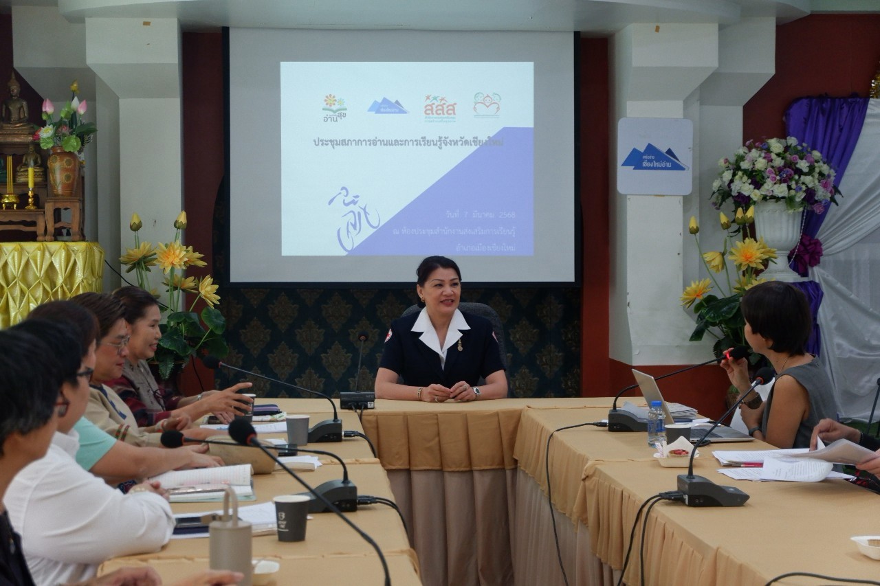 วันศุกร์ที่ ๗ มีนาคม ๒๕๖๘ เวลา ๑๓.๓๐ น. นางสาวปุณณภา สุขสาคร ผู้อำนวยการหอสมุดแห่งชาติรัชมังคลาภิเษก เชียงใหม่ พร้อมด้วยนางวรรณภา ปะวิโน บรรณารักษ์ชำนาญการ เข้าร่วมประชุม สภาการอ่านและการเรียนรู้จังหวัดเชียงใหม่ ณ ห้องประชุม ชั้น ๒ ศูนย์ส่งเสริมการเรียนรู้ระดับอำเภอเมืองเชียงใหม่ ตำบลช้างเผือก อำเภอเมืองเชียงใหม่ จังหวัดเชียงใหม่