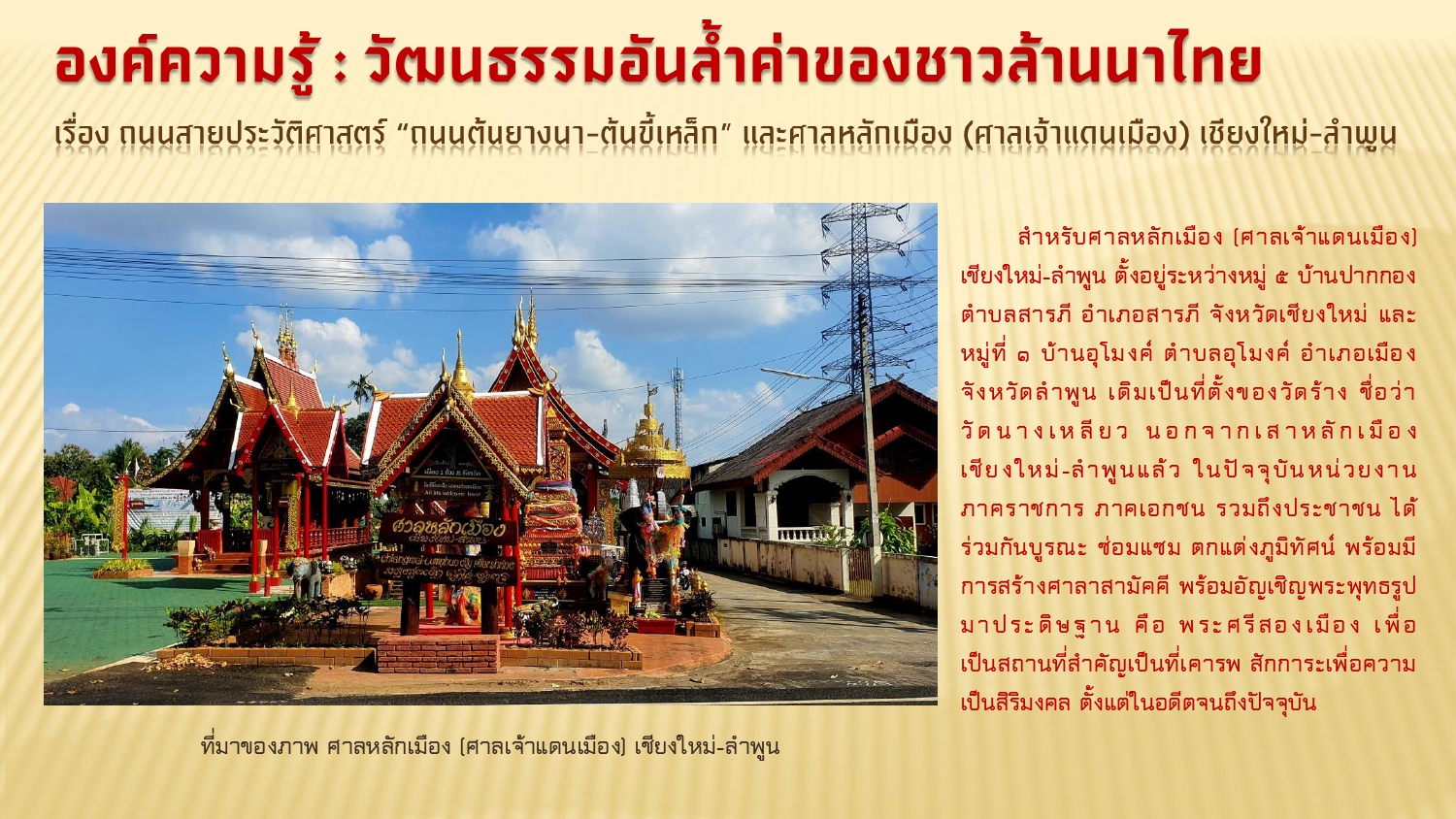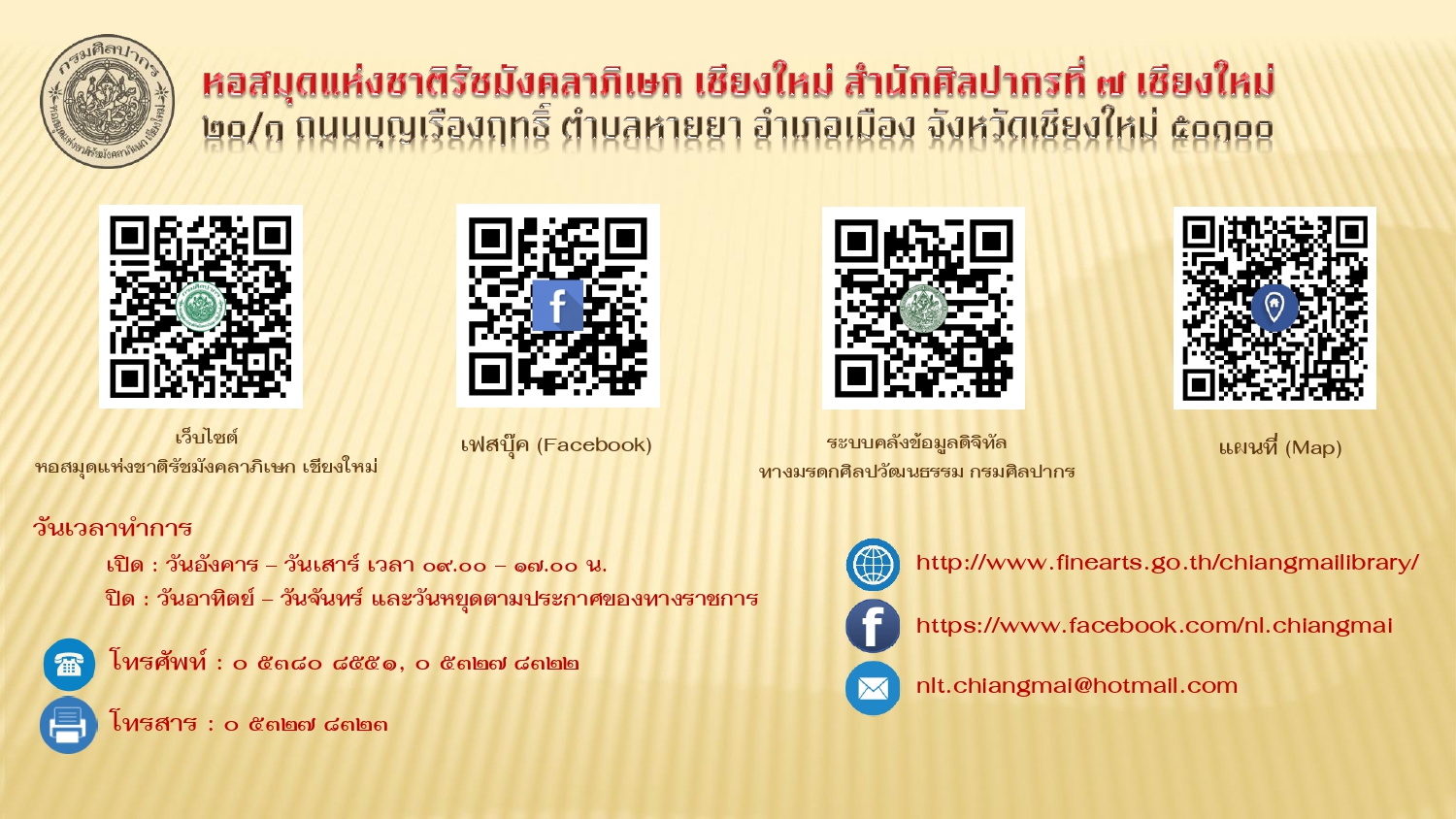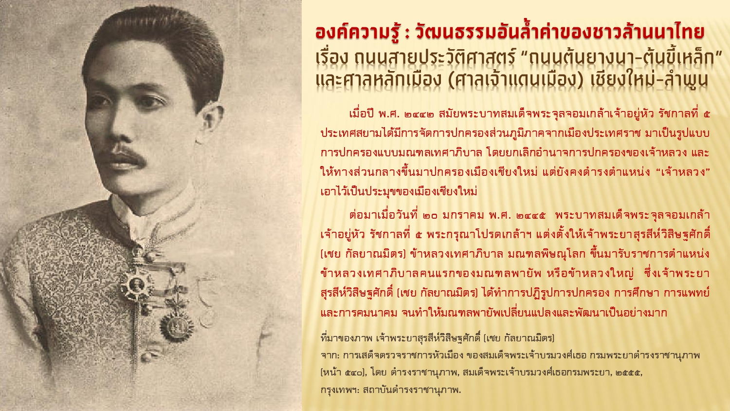 เรียบเรียงโดย : นายธีรบูลย์ มิตรมโนชัย นักวิชาการโสตทัศนศึกษาชำนาญการ หอสมุดแห่งชาติรัชมังคลาภิเษก เชียงใหม่ สำนักศิลปากรที่ ๗ เชียงใหม่ กรมศิลปากร กระทรวงวัฒนธรรม