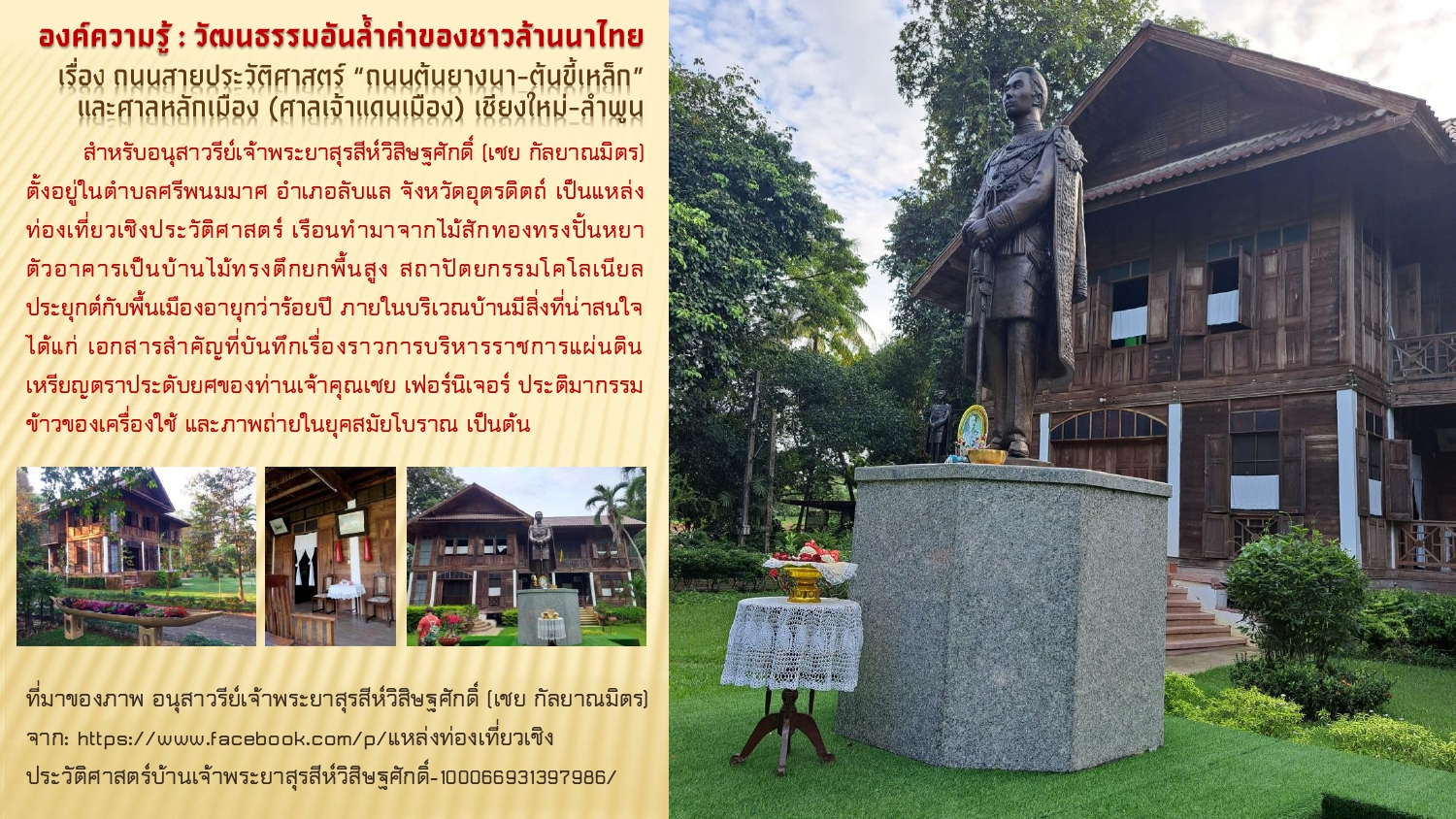 จาก: https://www.facebook.com/p/แหล่งท่องเที่ยวเชิงประวัติศาสตร์บ้านเจ้าพระยาสุรสีห์วิสิษฐศักดิ์-100066931397986/