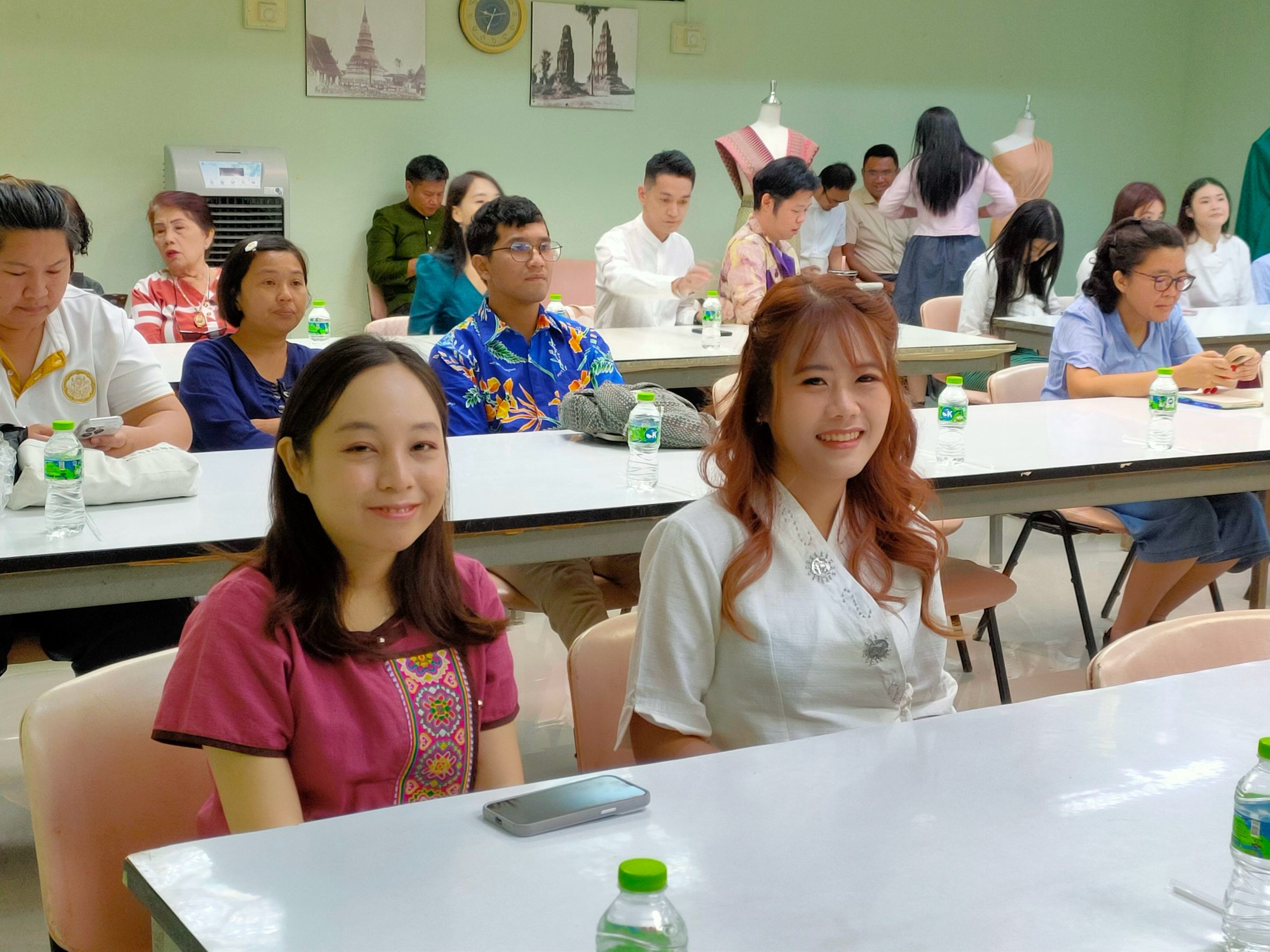 นางสาวปุณณภา สุขสาคร ผู้อำนวยการหอสมุดแห่งชาติรัชมังคลาภิเษก เชียงใหม่ และนางสาววารุณี วิริยะชูศรี บรรณารักษ์ เข้าร่วมกิจกรรมโครงการเสวนา "ประวัติศาสตร์ผ้าทอลำพูน เอกลักษณ์ที่ทรงคุณค่า"