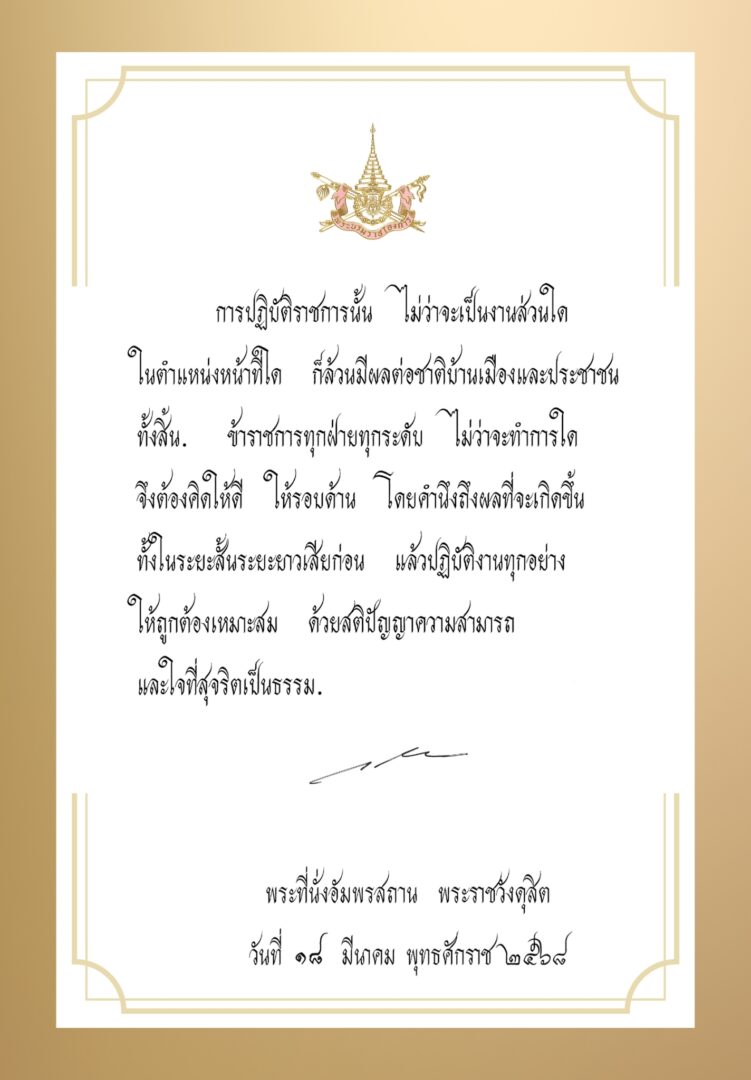 พระบรมราโชวาท เนื่องในวันข้าราชการพลเรือน ประจำปี พ.ศ. ๒๕๖๘