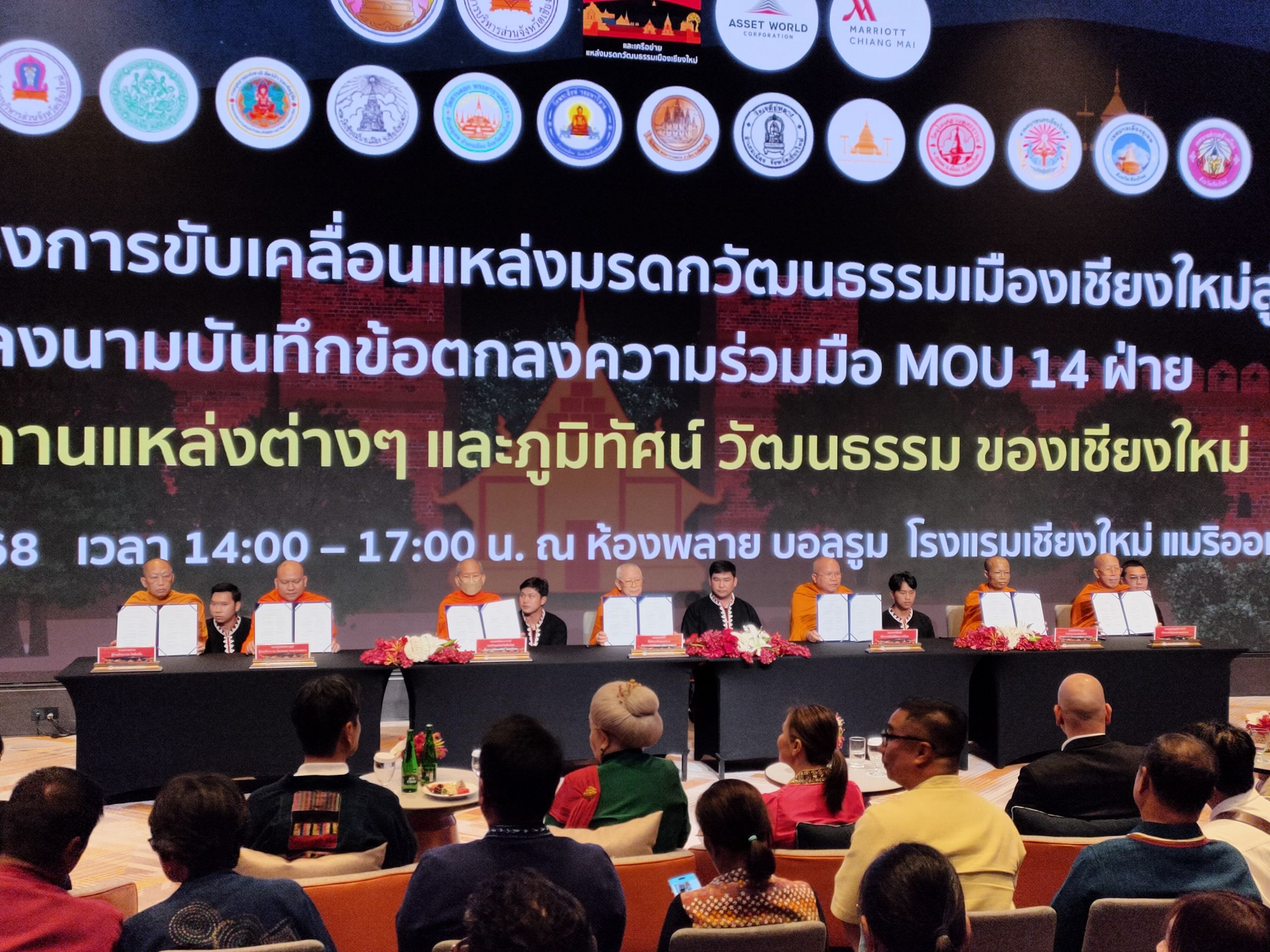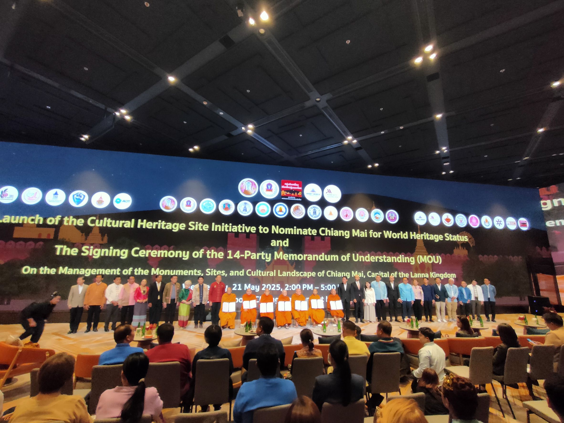 วันพุธที่ ๒๑ พฤษภาคม ๒๕๖๘ เวลา ๑๔.๐๐ น. นางสาวปุณณภา สุขสาคร ผู้อำนวยการหอสมุดแห่งชาติรัชมังคลาภิเษก เชียงใหม่ และนางสาวพิมพา สุธัญญาวัชชัย บรรณารักษ์ชำนาญการ เข้าร่วมงานแถลงข่าวเปิดตัวโครงการขับเคลื่อนแหล่งมรดกวัฒนธรรมเมืองเชียงใหม่สู่มรดกโลก และพิธีลงนามบันทึกข้อตกลงความร่วมมือว่าด้วยการบริหารจัดการ “อนุสรณ์สถาน แหล่งต่างๆ และภูมิทัศน์วัฒนธรรมของเชียงใหม่ นครหลวงล้านนา” ณ ห้องพลาย บอลรูม โรงแรมเชียงใหม่ แมริออท โฮเทล ตำบลช้างคลาน อำเภอเมืองเชียงใหม่ จังหวัดเชียงใหม่