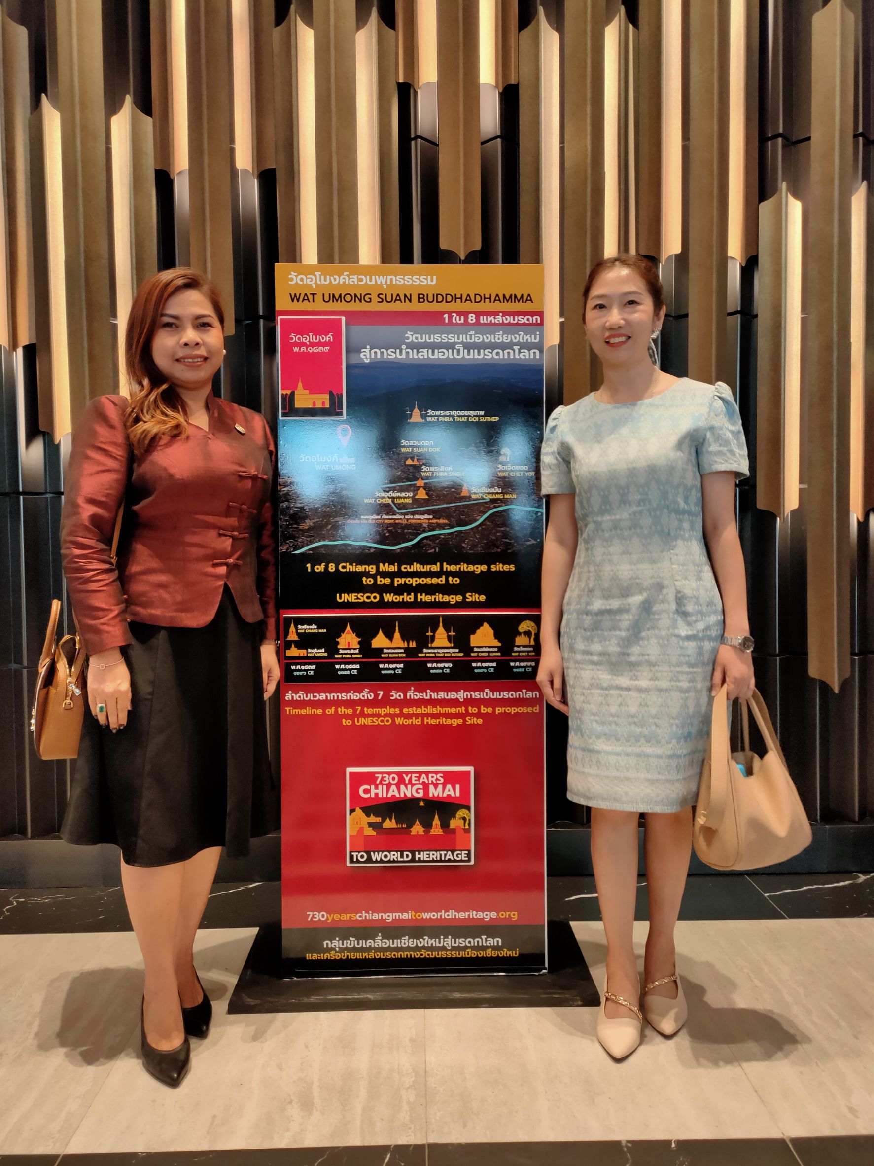 นางสาวปุณณภา สุขสาคร ผู้อำนวยการหอสมุดแห่งชาติรัชมังคลาภิเษก เชียงใหม่ และนางสาวพิมพา สุธัญญาวัชชัย บรรณารักษ์ชำนาญการ เข้าร่วมงานแถลงข่าวเปิดตัวโครงการขับเคลื่อนแหล่งมรดกวัฒนธรรมเมืองเชียงใหม่สู่มรดกโลก และพิธีลงนามบันทึกข้อตกลงความร่วมมือว่าด้วยการบริหารจัดการ “อนุสรณ์สถาน แหล่งต่างๆ และภูมิทัศน์วัฒนธรรมของเชียงใหม่ นครหลวงล้านนา”
