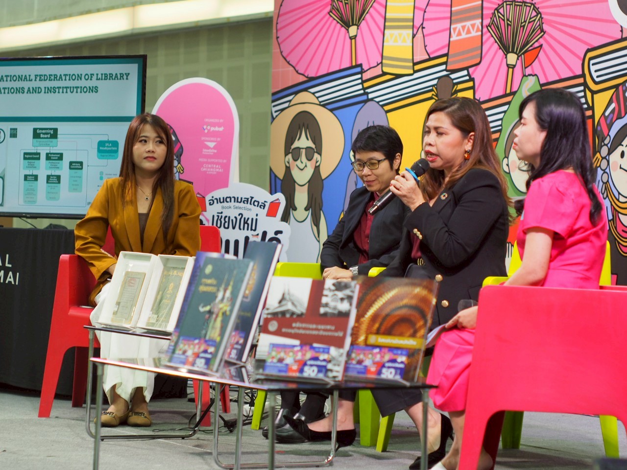 หอสมุดแห่งชาติรัชมังคลาภิเษก เชียงใหม่ ร่วมเสวนา หัวข้อ "หอสมุดแห่งชาติแหล่งมรดกศิลปวัฒนธรรมและการพัฒนาที่ยั่งยืน : National Library for Culture & Sustainable Development" ในงานเชียงใหม่บุ๊คแฟร์ครั้งที่ ๑๐