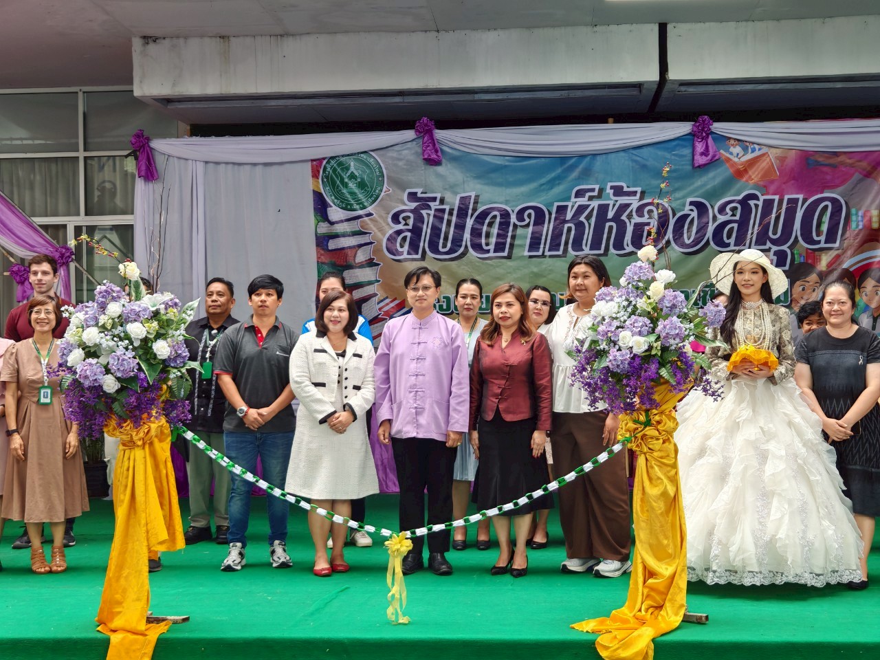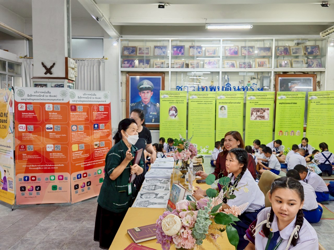 นางสาวปุณณภา สุขสาคร ผู้อำนวยการหอสมุดแห่งชาติรัชมังคลาภิเษก เชียงใหม่ พร้อมด้วยบุคลากร เข้าร่วมพิธีเปิดโครงการสัปดาห์ห้องสมุด (การเรียนรู้ด้วยตนเองสู่เส้นทางแห่งวัฒนธรรมไทย) พร้อมทั้งจัดกิจกรรมส่งเสริมการเรียนรู้ Mask ม่วนใจ๋ และร่วมจัดแสดงแสดงนิทรรศการส่งเสริมการอ่าน ณ ลานกิจกรรมอาคารนเรศ โรงเรียนเทพบดินทร์วิทยาเชียงใหม่