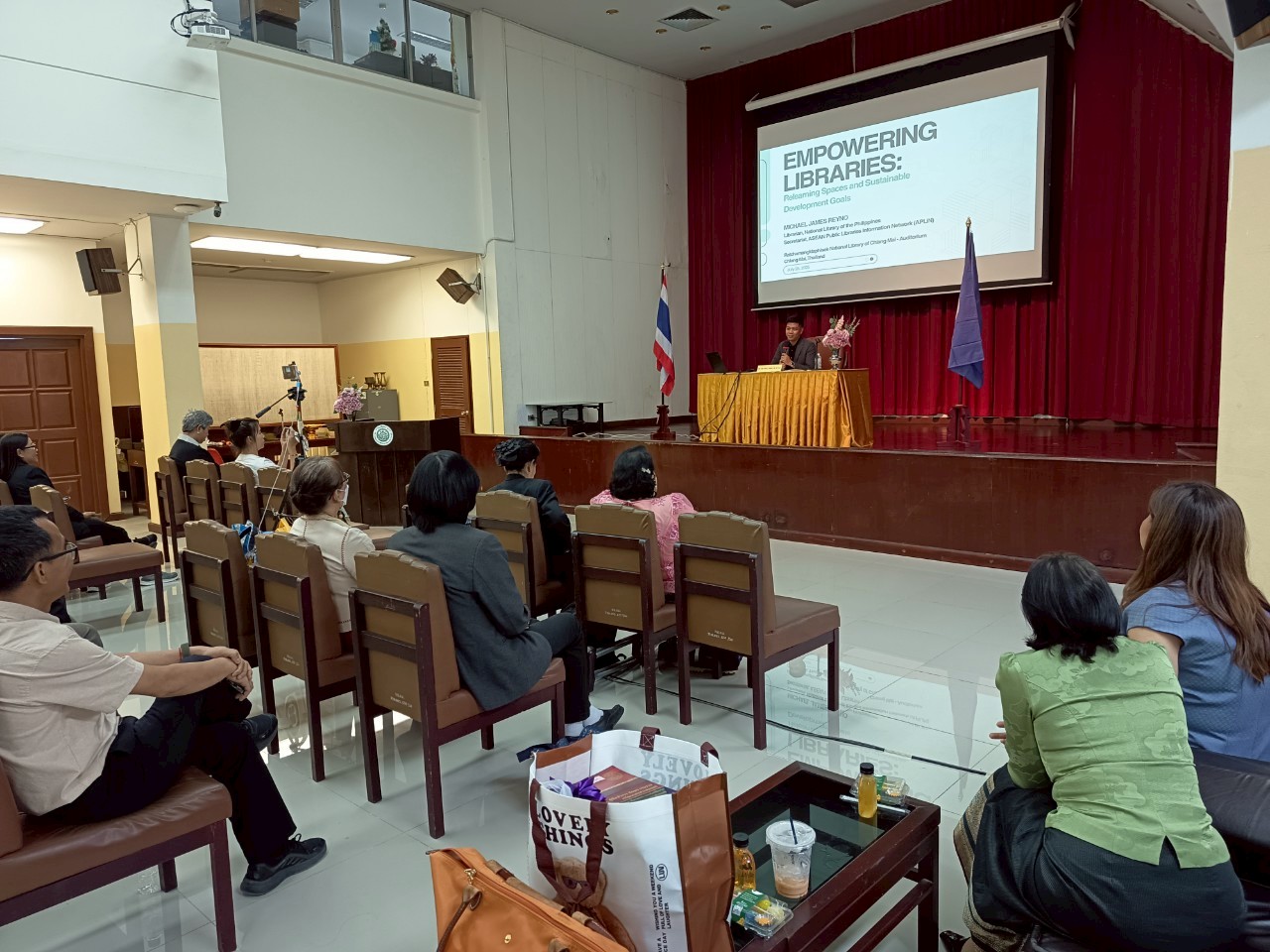 หอสมุดแห่งชาติรัชมังคลาภิเษก เชียงใหม่ ร่วมกับ สำนักหอสมุดแห่งชาติ เครือข่ายห้องสมุดประชาชนอาเซียน (APLiN) และชมรมบรรณารักษ์และนักสารสนเทศนานาชาติ (ILIS) ภายใต้สมาคมห้องสมุดแห่งประเทศไทย ดำเนินการจัดโครงการพัฒนาและส่งเสริมการเรียนรู้ ของหอสมุดแห่งชาติรัชมังคลาภิเษก เชียงใหม่ ประจำปีงบประมาณ ๒๕๖๘ หัวข้อ “ห้องสมุดไทยสู่พื้นที่การเรียนรู้ใหม่ (Relearn Space) ด้านมรดกศิลปวัฒนธรรมและการพัฒนาที่ยั่งยืน”