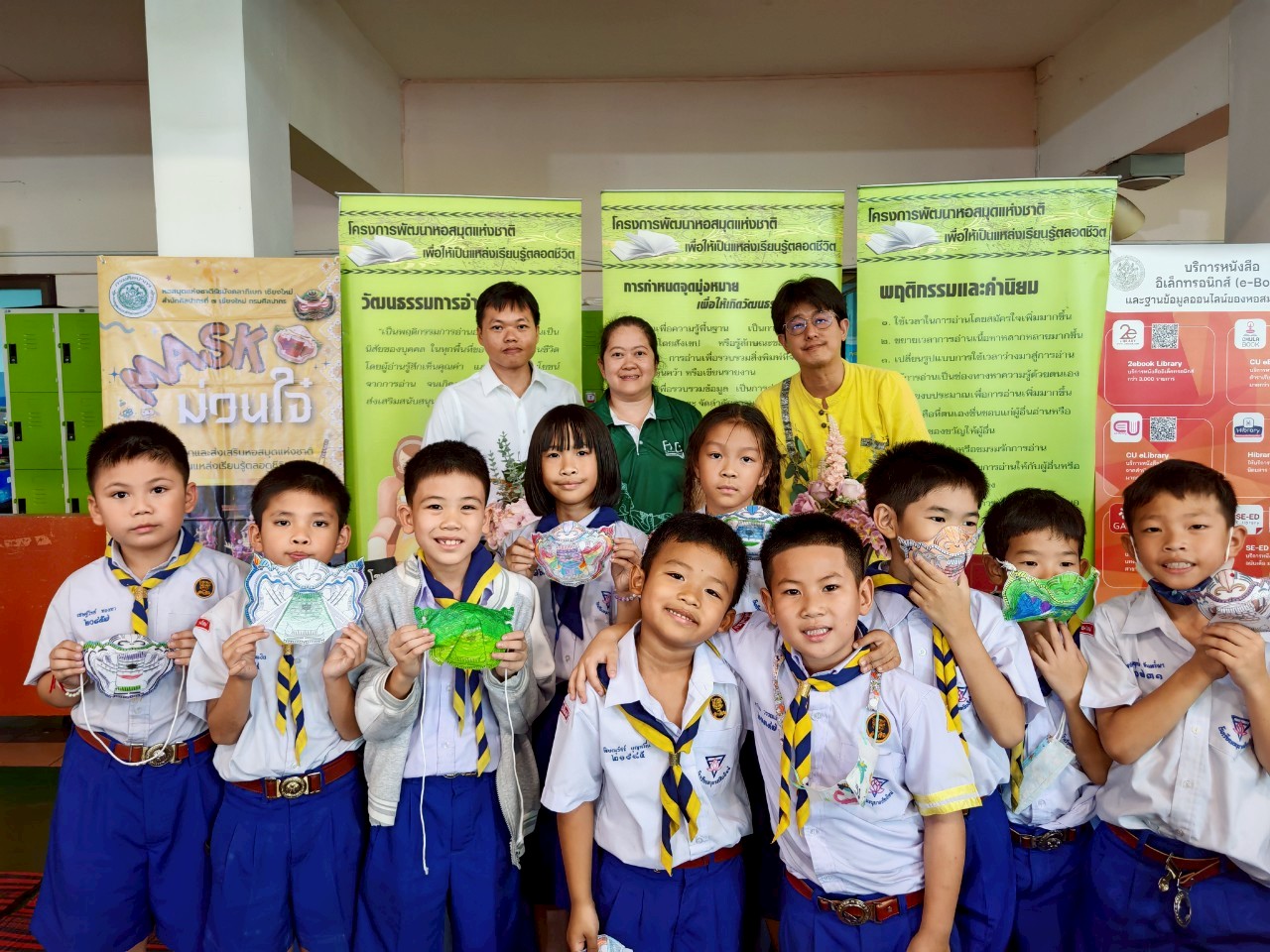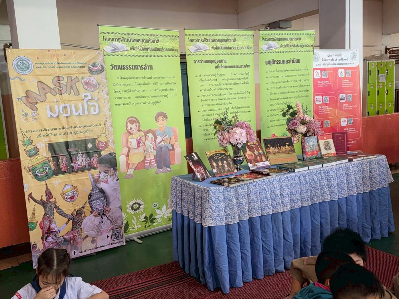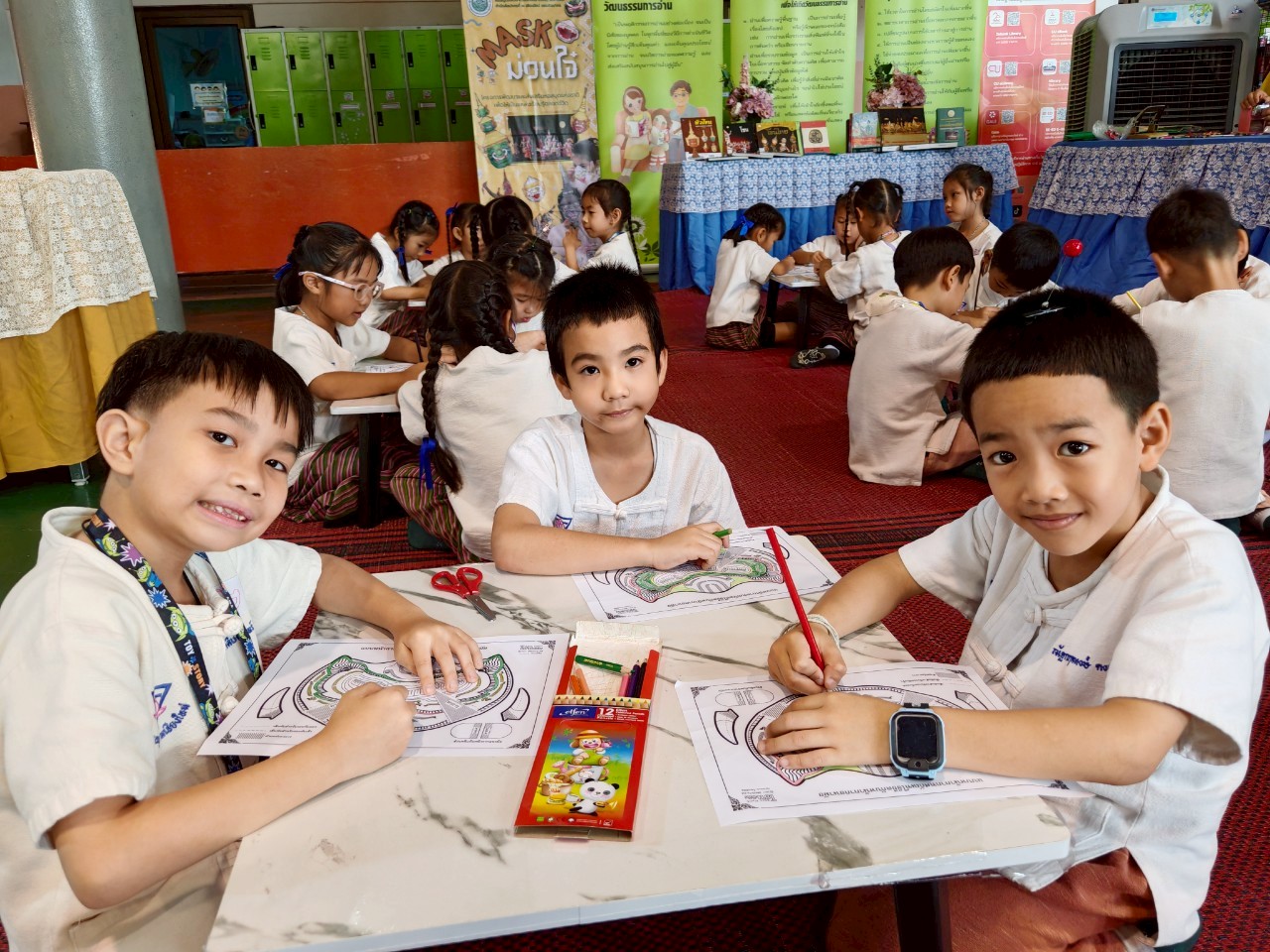 วันพุธที่ ๓๐ กรกฎาคม ๒๕๖๘ นางสาวปุณณภา สุขสาคร ผู้อำนวยการหอสมุดแห่งชาติรัชมังคลาภิเษก เชียงใหม่ พร้อมด้วยบุคลากร เข้าร่วมพิธีเปิดงาน “ห้องสมุดสุดสุขสันต์ อัศจรรย์สุนทรภู่ ชาติเชิดชูภาษาไทย” ในการนี้บุคลากรหอสมุดแห่งชาติรัชมังคลาภิเษก เชียงใหม่ เข้าร่วมจัดกิจกรรมส่งเสริมการเรียนรู้ Mask ม่วนใจ๋ ระบายสีหน้ากากตัวละครจากเรื่องรามเกียรติ์ ให้แก่นักเรียนระดับชั้นปฐมวัย และระดับประถมศึกษา ระหว่างวันที่ ๓๐ กรกฎาคม – ๑ สิงหาคม ๒๕๖๘ ณ ลานโดมความรู้ โรงเรียนอนุบาลเชียงใหม่ ตำบลพระสิงห์ อำเภอเมืองเชียงใหม่ จังหวัดเชียงใหม่