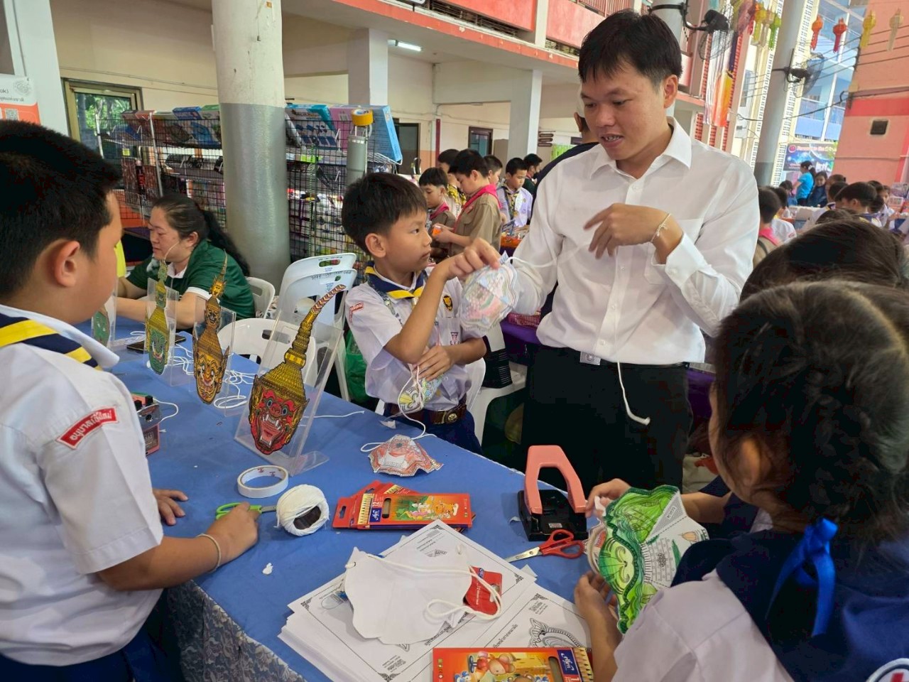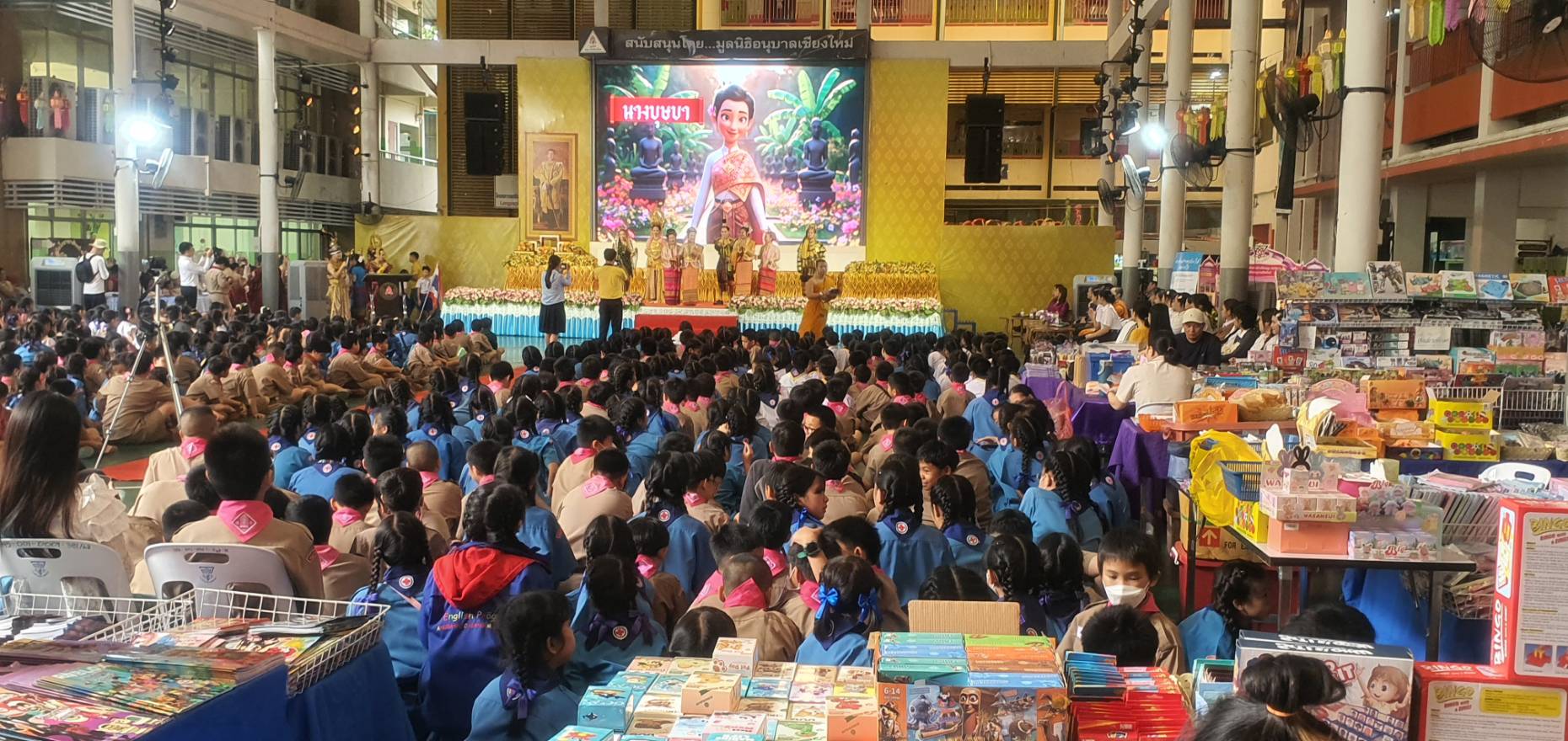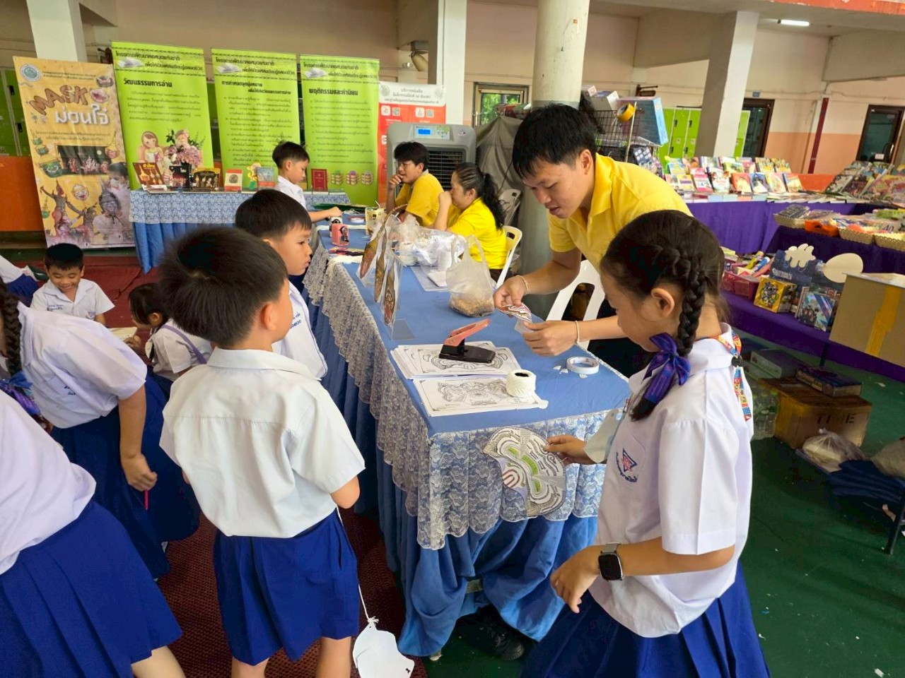 วันพุธที่ ๓๐ กรกฎาคม ๒๕๖๘ นางสาวปุณณภา สุขสาคร ผู้อำนวยการหอสมุดแห่งชาติรัชมังคลาภิเษก เชียงใหม่ พร้อมด้วยบุคลากร เข้าร่วมพิธีเปิดงาน “ห้องสมุดสุดสุขสันต์ อัศจรรย์สุนทรภู่ ชาติเชิดชูภาษาไทย” ในการนี้บุคลากรหอสมุดแห่งชาติรัชมังคลาภิเษก เชียงใหม่ เข้าร่วมจัดกิจกรรมส่งเสริมการเรียนรู้ Mask ม่วนใจ๋ ระบายสีหน้ากากตัวละครจากเรื่องรามเกียรติ์ ให้แก่นักเรียนระดับชั้นปฐมวัย และระดับประถมศึกษา ระหว่างวันที่ ๓๐ กรกฎาคม – ๑ สิงหาคม ๒๕๖๘ ณ ลานโดมความรู้ โรงเรียนอนุบาลเชียงใหม่ ตำบลพระสิงห์ อำเภอเมืองเชียงใหม่ จังหวัดเชียงใหม่
