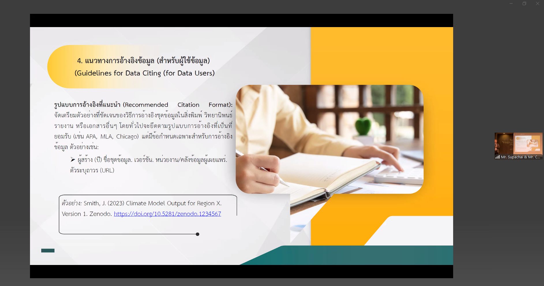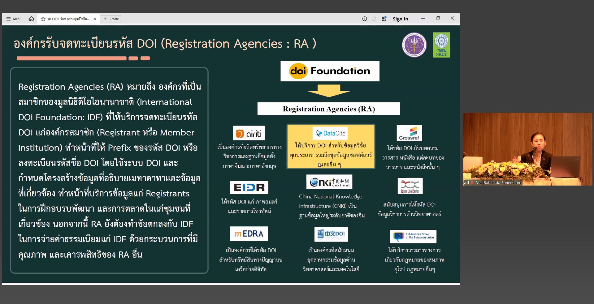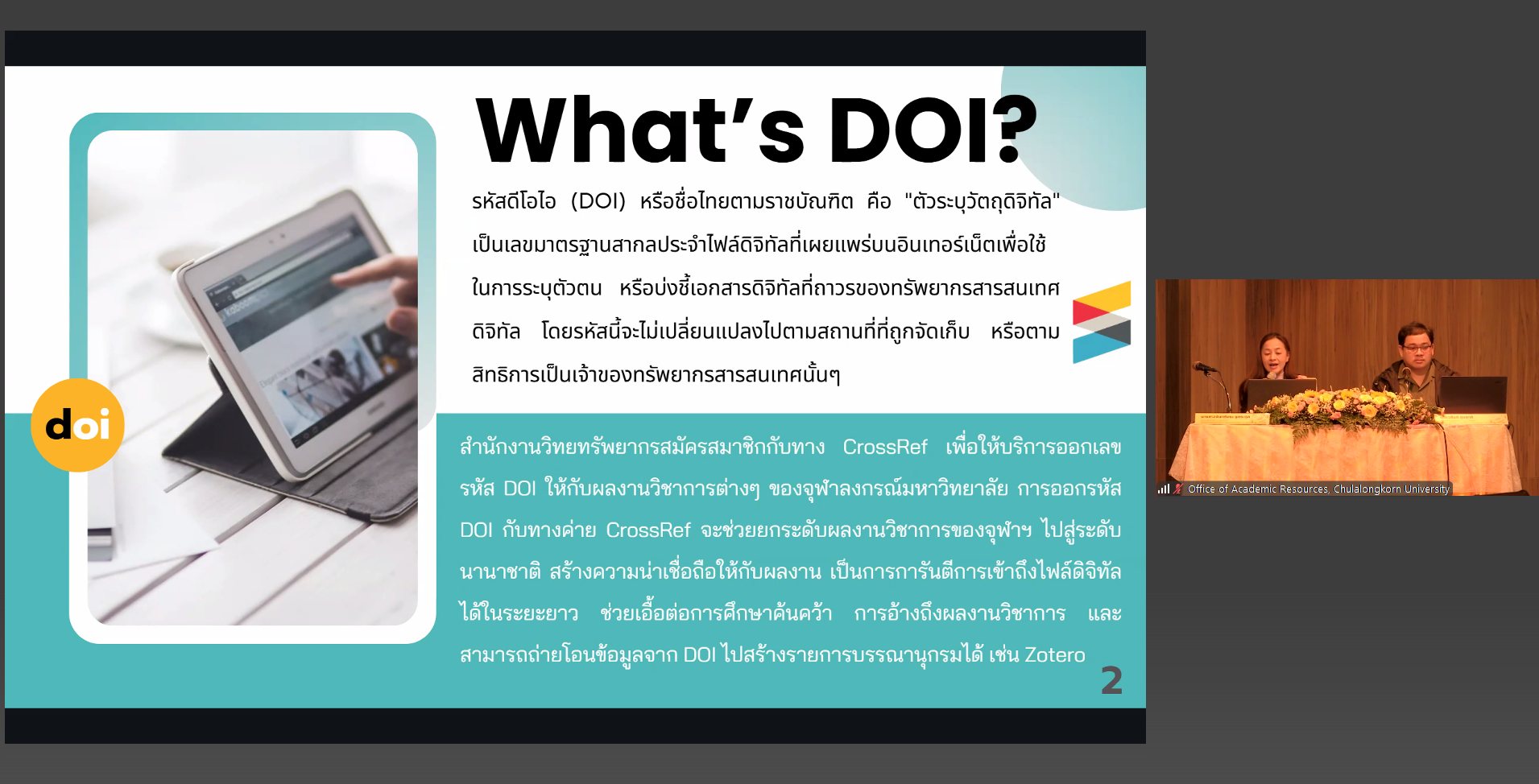 บุคลากรหอสมุดแห่งชาติรัชมังคลาภิเษก เชียงใหม่ เข้าร่วมการอบรมพัฒนาศักยภาพบุคลากรเรื่อง “มาตรฐานรหัสทรัพยากรสารสนเทศดิจิทัล (Digital Object Identifier : DOI) กับการจัดการมรดกภูมิปัญญาของหอสมุดแห่งชาติ” ผ่านโปรแกรม Zoom Meeting