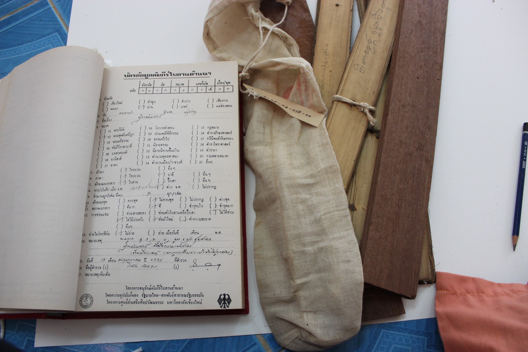 - ดำเนินการอนุรักษ์เอกสารโบราณของวัดหนองบัว ตำบลป่าคา อำเภอท่าวังผา จังหวัดน่าน ด้วยการทำความสะอาด กำจัดเชื้อรา กำจัดแมลง เปลี่ยนสายสนอง