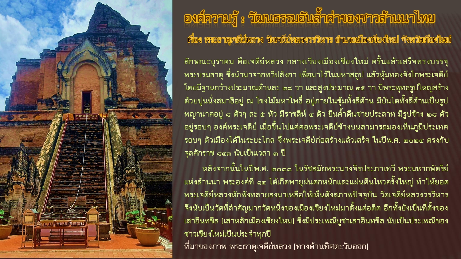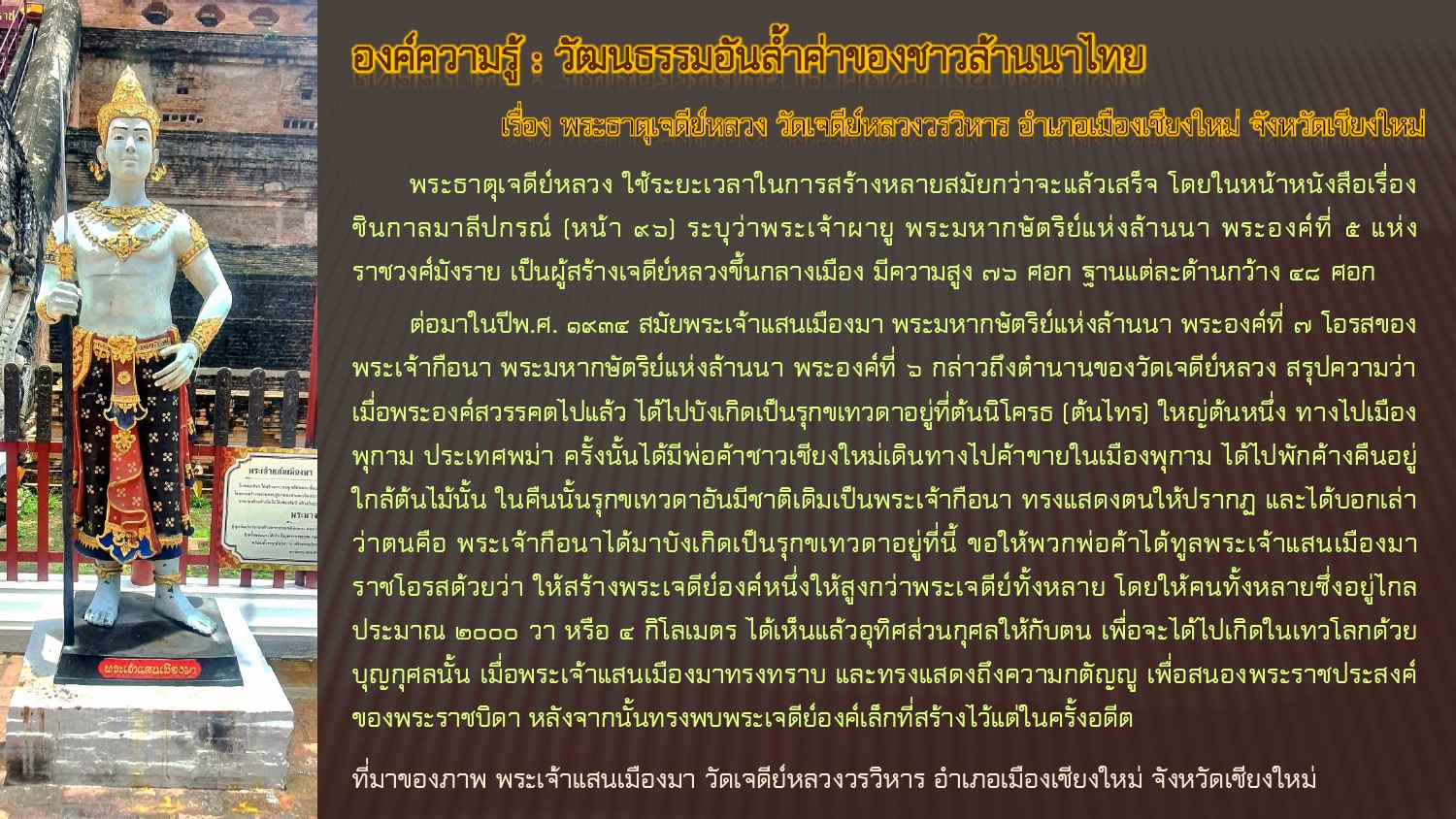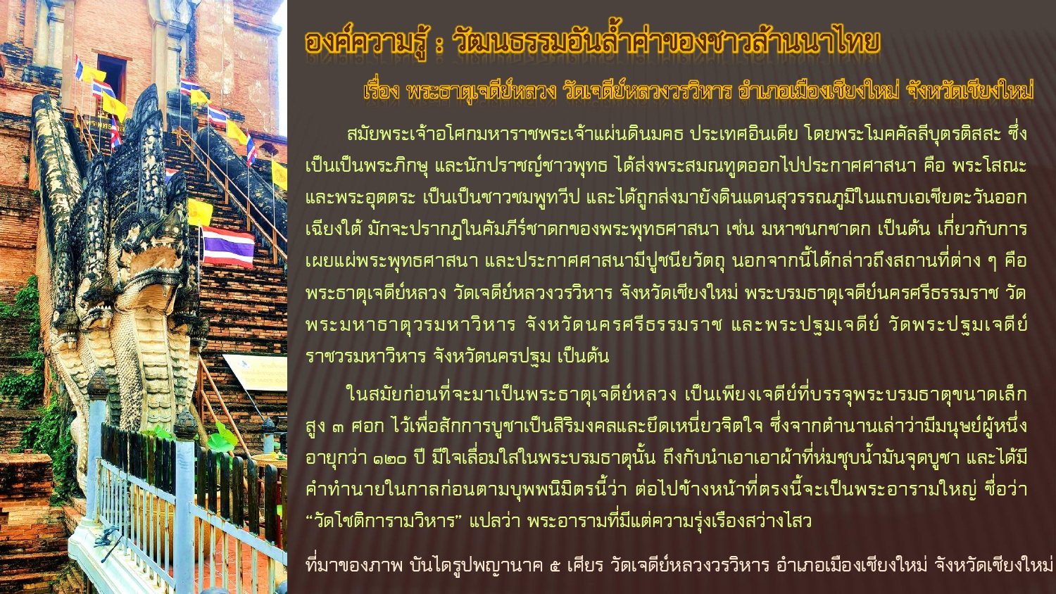 เรียบเรียงโดย : นายธีรบูลย์ มิตรมโนชัย นักวิชาการโสตทัศนศึกษาชำนาญการ หอสมุดแห่งชาติรัชมังคลาภิเษก เชียงใหม่ สำนักศิลปากรที่ ๗ เชียงใหม่ กรมศิลปากร กระทรวงวัฒนธรรม