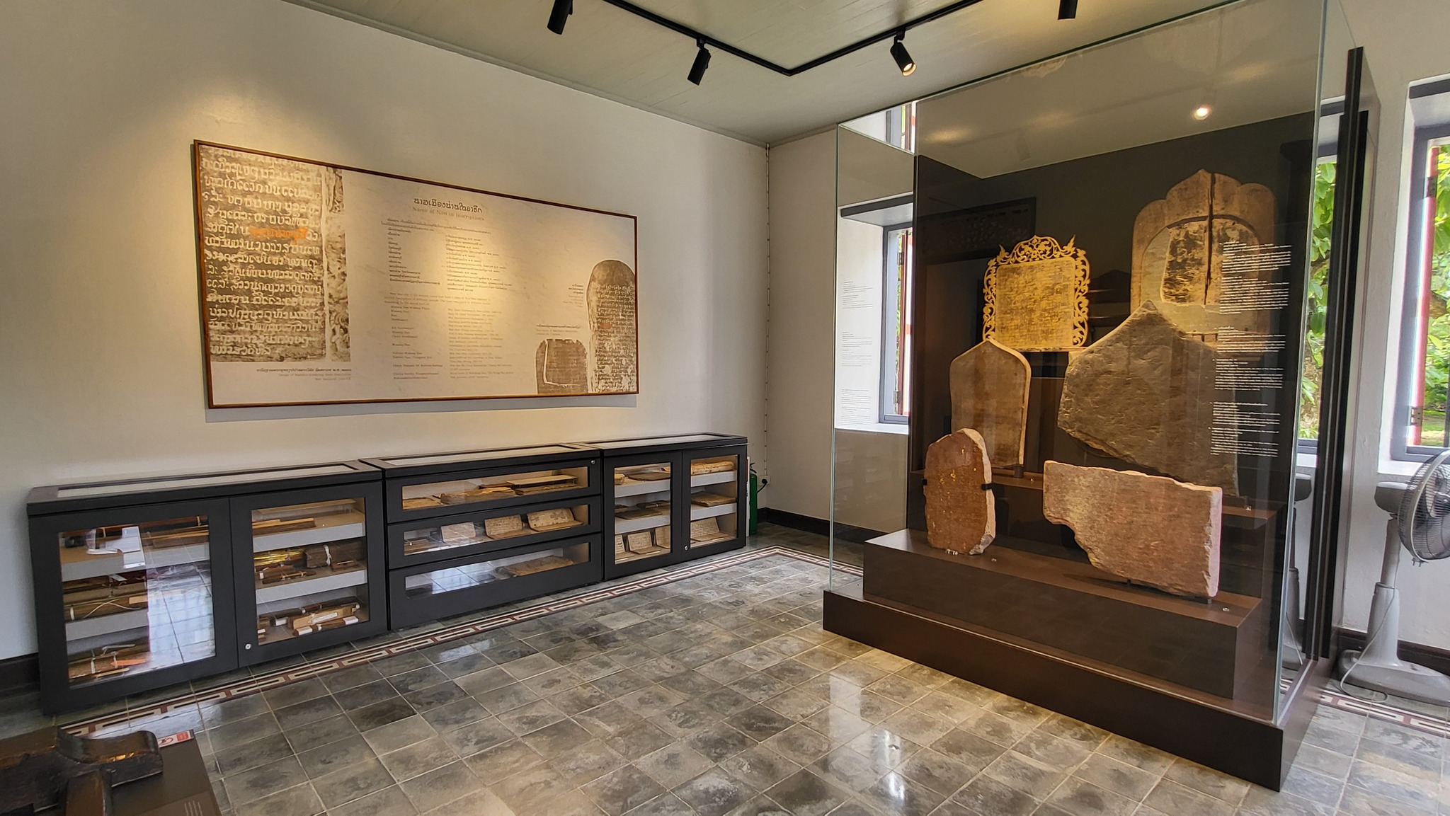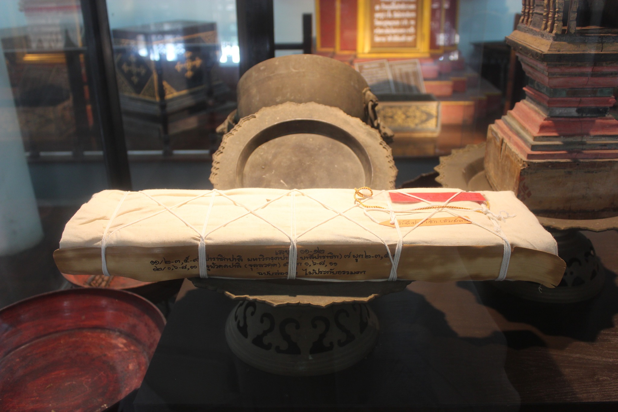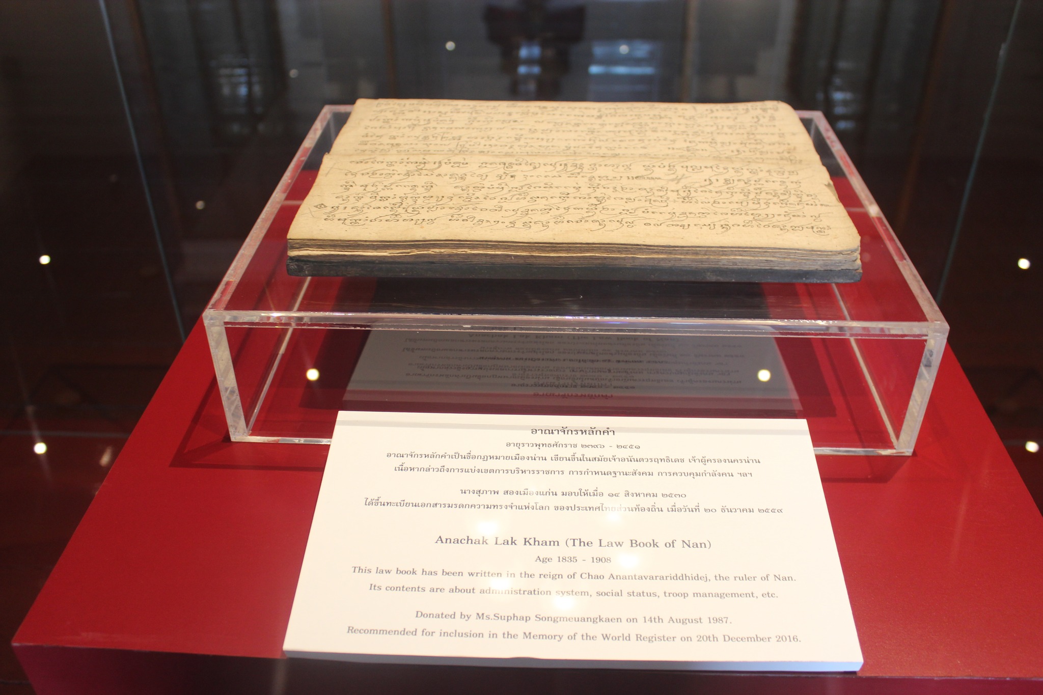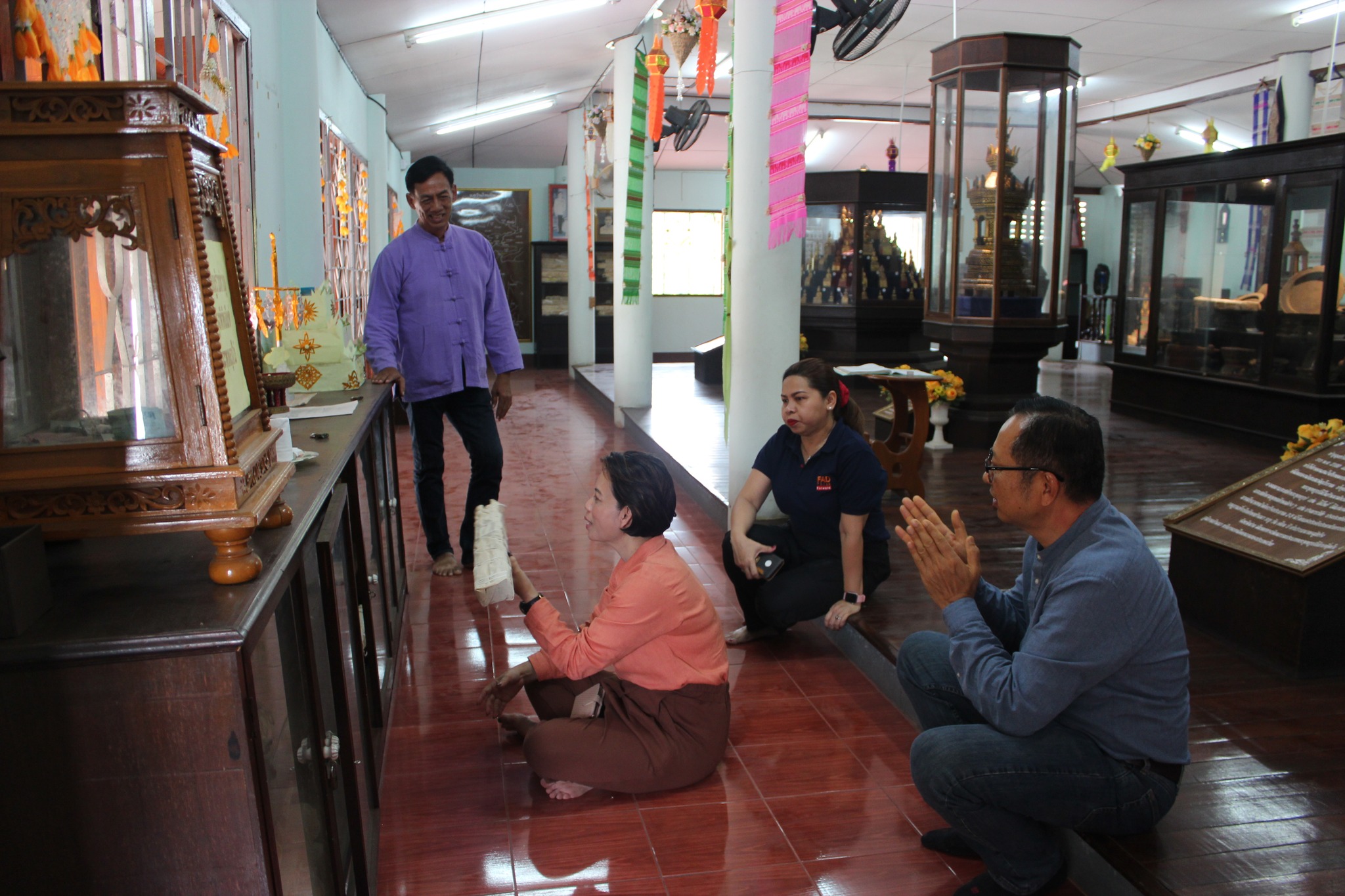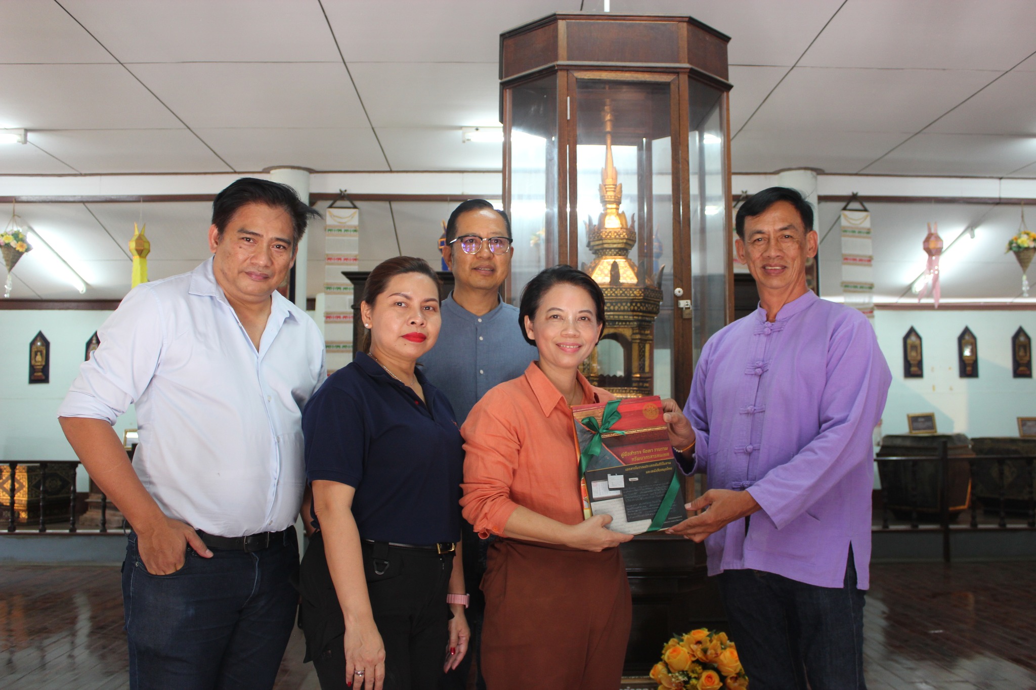 วันเสาร์ที่ ๑๓ กันยายน ๒๕๖๘ (คณะสำรวจลงพื้นที่เป็นวันที่สี่) สำนักศิลปากรที่ ๗ เชียงใหม่ ร่วมกับสำนักหอสมุดแห่งชาติ โดย หอสมุดแห่งชาติรัชมังคลาภิเษก เชียงใหม่พิพิธภัณฑสถานแห่งชาติ น่าน กลุ่มหนังสือตัวเขียนและจารึก และกลุ่มบริการทรัพยากรสารสนเทศ โดย นางสาวบุบผา ชูชาติ ผู้อำนวยการสำนักหอสมุดแห่งชาติ นางสาวปุณณภา สุขสาคร ผู้อำนวยการหอสมุดแห่งชาติรัชมังคลาภิเษก เชียงใหม่ นายประสิทธิชัย เลิศรัตนเคหกาล ผู้อำนวยการกลุ่มบริการทรัพยากรสารสนเทศ นายวัฒนา พึ่งชื่น นักภาษาโบราณ ชำนาญการพิเศษ กลุ่มหนังสือตัวเขียนและจารึก พร้อมด้วยเจ้าหน้าที่ ร่วมลงพื้นที่เดินทางสำรวจเอกสารโบราณ ณ วัดน้ำล้อม ตำบลในเวียง อำเภอเมือง จังหวัดน่าน และเข้าเยี่ยมชมแหล่งเรียนรู้มรดกศิลปวัฒนธรรมของกรมศิลปากร ณ พิพิธภัณฑสถานแห่งชาติ น่าน ตำบลในเวียง อำเภอเมือง จังหวัดน่าน คณะสำรวจได้ประเมินเอกสารโบราณที่ได้รับการสำรวจแล้ว พบว่า เอกสารโบราณไม่ได้รับความเสียหายจากน้ำท่วมที่ผ่านมา เนื่องจากเก็บรักษาไว้บนชั้น ๒ ของอาคาร ซึ่งเป็นอาคารสูง น้ำท่วมไม่ถึง และมีการจัดเก็บอย่างเป็นระบบในตู้กระจก ดำเนินการลงทะเบียน คัดแยกตามหมวดหมู่เรียบร้อยแล้ว โดยนักภาษาโบราณ สำนักหอสมุดแห่งชาติ กรมศิลปากร ร่วมกับผู้เชี่ยวชาญในพื้นที่ ซึ่งได้จัดแสดงเอกสารโบราณชิ้นสำคัญ อายุ ๔๐๐ กว่าปี ร่วมกับโบราณวัตถุของวัด นอกจากนี้ คณะยังร่วมหารือแนวทางในการอนุรักษ์เอกสารโบราณในอนาคต เพื่อสร้างเครือข่ายงานอนุรักษ์เอกสารโบราณในพื้นที่ร่วมกับวัด ชุมชน นักวิชาการ และผู้เกี่ยวข้องในพื้นที่ และมอบวัสดุที่จำเป็นในการอนุรักษ์เอกสารโบราณไว้สำหรับการอนุรักษ์ด้วยตนเองจำนวนหนึ่ง