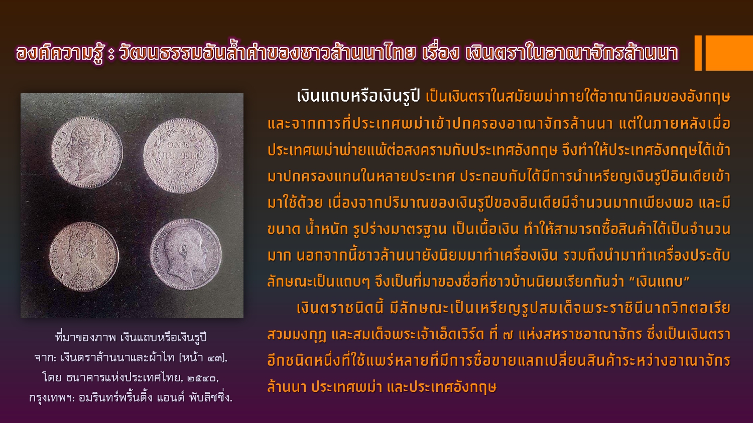 พิพิธภัณฑ์ธนารักษ์ จังหวัดเชียงใหม่. [ออนไลน์]. สืบค้นเมื่อ ๑๖ กันยายน ๒๕๖๘, จาก: https://emuseum-chiangmai.treasury.go.th/%20about-us