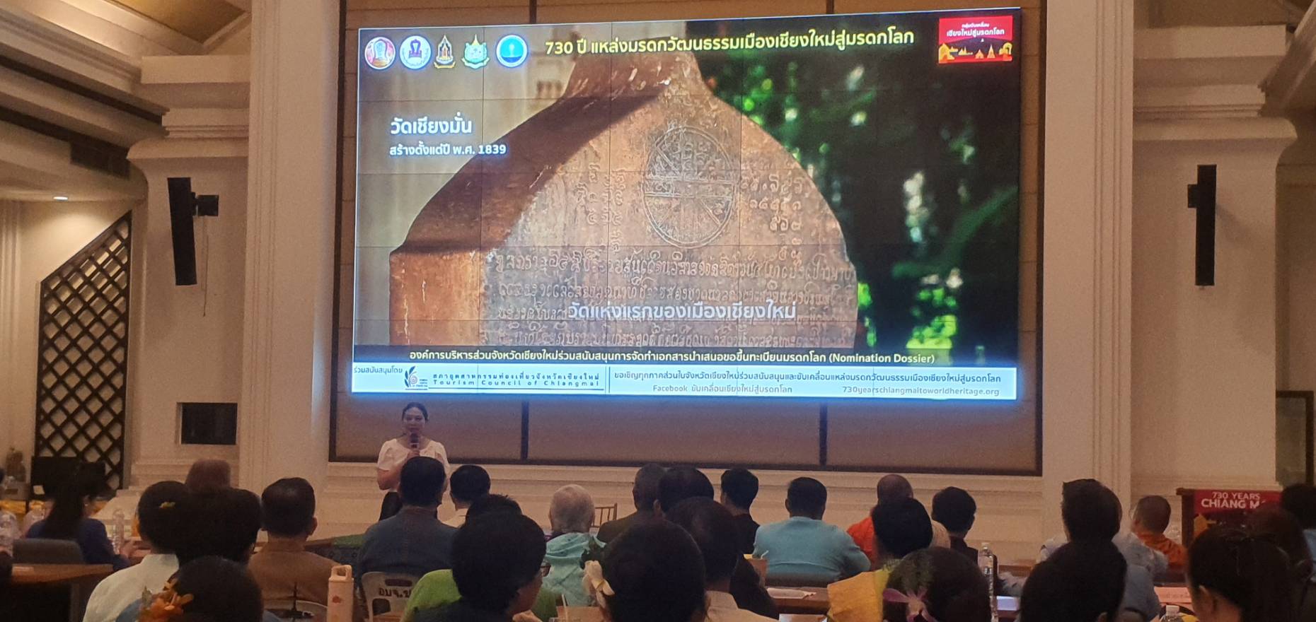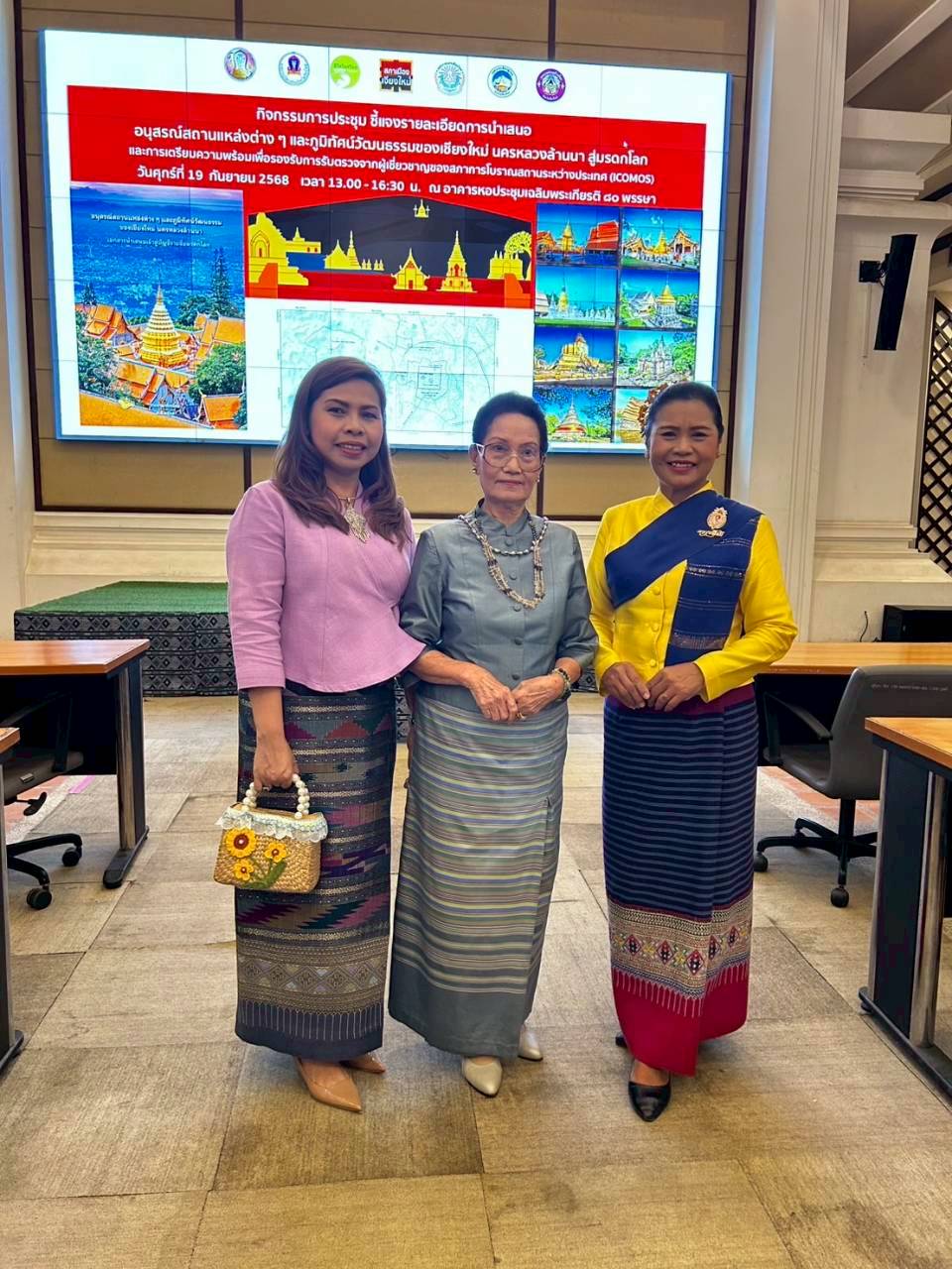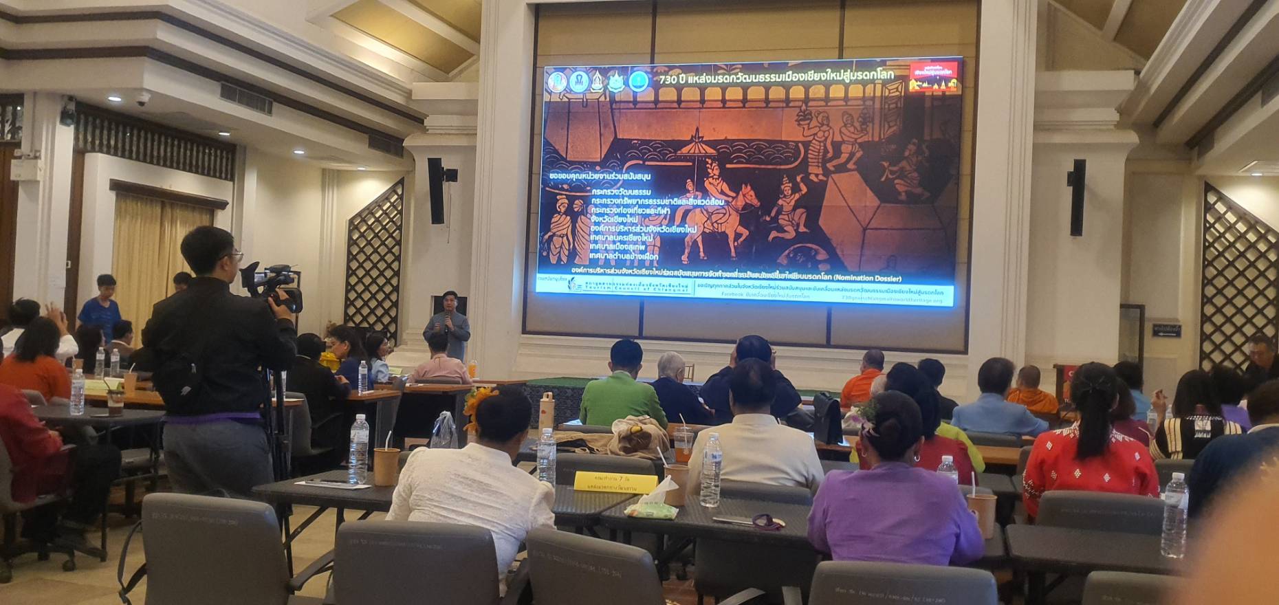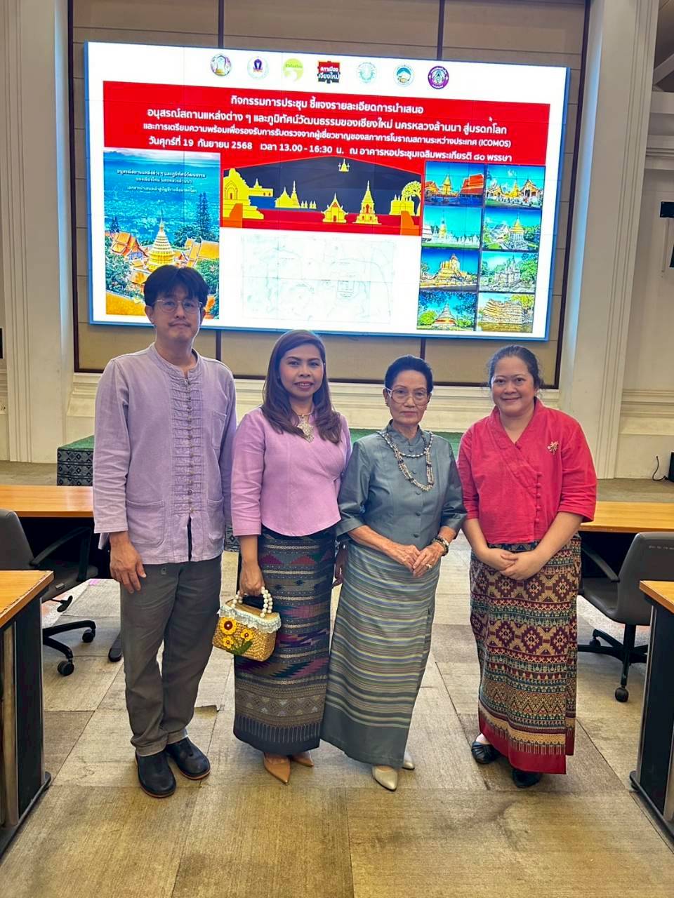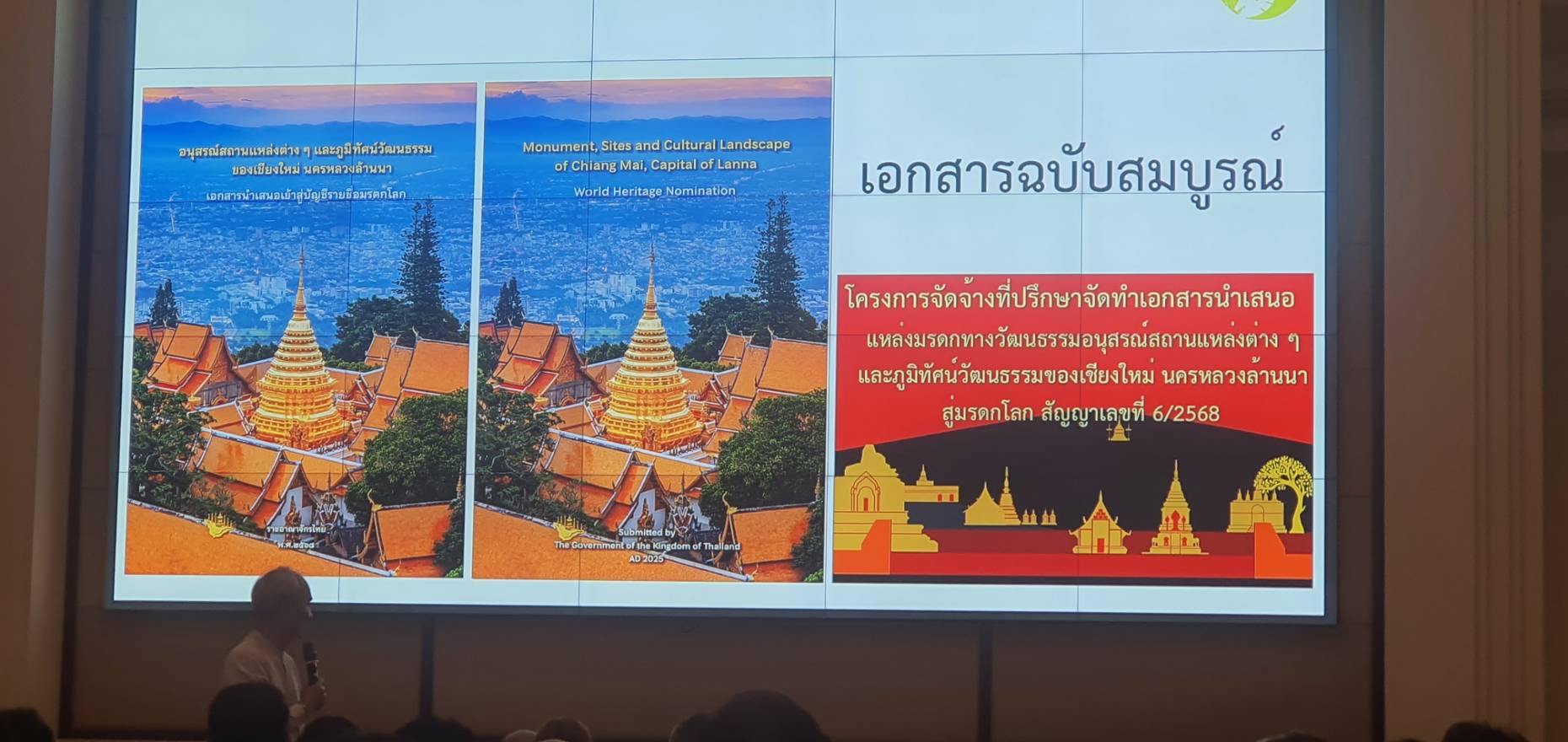 วันศุกร์ที่ ๑๙ กันยายน ๒๕๖๘ เวลา ๑๒.๐๐ - ๑๖.๓๐ น. นางสาวปุณณภา สุขสาคร ผู้อำนวยการหอสมุดแห่งชาติรัชมังคลาภิเษก เชียงใหม่ นางวรรณภา ปะวิโน บรรณารักษ์ชำนาญการ และนายธีรบูลย์ มิตรมโนชัย นักวิชาการโสตทัศนศึกษาชำนาญการ เข้าร่วมรับฟังรายละเอียดการนำเสนออนุสรณ์สถานและภูมิทัศน์วัฒนธรรมของเชียงใหม่ สู่มรดกโลก และความคืบหน้าเตรียมความพร้อม เพื่อรองรับการตรวจ จากผู้เชี่ยวชาญของสภาการโบราณสถานระหว่างประเทศ (ICOMOS) โดยมี นายพิชัย เลิศพงศ์อดิศร นายกองค์การบริหารส่วนจังหวัดเชียงใหม่ เป็นประธานการประชุม นายบวรเวท รุ่งรุจี ประธานคณะทำงานเร่งรัดการขับเคลื่อนนำเสนอแหล่งมรดกทางวัฒนธรรมเมืองเชียงใหม่ให้เป็นมรดกโลก อดีตอธิบดีกรมศิลปากร และเป็นนายกสมาคมอิโคโมสไทย พร้อมคณะทำงานเร่งรัดฯ เป็นผู้ชี้แจงความหน้าดังกล่าว ซึ่งแหล่งมรดกเชียงใหม่ที่จะขอขึ้นทะเบียนมรดกโลกประกอบด้วย วัดสำคัญ ๗ แห่ง คือ วัดเชียงมั่น, วัดอุโมงค์ (สวนพุทธธรรม), วัดพระสิงห์วรมหาวิหาร, วัดสวนดอก (วัดบุปผาราม), วัดพระธาตุดอยสุเทพราชวรวิหาร, วัดเจดีย์หลวงวรวิหาร และวัดเจ็ดยอด (วัดโพธารามหาวิหาร) รวมถึงแนวคูเมือง ๔ แจ่ง กำแพงเมือง และประตูเมืองเชียงใหม่ ๕ แห่ง ณ หอประชุมเฉลิมพระเกียรติ ๘๐ พรรษา องค์การบริหารส่วนจังหวัดเชียงใหม่ ตำบลช้างเผือก อำเภอเมือง จังหวัดเชียงใหม่