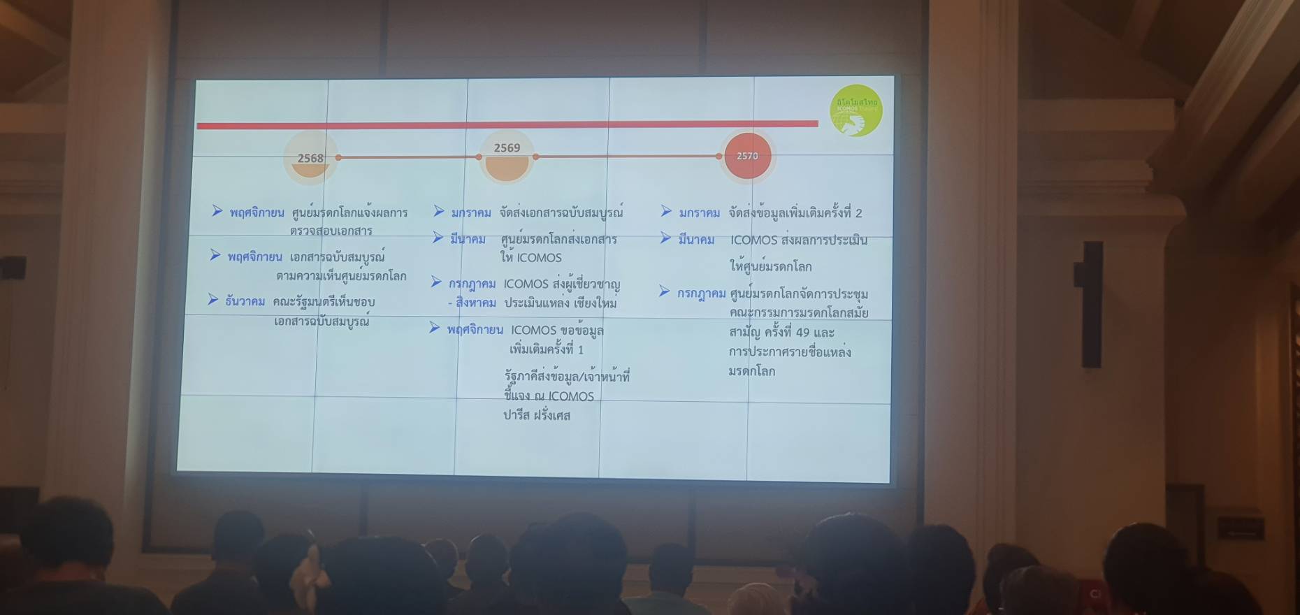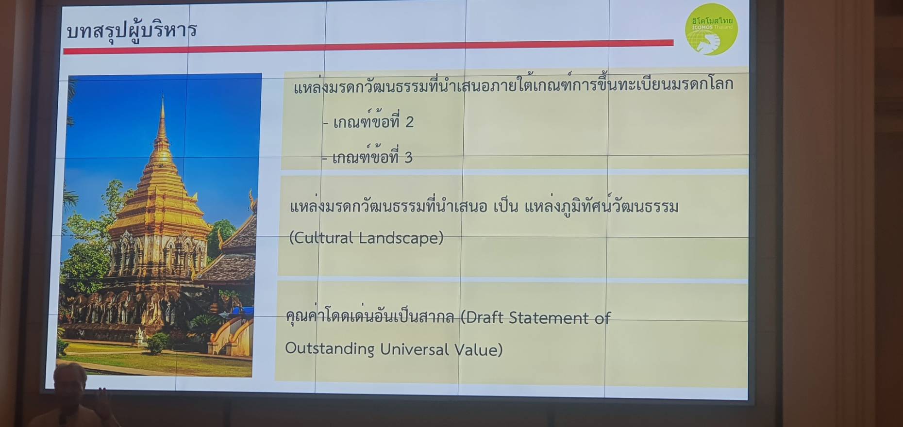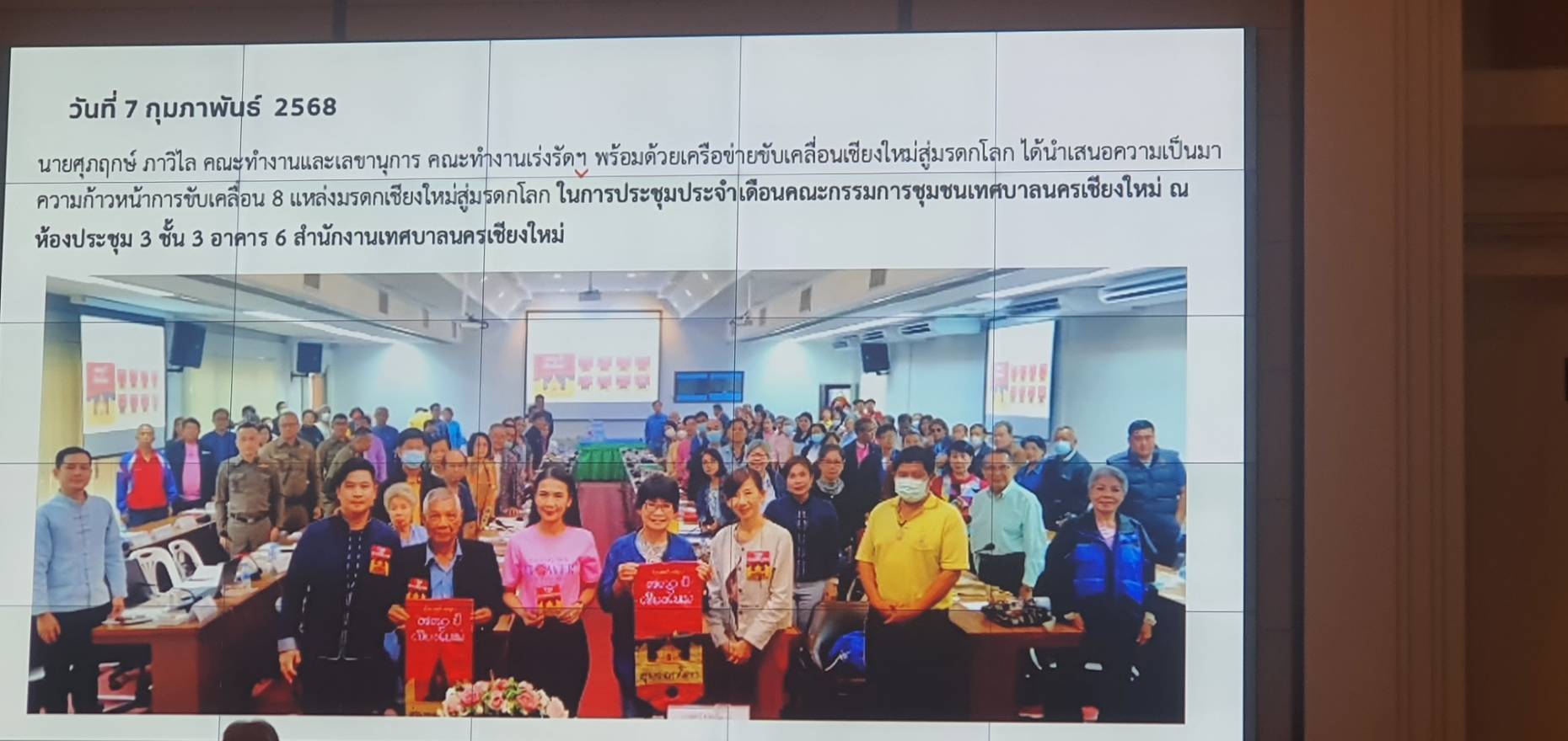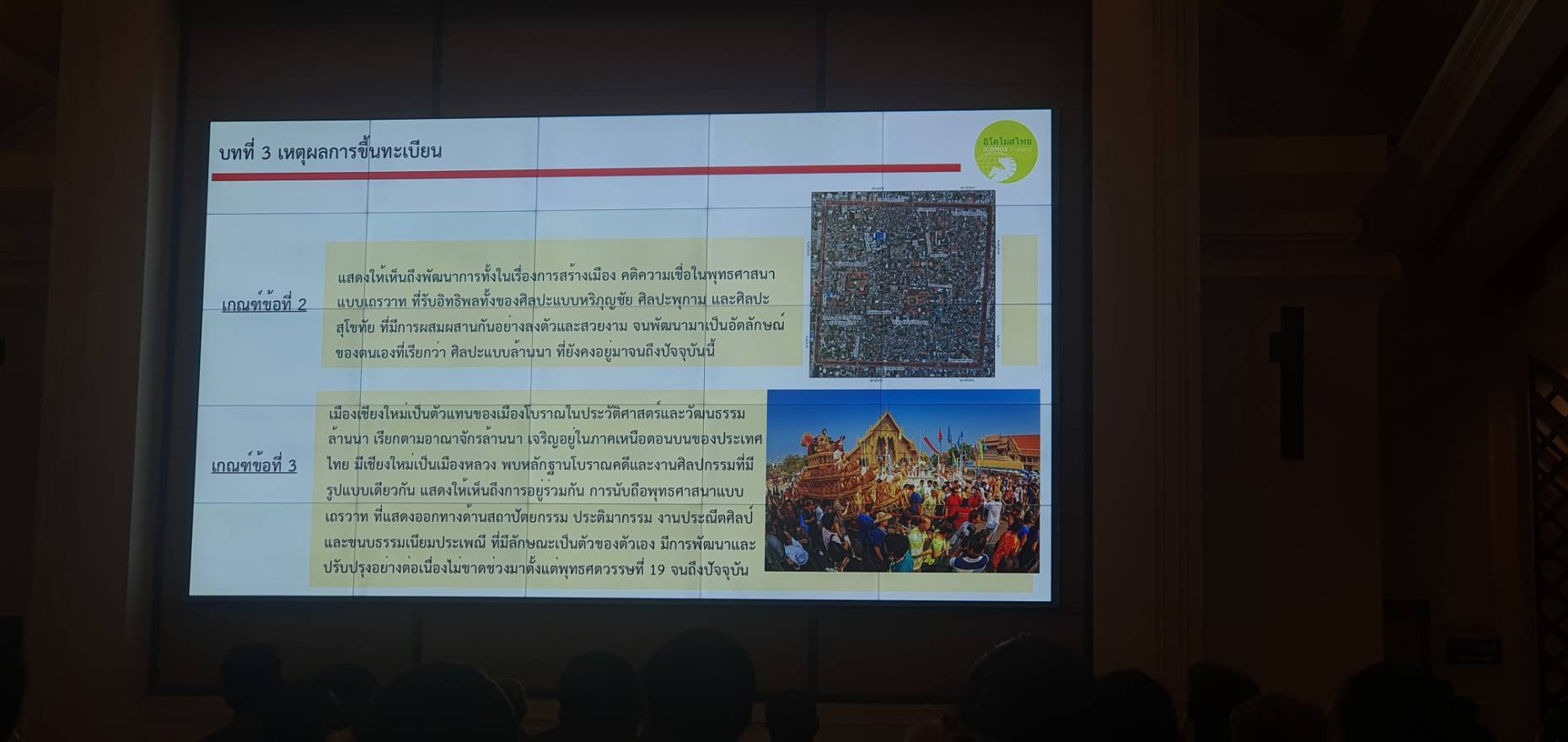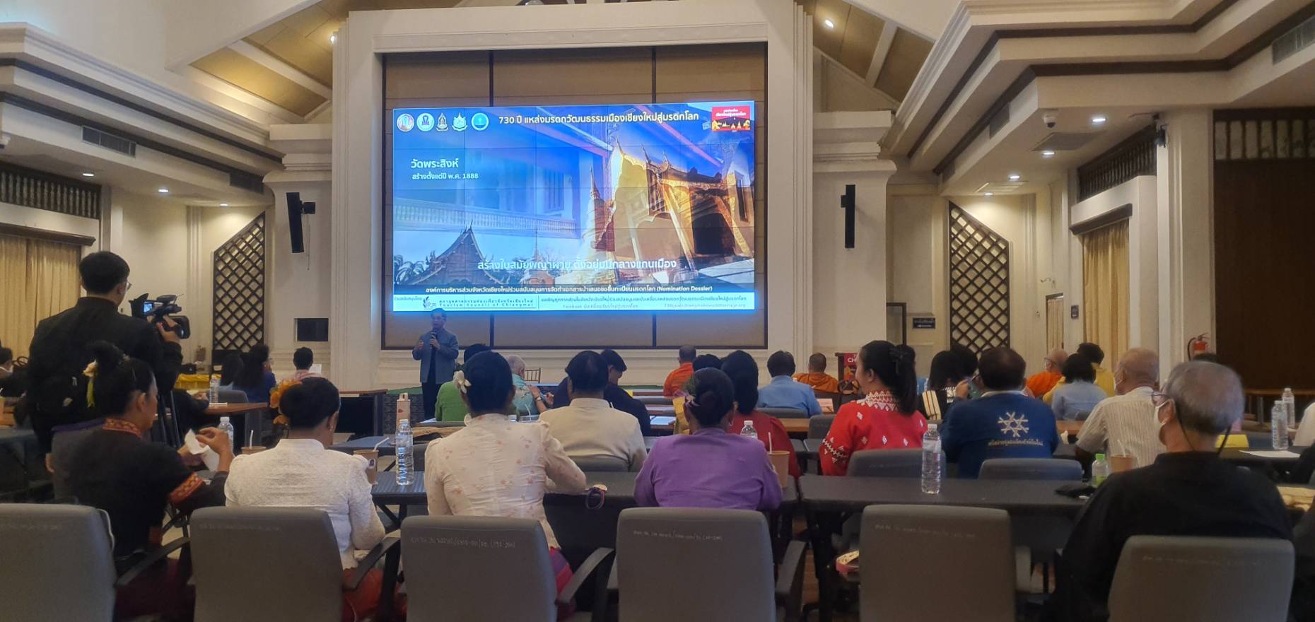 วันศุกร์ที่ ๑๙ กันยายน ๒๕๖๘ เวลา ๑๒.๐๐ - ๑๖.๓๐ น. นางสาวปุณณภา สุขสาคร ผู้อำนวยการหอสมุดแห่งชาติรัชมังคลาภิเษก เชียงใหม่ นางวรรณภา ปะวิโน บรรณารักษ์ชำนาญการ และนายธีรบูลย์ มิตรมโนชัย นักวิชาการโสตทัศนศึกษาชำนาญการ เข้าร่วมรับฟังรายละเอียดการนำเสนออนุสรณ์สถานและภูมิทัศน์วัฒนธรรมของเชียงใหม่ สู่มรดกโลก และความคืบหน้าเตรียมความพร้อม เพื่อรองรับการตรวจ จากผู้เชี่ยวชาญของสภาการโบราณสถานระหว่างประเทศ (ICOMOS) โดยมี นายพิชัย เลิศพงศ์อดิศร นายกองค์การบริหารส่วนจังหวัดเชียงใหม่ เป็นประธานการประชุม นายบวรเวท รุ่งรุจี ประธานคณะทำงานเร่งรัดการขับเคลื่อนนำเสนอแหล่งมรดกทางวัฒนธรรมเมืองเชียงใหม่ให้เป็นมรดกโลก อดีตอธิบดีกรมศิลปากร และเป็นนายกสมาคมอิโคโมสไทย พร้อมคณะทำงานเร่งรัดฯ เป็นผู้ชี้แจงความหน้าดังกล่าว ซึ่งแหล่งมรดกเชียงใหม่ที่จะขอขึ้นทะเบียนมรดกโลกประกอบด้วย วัดสำคัญ ๗ แห่ง คือ วัดเชียงมั่น, วัดอุโมงค์ (สวนพุทธธรรม), วัดพระสิงห์วรมหาวิหาร, วัดสวนดอก (วัดบุปผาราม), วัดพระธาตุดอยสุเทพราชวรวิหาร, วัดเจดีย์หลวงวรวิหาร และวัดเจ็ดยอด (วัดโพธารามหาวิหาร) รวมถึงแนวคูเมือง ๔ แจ่ง กำแพงเมือง และประตูเมืองเชียงใหม่ ๕ แห่ง ณ หอประชุมเฉลิมพระเกียรติ ๘๐ พรรษา องค์การบริหารส่วนจังหวัดเชียงใหม่ ตำบลช้างเผือก อำเภอเมือง จังหวัดเชียงใหม่