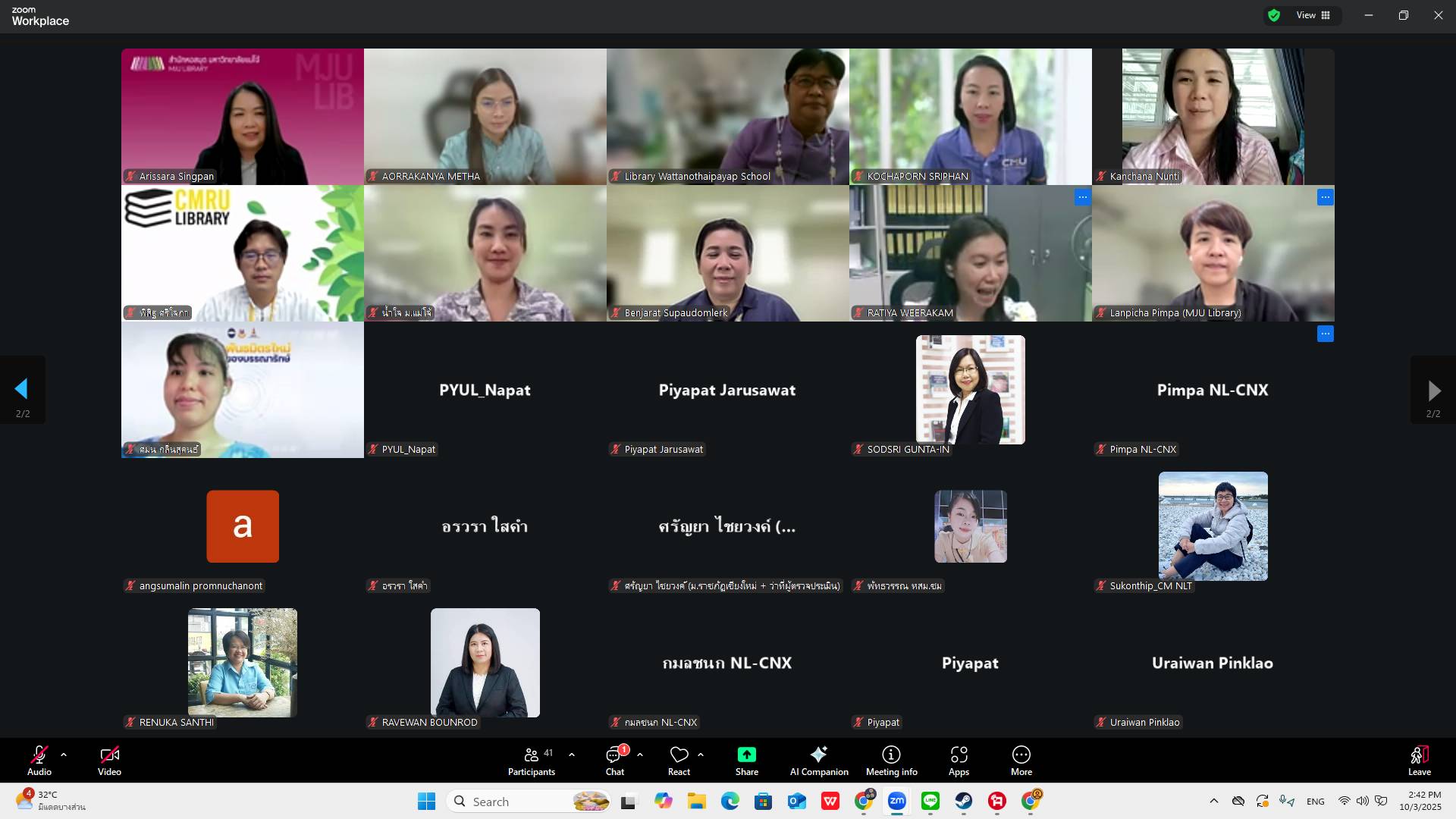 ผู้อำนวยการหอสมุดแห่งชาติรัชมังคลาภิเษก เชียงใหม่ และบุคลากรเข้าร่วมประชุมกรรมการบริหารชมรมห้องสมุดเชียงใหม่ ครั้งที่ ๑/๒๕๖๘ ผ่านระบบออนไลน์ Zoom Meeting