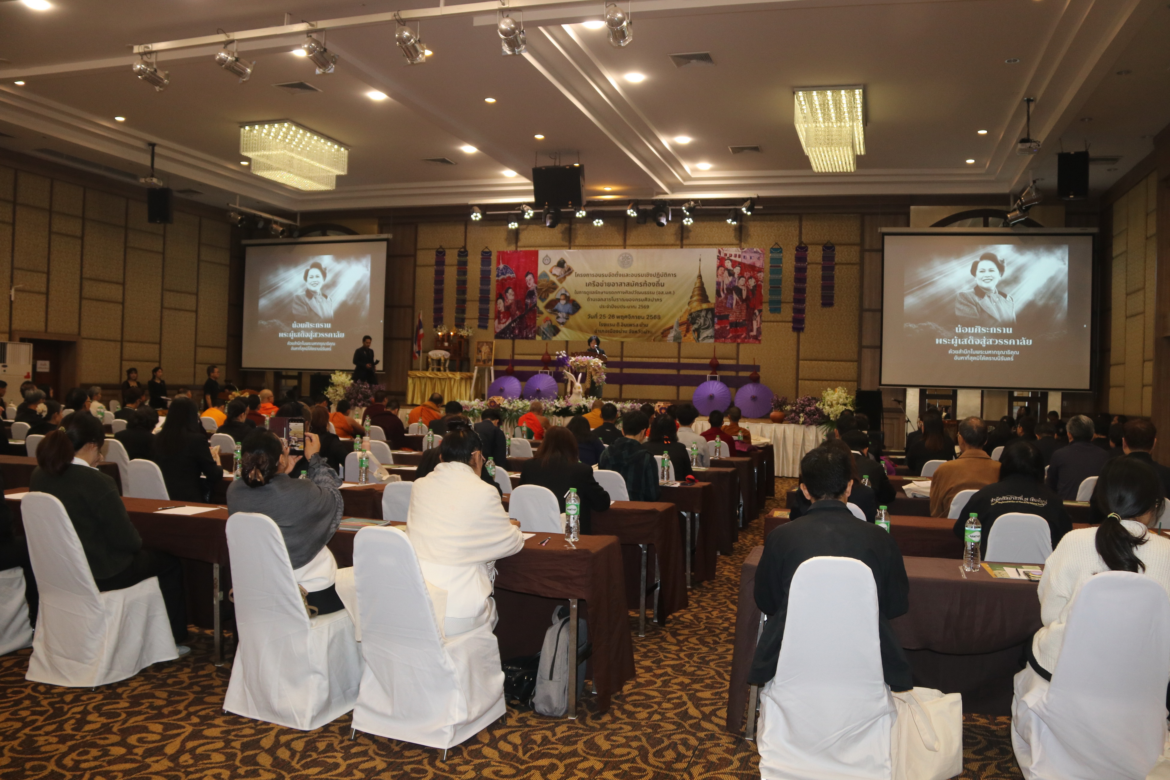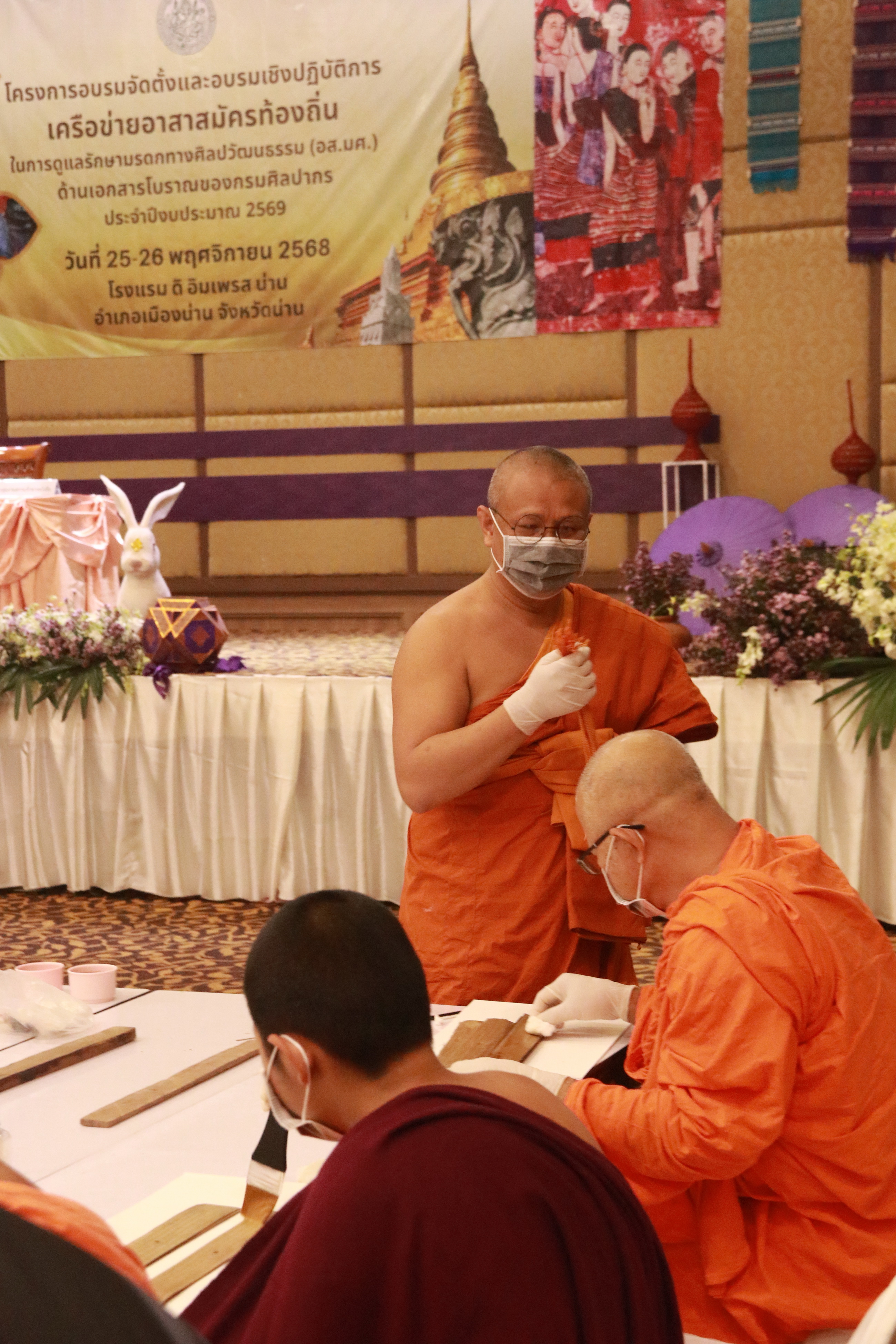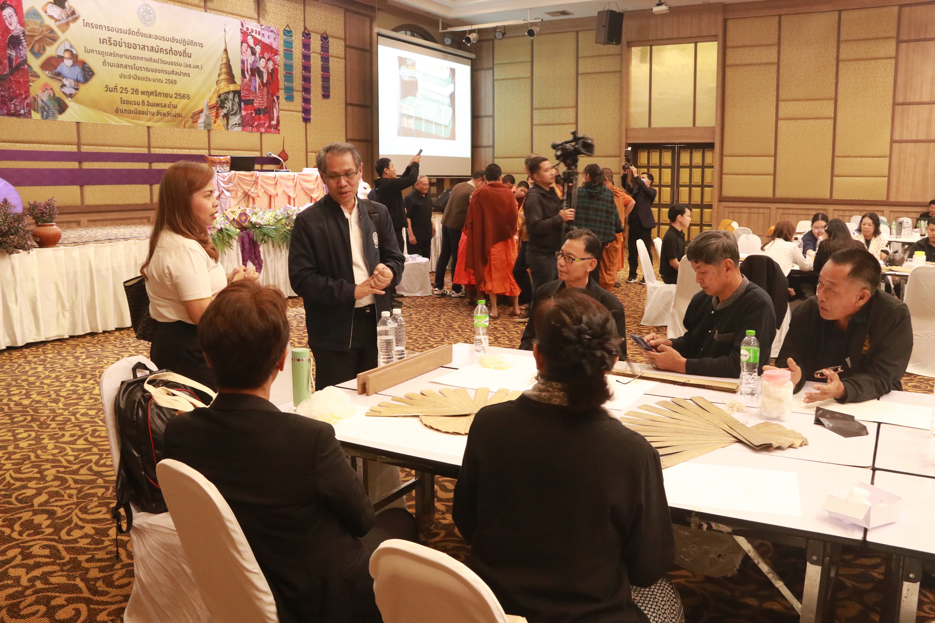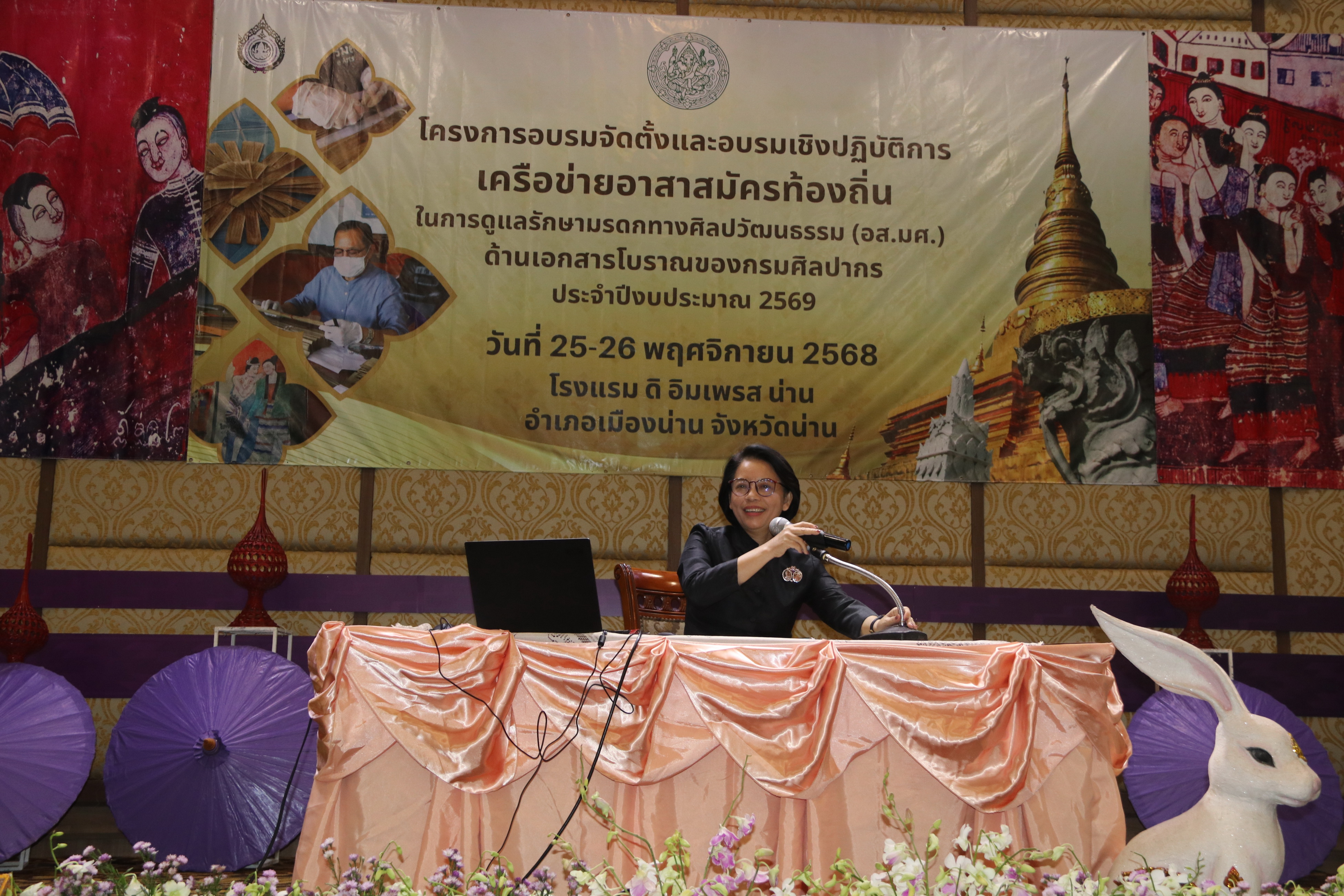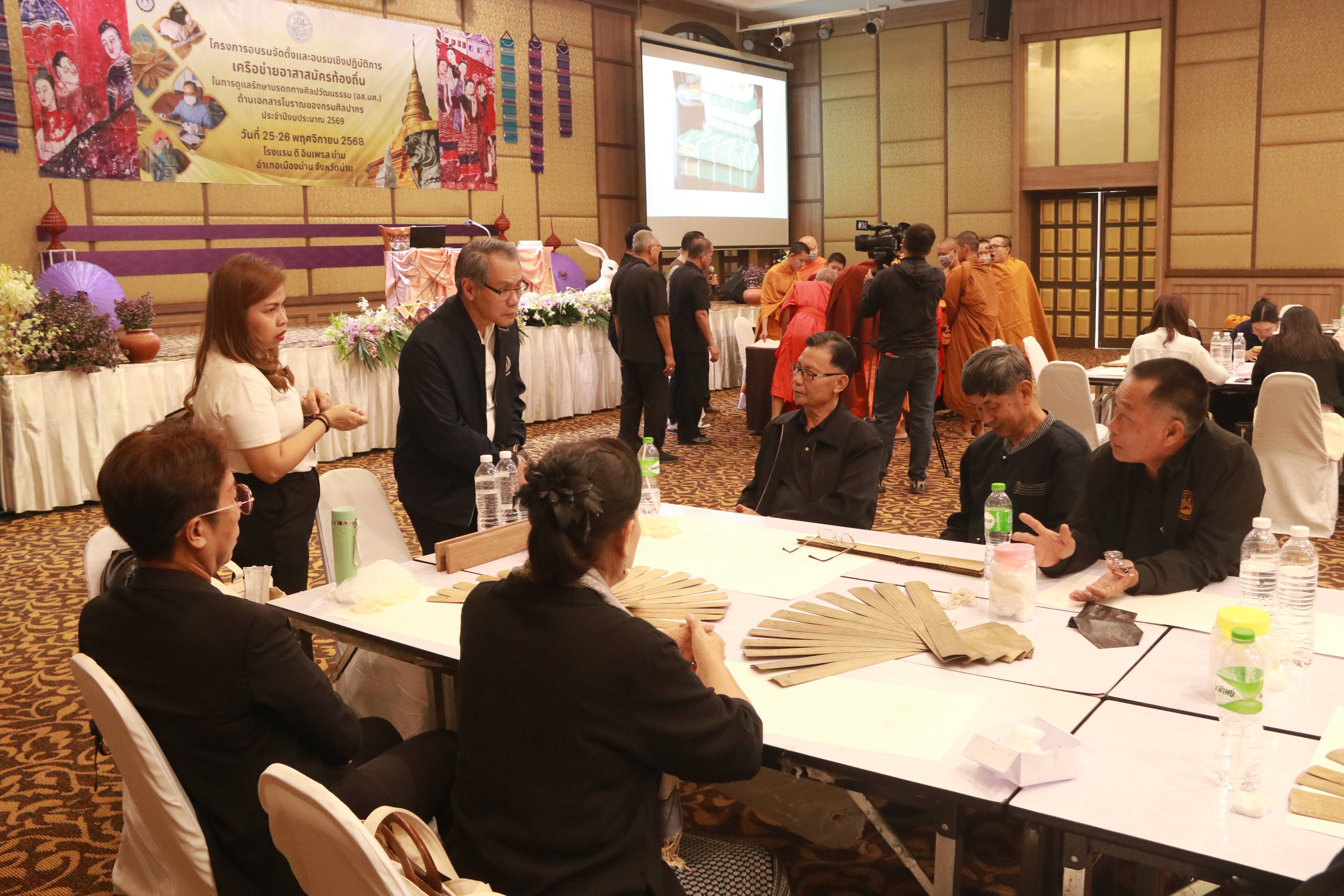 สำนักศิลปากรที่ ๗ เชียงใหม่ ร่วมกับสำนักหอสมุดแห่งชาติ จัดโครงการอบรมจัดตั้งและอบรมเชิงปฏิบัติการเครือข่ายอาสาสมัครท้องถิ่นในการดูแลรักษามรดกทางศิลปวัฒนธรรม (อส.มศ.) ด้านเอกสารโบราณของกรมศิลปากร ประจำปีงบประมาณ ๒๕๖๙ ในวันที่ ๒๕ - ๒๖ พฤศจิกายน ๒๕๖๘ โดยนางสาวขนิษฐา โชติกวณิชย์ รองอธิบดีกรมศิลปากร เป็นประธานในพิธีเปิดโครงการฯ และนายชินณวุฒิ วิลยาลัย ผู้อำนวยการสำนักศิลปากรที่ ๗ เชียงใหม่ เป็นผู้กล่าวรายงาน มีผู้เข้าร่วมอบรม รวม ๑๔๐ รูป/คน รับฟังการบรรยายด้านเอกสารโบราณ และโบราณสถานในจังหวัดน่าน พร้อมทั้งฝึกอบรมเชิงปฏิบัติการในการดูแลรักษาคัมภีร์ใบลาน หลังเสร็จสิ้นการอบรม นางสาวบุบผา ชูชาติ ผู้อำนวยการสำนักหอสมุดแห่งชาติ เป็นประธานในการถวาย/มอบเกียรติบัตรแด่ภิกษุและผู้เข้าร่วมโครงการอบรมจัดตั้งและอบรมเชิงปฏิบัติการเครือข่ายอาสาสมัครท้องถิ่นในการดูแลรักษามรดกทางศิลปวัฒนธรรม (อส.มศ.) ด้านเอกสารโบราณของกรมศิลปากร ประจำปีงบประมาณ ในวันที่ ๒๕ - ๒๖ พฤศจิกายน ๒๕๖๘ โดยนางสาวขนิษฐา โชติกวณิชย์ รองอธิบดีกรมศิลปากร เป็นประธานในพิธีเปิดโครงการฯ และนายชินณวุฒิ วิลยาลัย ผู้อำนวยการสำนักศิลปากรที่ ๗ เชียงใหม่ เป็นผู้ ณ โรงแรม ดิ อิมเพรส น่าน อำเภอเมืองน่าน จังหวัดน่าน
