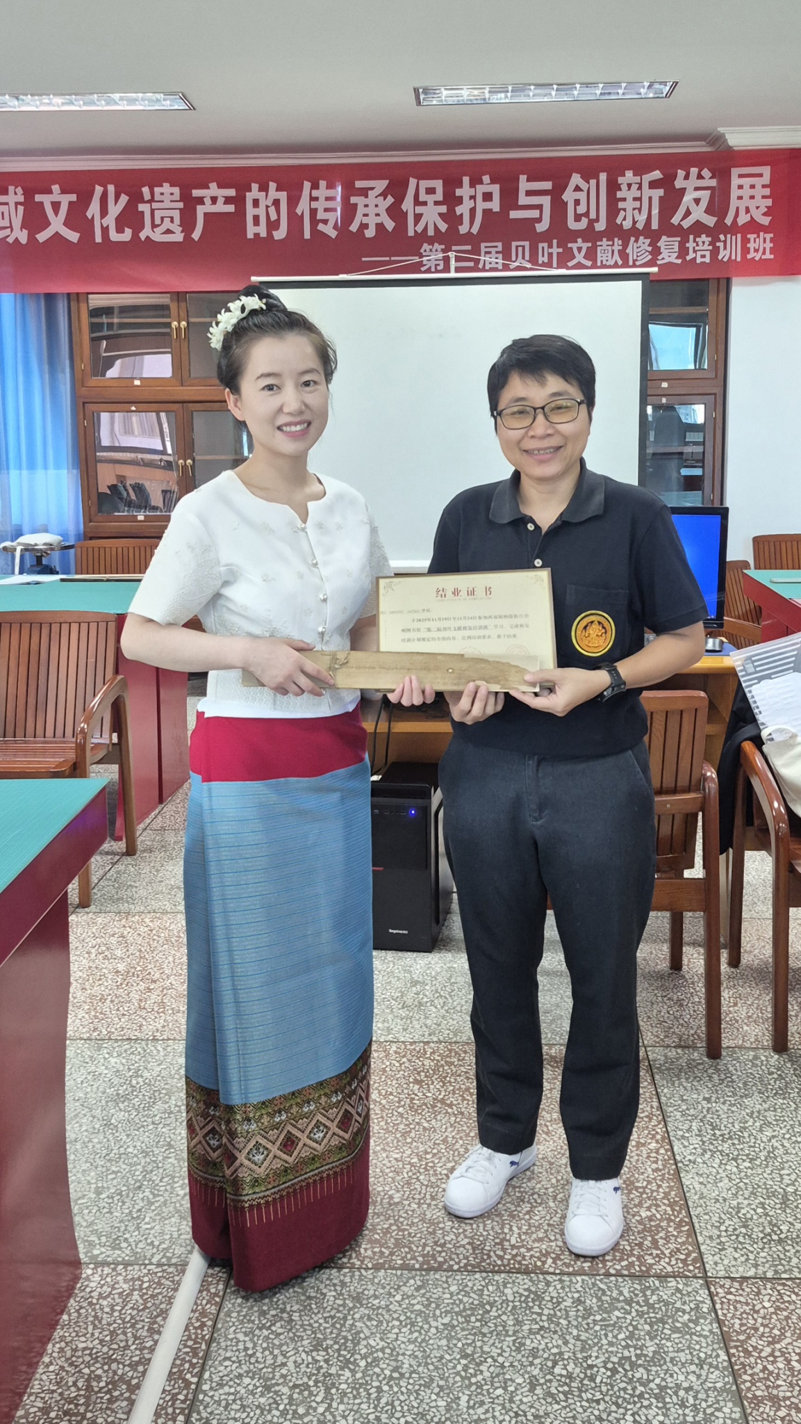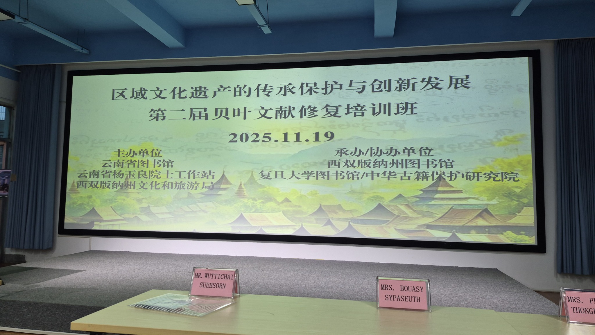 นางสาวสุคนธ์ทิพย์ จันทะลุน บรรณารักษ์ชำนาญการ เข้าร่วมอบรมหลักสูตรการสืบทอด อนุรักษ์ และการพัฒนาเชิงนวัตกรรมมรดกทางวัฒนธรรม ระดับภูมิภาค ครั้งที่ ๒ "Heritage of Regional Culture Legacy : Inheritance, Protection, and Development The Second International Training Course on the Restoration of Palm-Leaf Manuscripts" โดยความร่วมมือระหว่างศูนย์อนุรักษ์หนังสือโบราณมณฑลยูนนาน ห้องสมุดมณฑลยูนนาน สถาบันเพื่อการอนุรักษ์หนังสือโบราณ ห้องสมุดมหาวิทยาลัยฟู่ตัน หอสมุดแห่งชาติเขตปกครองตนเองชนชาติไทยสิบสองปันนา และสำนักงานวัฒนธรรมและการท่องเที่ยวจังหวัดสิบสองปันนา ระหว่างวันที่ ๑๙ - ๒๔ พฤศจิกายน ๒๕๖๘ ณ หอสมุดแห่งชาติเขตปกครองตนเองชนชาติไทยสิบสองปันนา มณฑลยูนนาน ประเทศสาธารณรัฐประชาชนจีน โดยการเข้าอบรมครั้งนี้นับเป็นการพัฒนา ทักษะ ความรู้ เสริมสร้างประสบการณ์งานด้านการอนุรักษ์เอกสารโบราณที่ได้นำเทคโนโลยีและศาสตร์สมัยใหม่มาประยุกต์ใช้ในการอนุรักษ์ใบลานอันมรดกทางวัฒนธรรมในระดับภูมิภาค