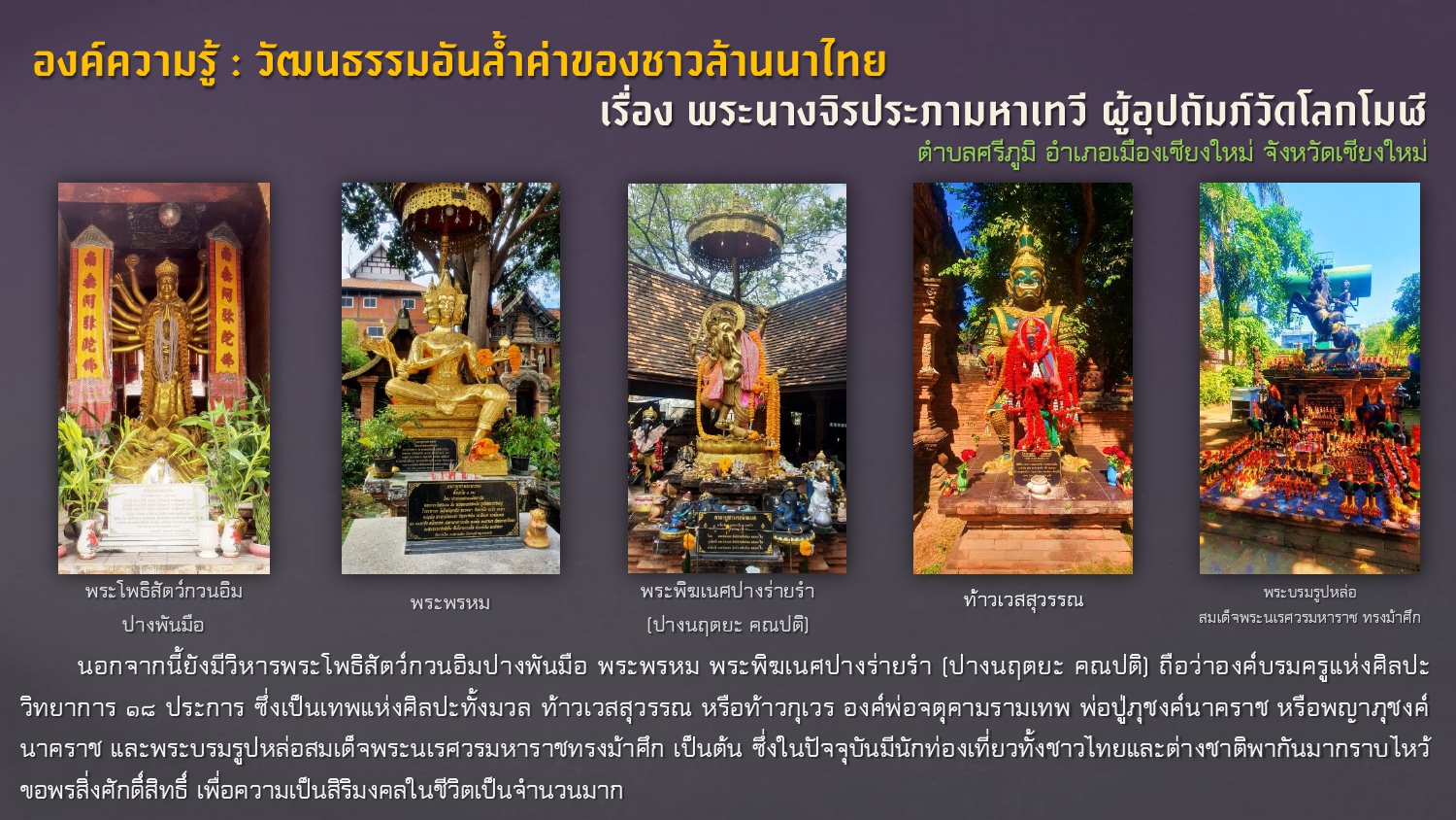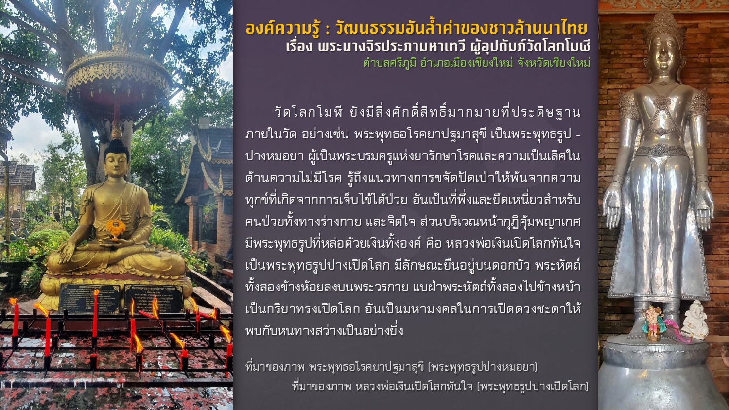 เรียบเรียงโดย : นายธีรบูลย์ มิตรมโนชัย นักวิชาการโสตทัศนศึกษาชำนาญการ หอสมุดแห่งชาติรัชมังคลาภิเษก เชียงใหม่ สำนักศิลปากรที่ ๗ เชียงใหม่ กรมศิลปากร กระทรวงวัฒนธรรม