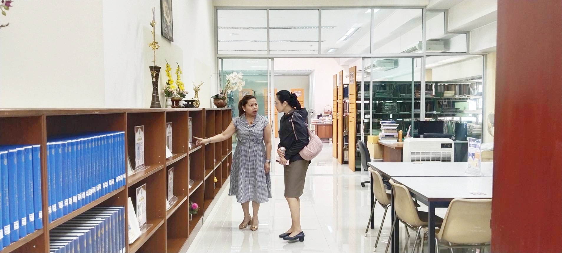 นางสาวปุณณภา สุขสาคร ผู้อำนวยการหอสมุดแห่งชาติรัชมังคลาภิเษก เชียงใหม่ ให้การต้อนรับและหารือร่วมกับ พ.ต.อ.หญิง สุธิดา สมิทธิไกร ผู้กำกับการฝ่ายอำนวยการ ๒ บก.อก.ภ.๕ ในการจัดกิจกรรมส่งเสริมการอ่านภายใต้การดำเนินโครงการพัฒนาและส่งเสริมหอสมุดแห่งชาติเพื่อให้เป็นแหล่งเรียนรู้ตลอดชีวิต