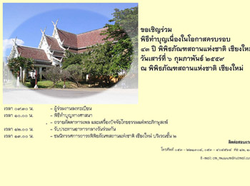 ขอเชิญร่วมทำบุญครบรอบ ๔๓ ปี พิพิธภัณฑสถานแห่งชาติ เชียงใหม่