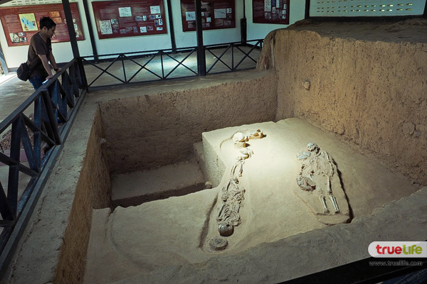 หลุมขุดค้นทางโบราณคดี ตั้งอยู่ริมแม่น้ำ ซึ่งขุดค้นพบทั้งโครงกระดูก เครื่องมือเครื่องใช้ ภาชนะสำริด ดินเผา เครื่องมือเหล็ก สร้อยคอทำด้วยลูกปัดหินและลูกปัดแก้ว ซึ่งชี้ชัดว่าชุมชนเหล่านี้เกิดขึ้นก่อนที่จะสร้างเมืองสิงห์ เพราะเป็นศพของคนที่ตายมา 2,000 ปีแล้ว สันนิษฐานว่าคงจะยุคเดียวกับคนในชุมชนบ้านเก่าค่ะ