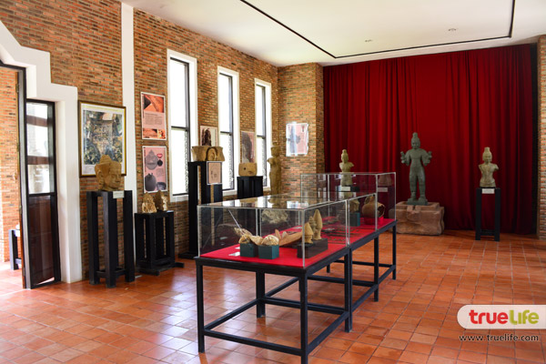 นอกจากนี้ภายในอาคารจัดแสดงวัตถุ ได้มีการจัดแสดงหลักฐานทางประวัติศาสตร์ที่ขุดค้นพบในบริเวณปราสาทเมืองสิงห์อีกมากมายค่ะ ทั้งศีรษะพระศิวะ แม่พิมพ์พระพุทธรูป ภาชนะดินเผา และอื่นๆ อีกมากมายซึ่งเป็นรูปจำลอง เพราะกรมศิลปากรได้นำไปเก็บรักษาอยู่ที่พิพิธภัณฑสถานแห่งชาติพระนครค่ะ